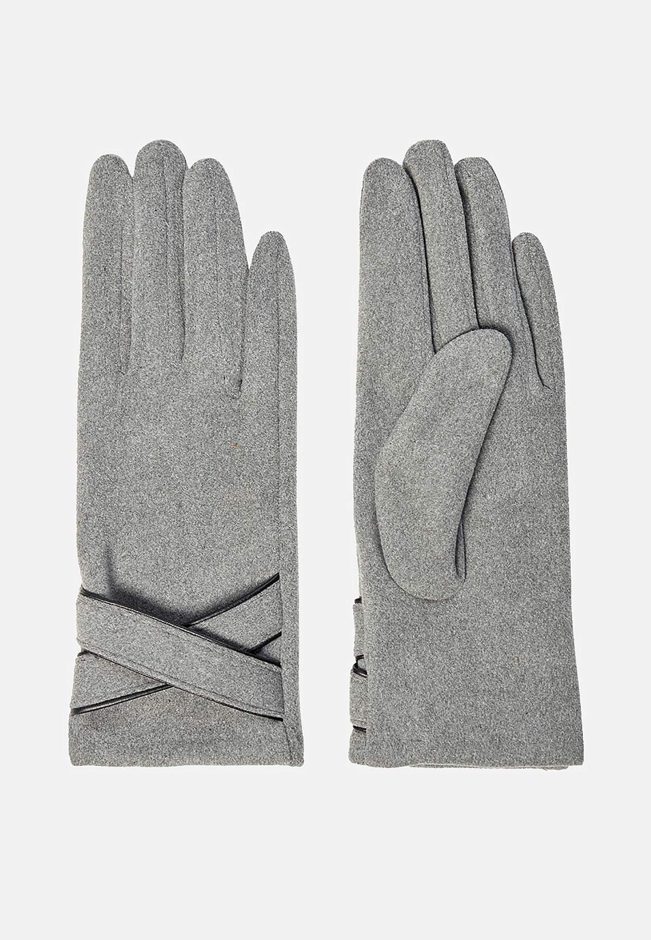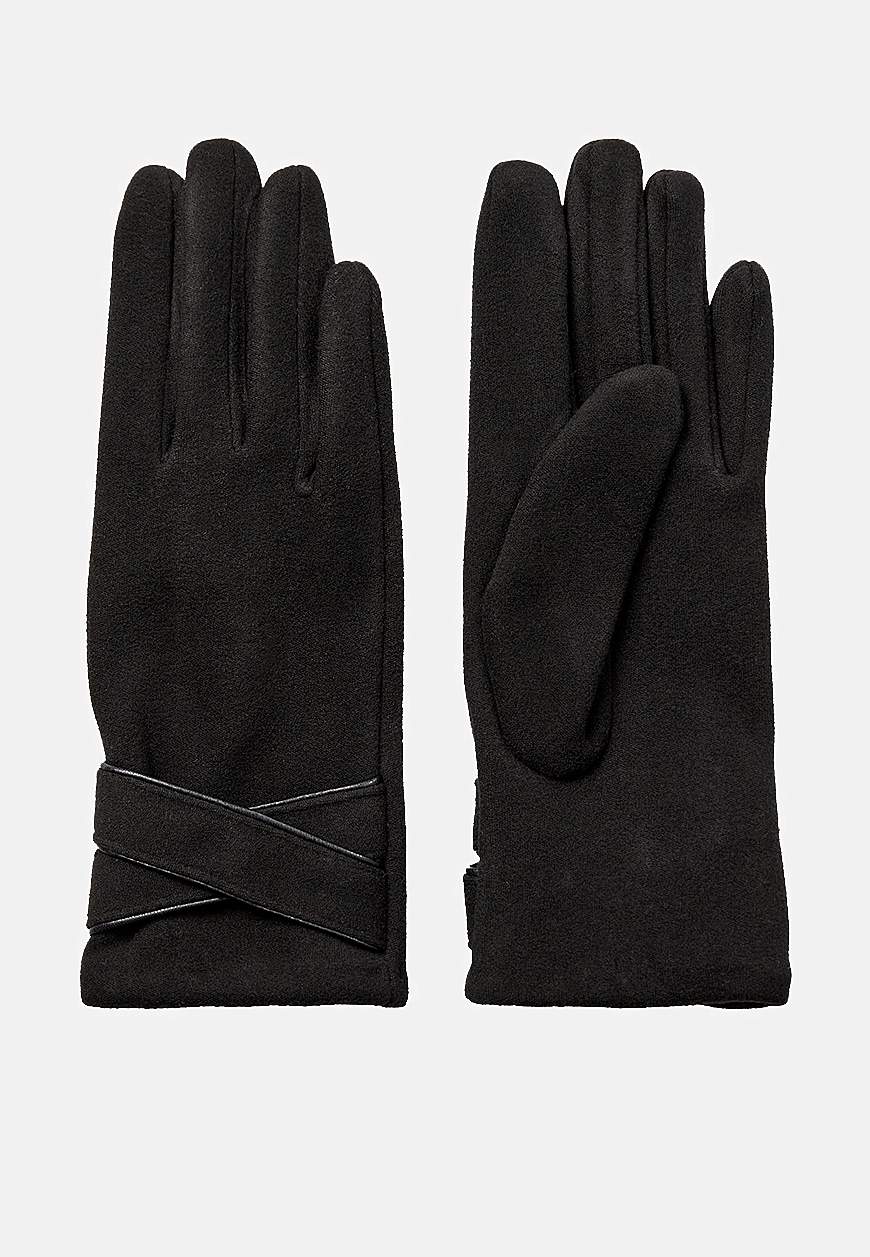 Elegant handske med stilrent design. Blød kvalitet med let stræk. Mat materiale med en glat, behagelig følelse. Dekorative remme med PU-detaljer på kanten. Blød, fjøjlsagtig inderside. Damestørrelse.