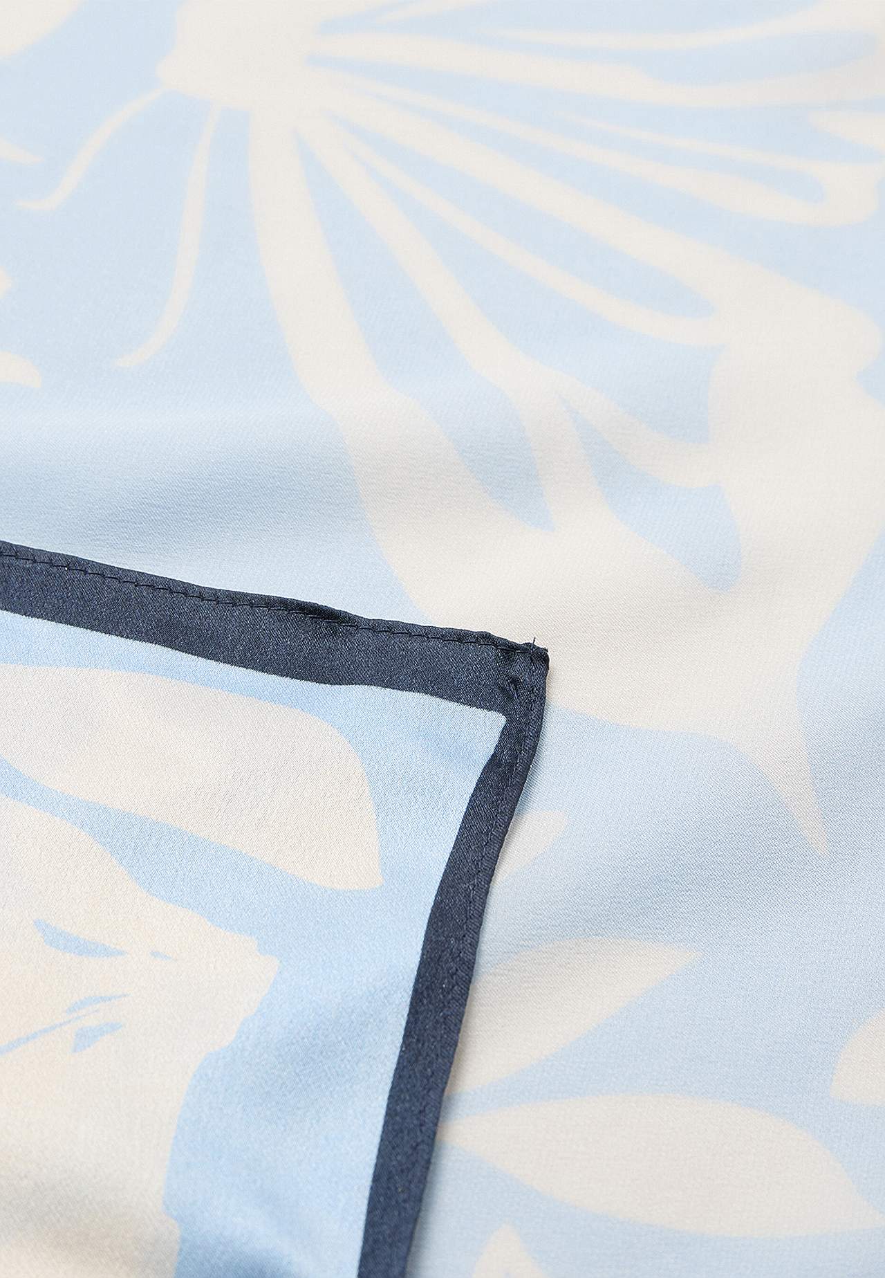 Mønstret sjal med sommerfugle og blomster. Luksuriøst materiale i silke med glat, kølende overflade. Elegant, alsidig accessory. Firkantet model. Søm hele vejen rundt.