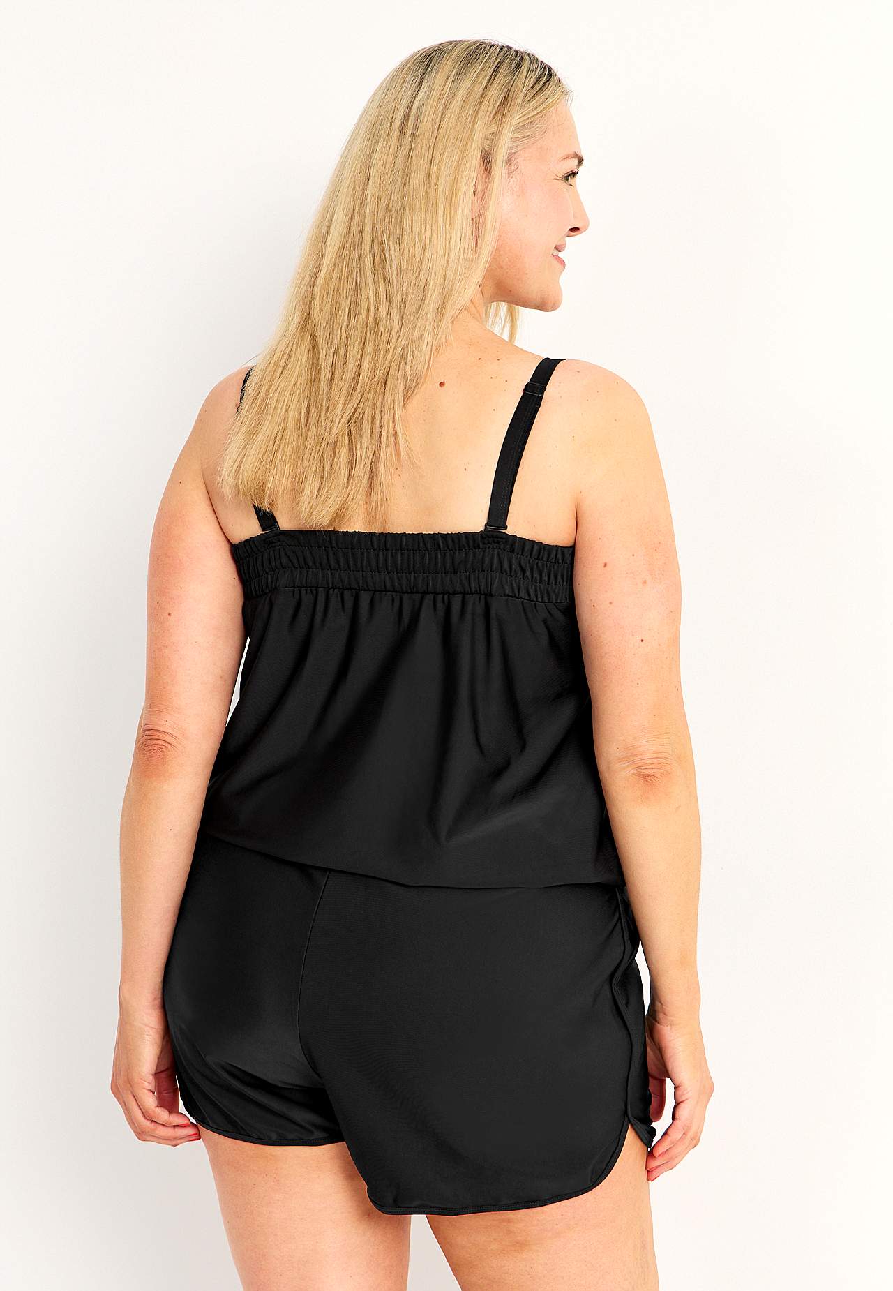 Dette svømmeplaysuite er et stilfuldt og praktisk alternativ til et tankinisæt, hvor toppen og underdelen sidder sammen. I denne elegante og lidt sporty playsuit føler du dig både stilfuld og bekvemt på stranden. De aftagelige skulderstroppe kan også bæres ret, krydset på ryggen eller som en halsstrop. Playsuit-model med in... Læs mere