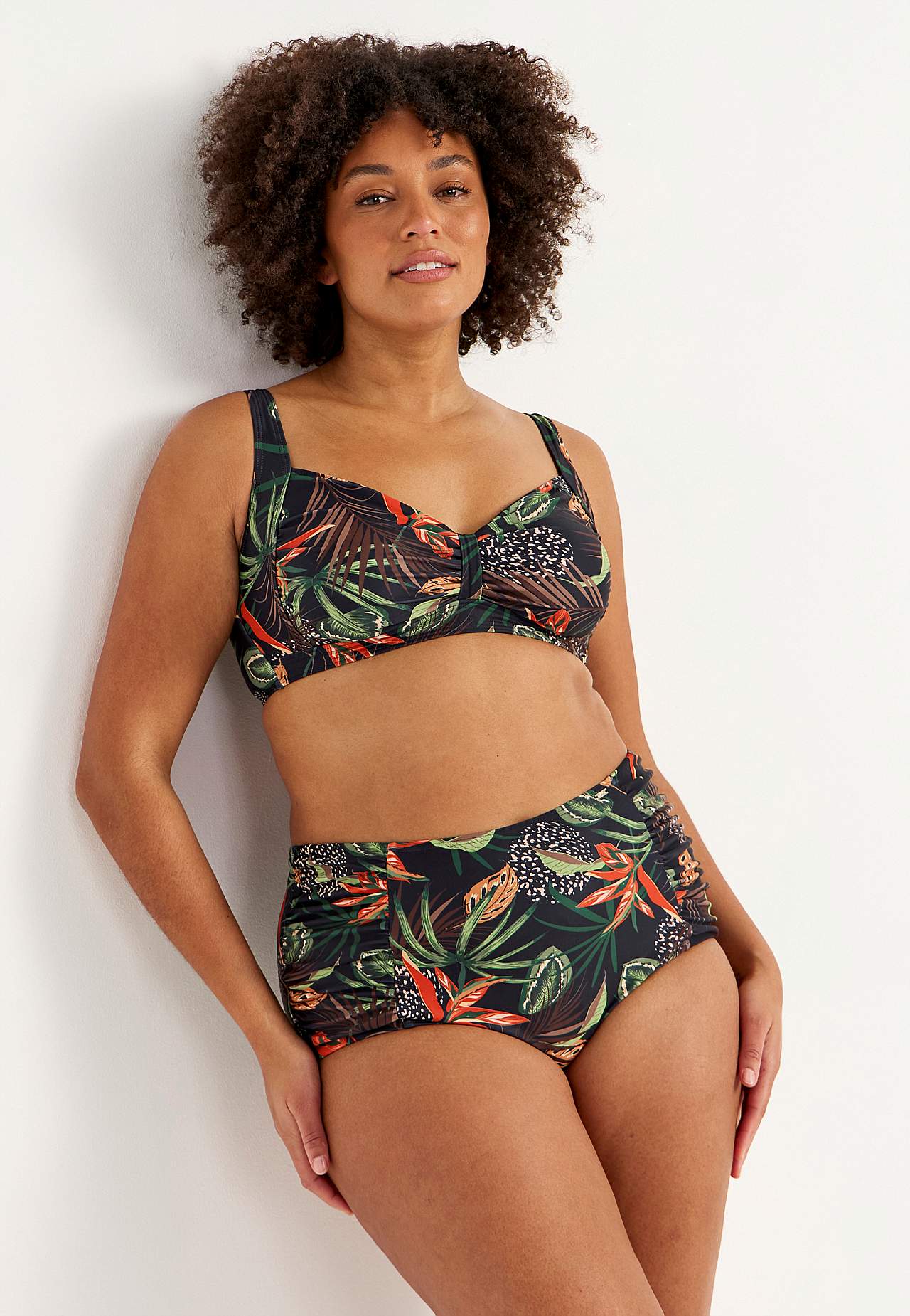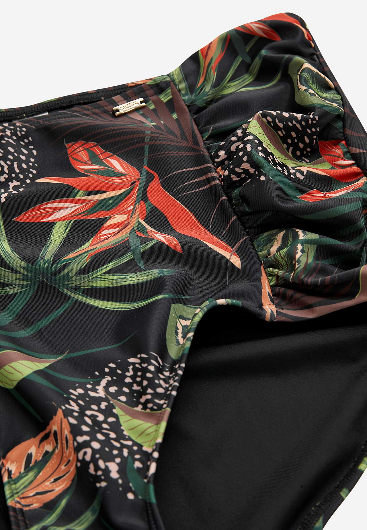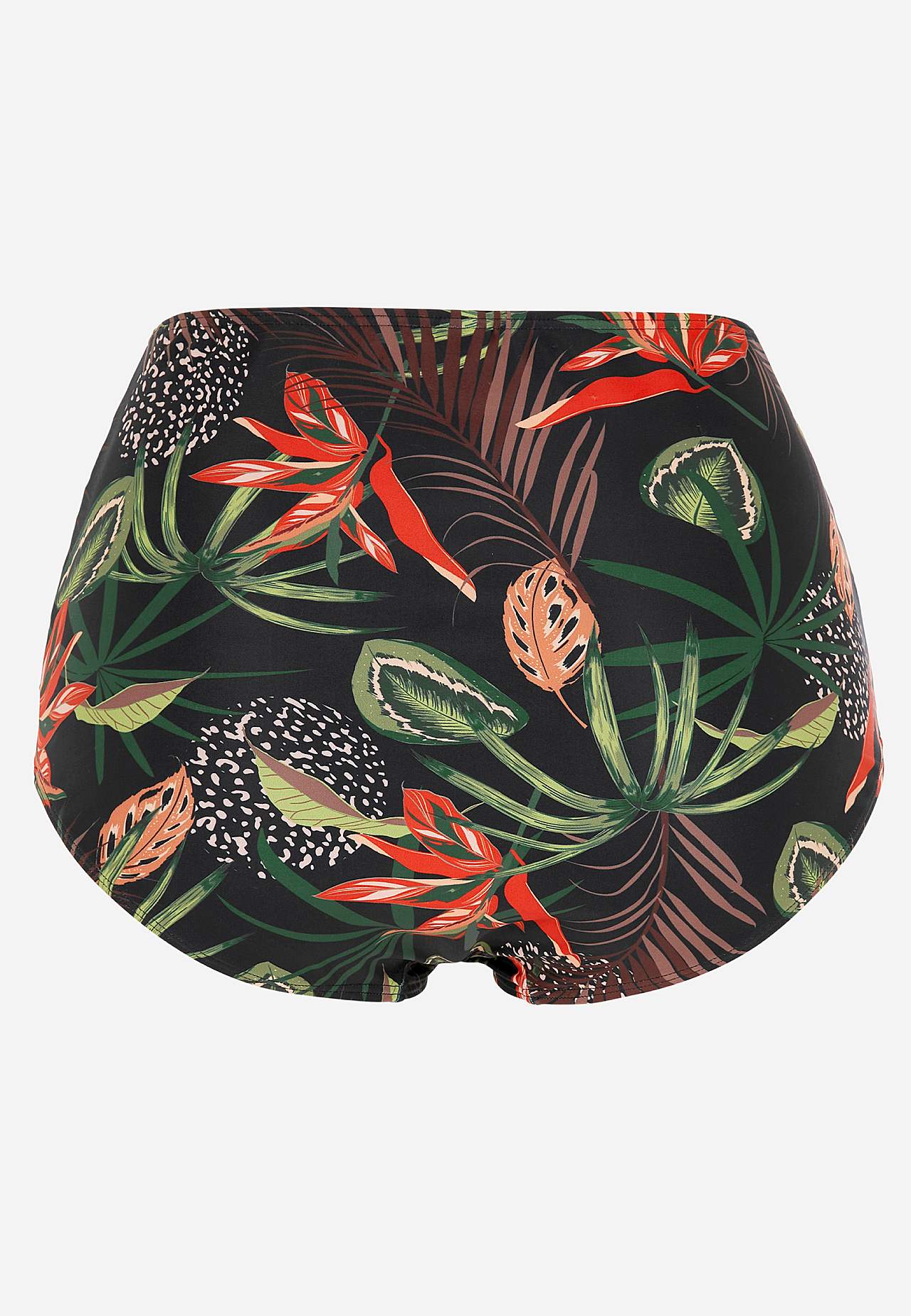 Bikiniunderdel i genindvundet polyester. Høj talje. Smukt mønster både foran og bagpå. Dekorativ drapering i siderne. Helforet inderside.