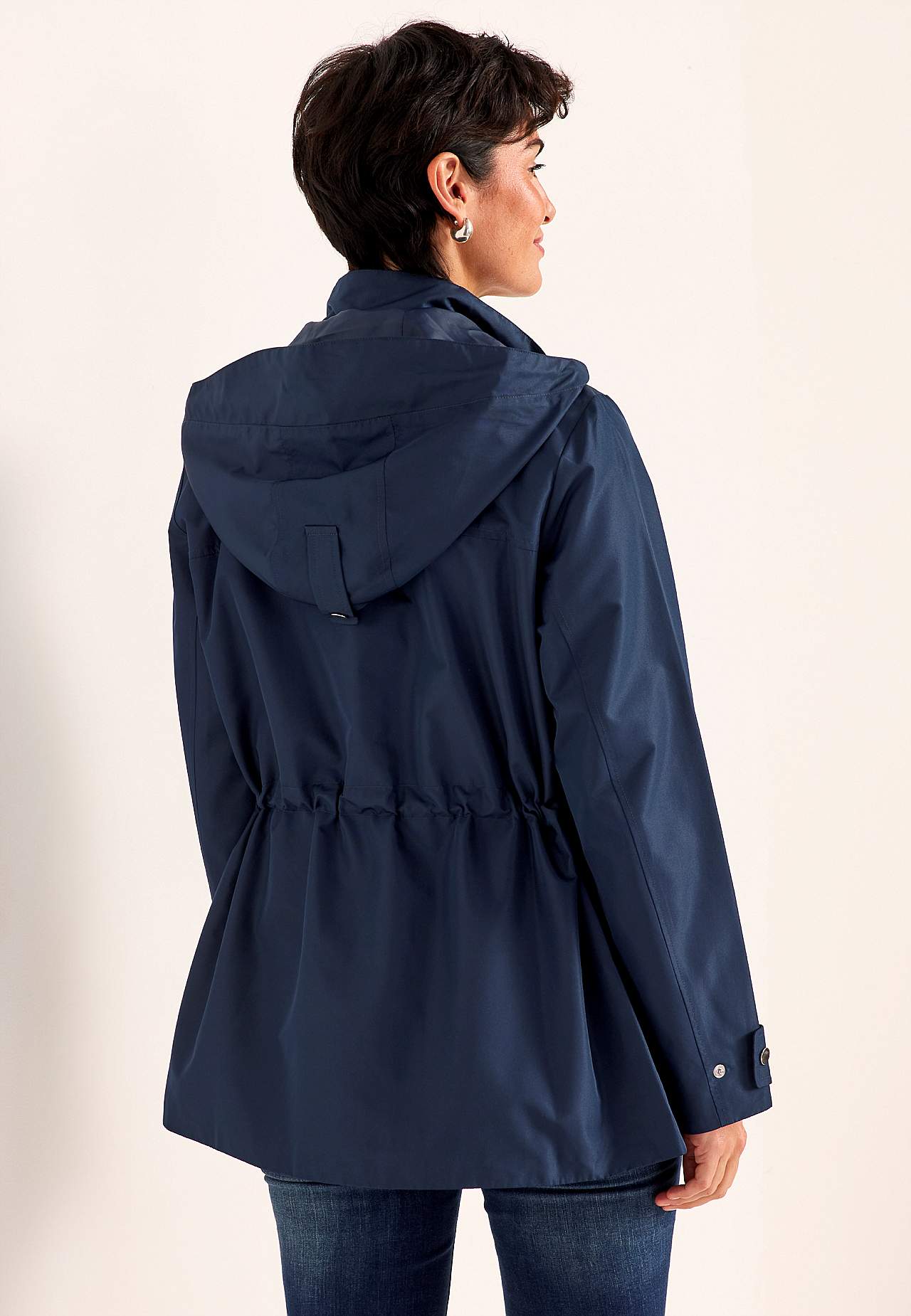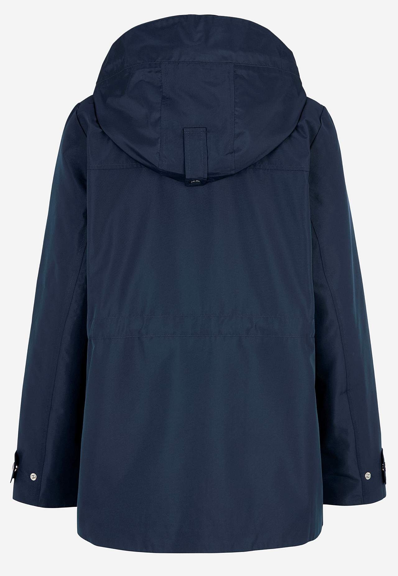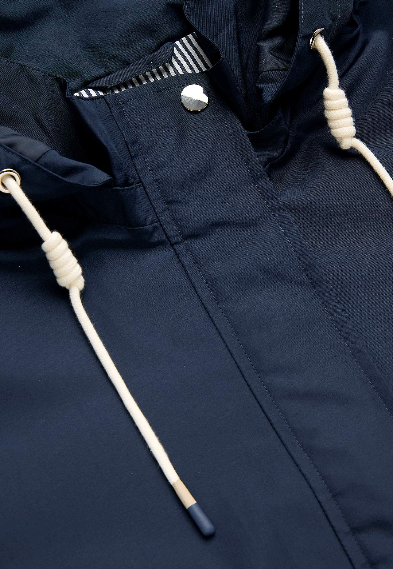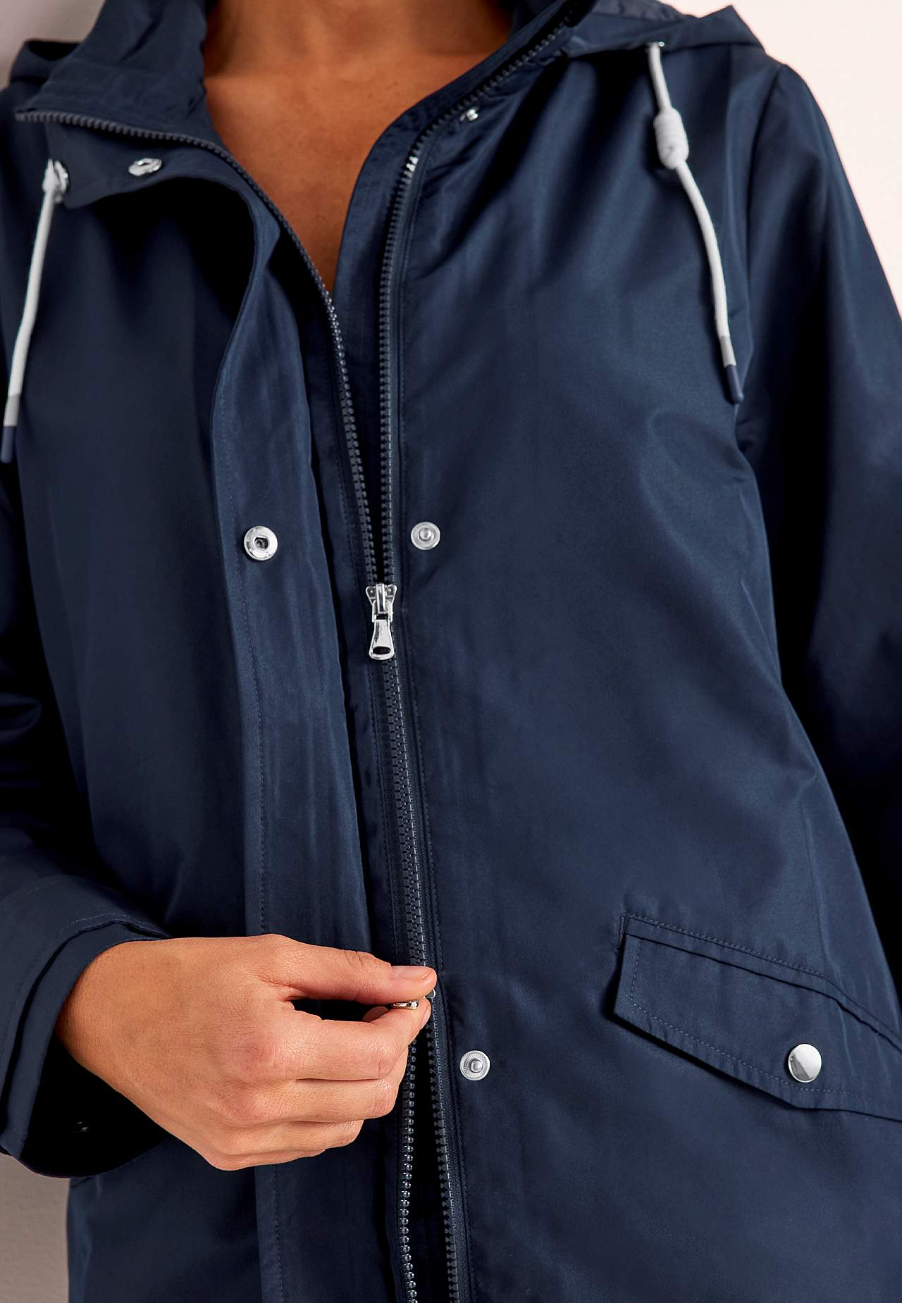 Stilren jakke. Normal pasform. Vind- og vandafvisende ydermateriale i lidt blank mikropoplin. Matchende for i smidig polyester med meshstof ved torsoen. Aftagelig hætte med skjult lynlås og foldbar skærm med trykknap og justerbar træksnøre med snoet detalje. Praktisk to-vejs lynlås med vindfang. Knapstolpe med tre skjulte ... Læs mere