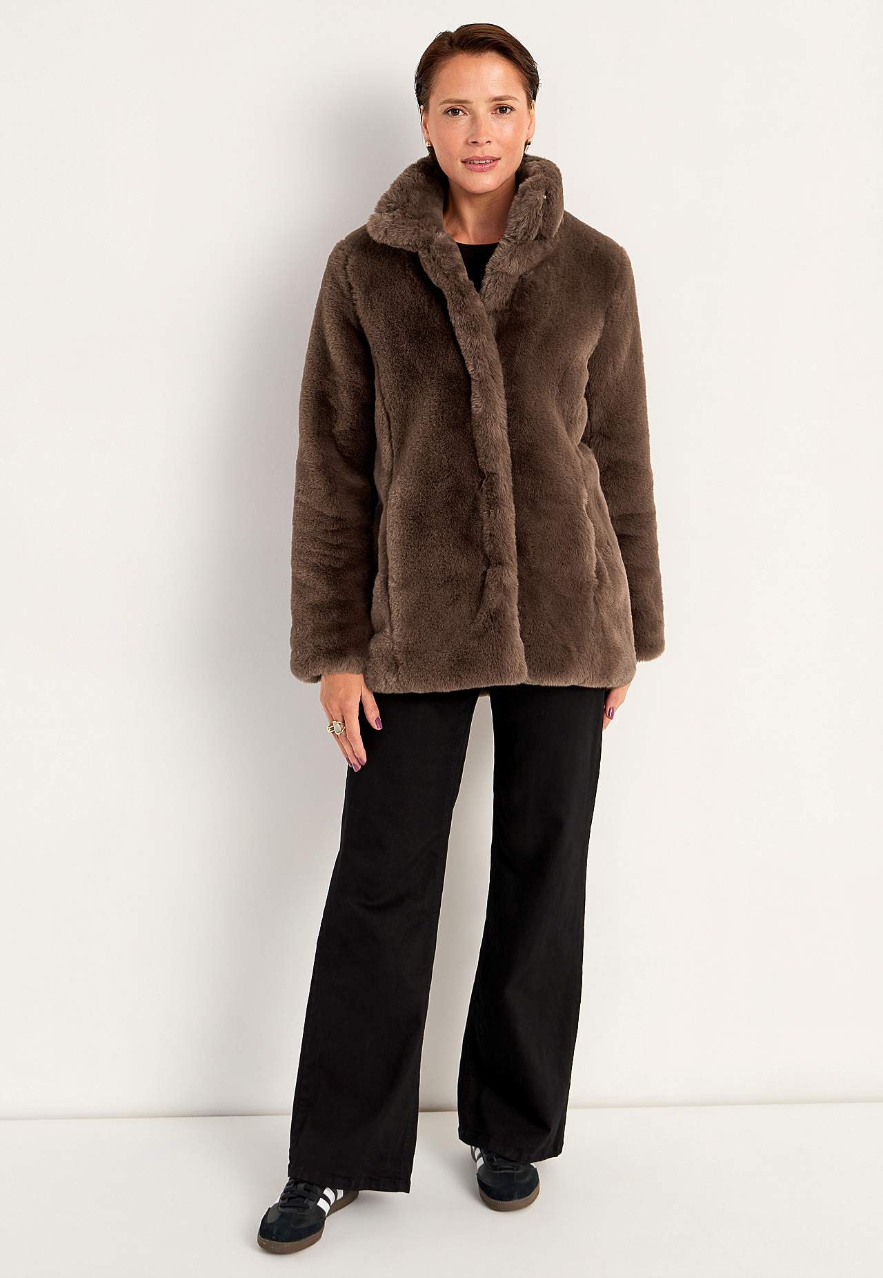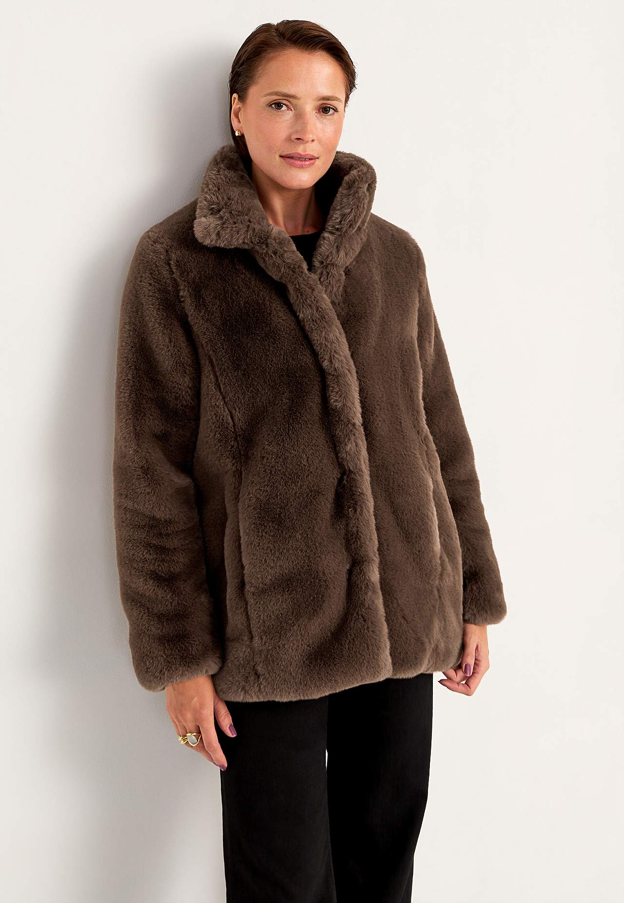 Frakke med blød pelsimitation
