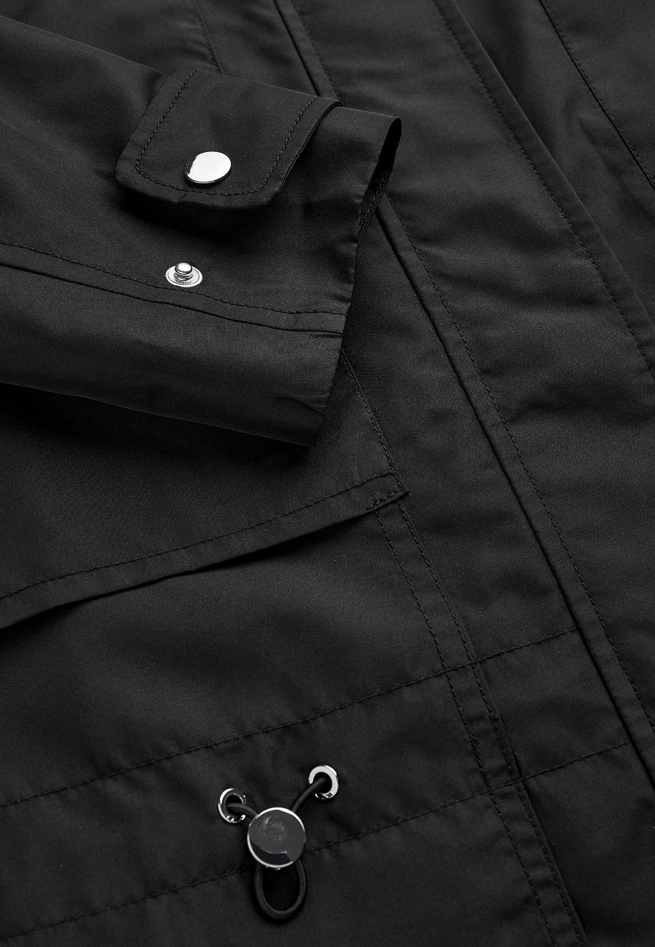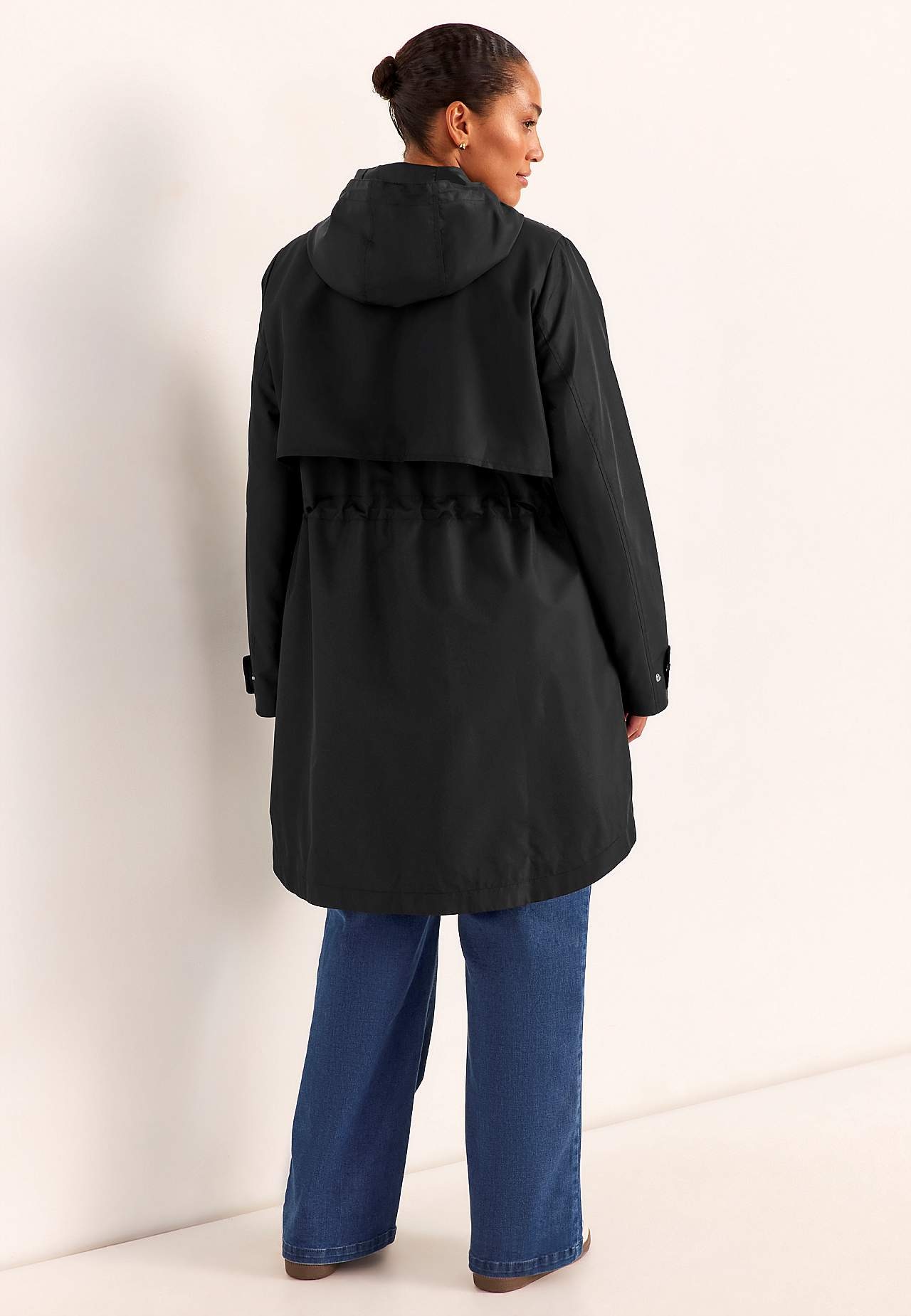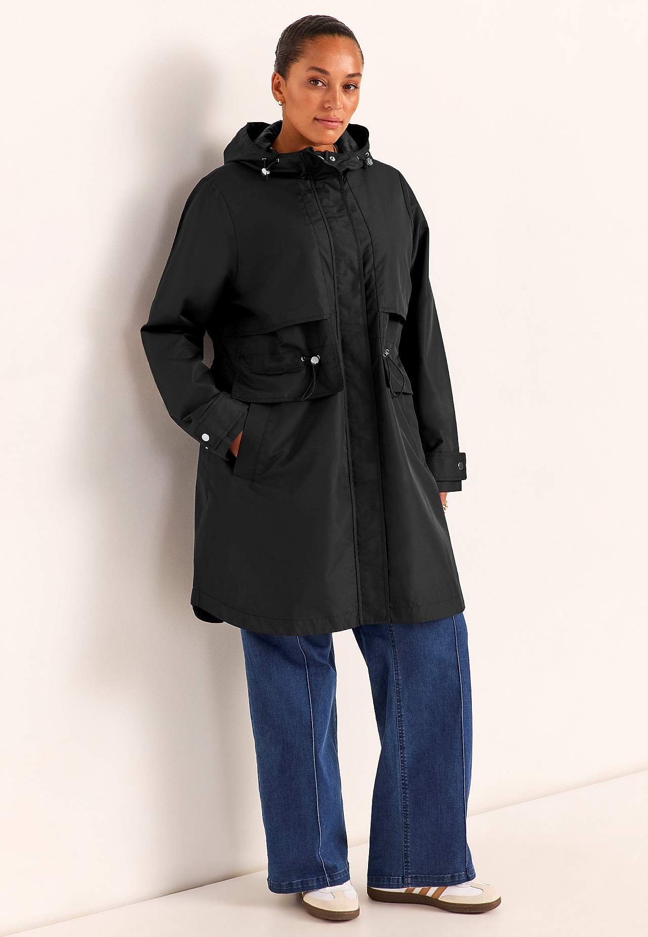 Chik parka til bylivet. Normal pasform. Vind- og vandafvisende ydermateriale i lidt blank mikropoplin. Matchende for i smidig polyester. Praktisk to-vejs lynlås. Knapstolpe med skjulte trykknapper. Åbent bærestykke foran og bagpå. Justerbar træksnøre ved taljen. Inderlomme på den venstre side med velcrolukning. Afrundet søm... Læs mere