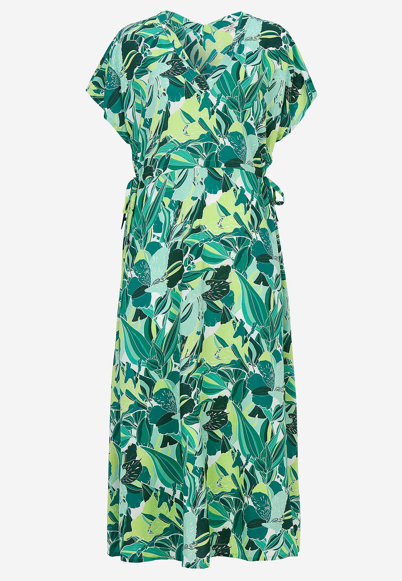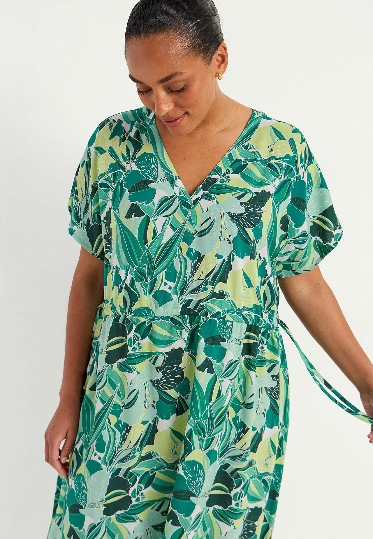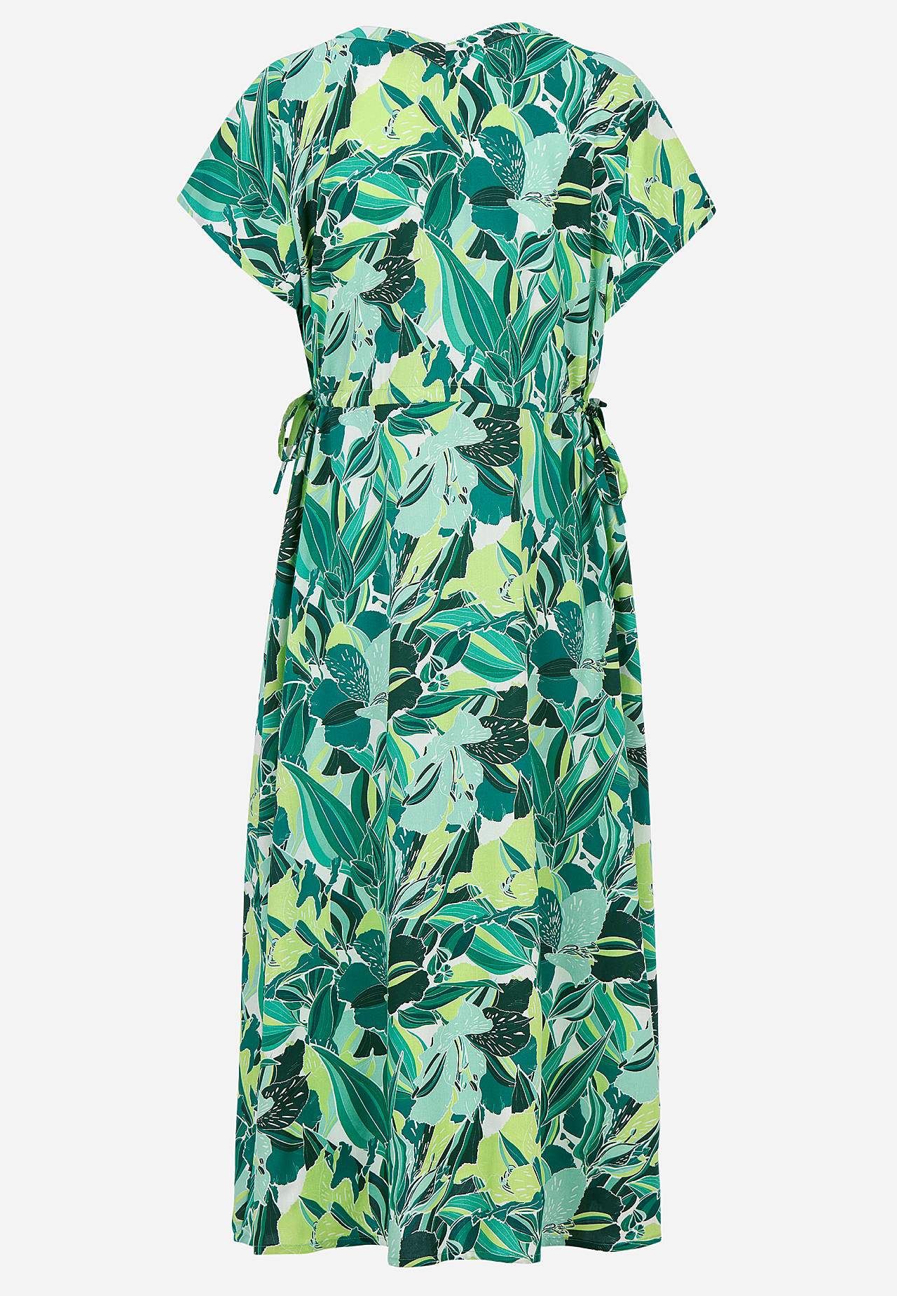 Luftigt, kølende materiale med mat overflade. Uformel, løs pasform. Brede korte ærmer. Skjulte bindebånd i taljen. Kan nemt justeres og bindes i begge sider. Vælg selv, en løs eller mere stram pasform. Let afrundet søm. Ryglængden følger størrelsen, ca. 128 cm.