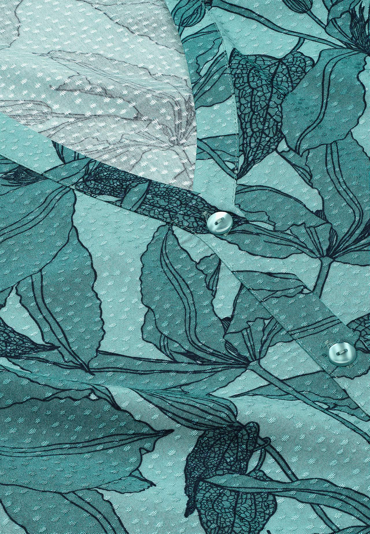 Festkjole i viskose med herligt fald. Dobbyvævet stof med et unikt mønster. Meget blødt med en flot struktur og glans. Tryk i den samme nuance med et blomstermønster. Løs pasform. V-formet halsudskæring. Lige, gennemknappet model. Sidelommer. Let afrundet søm med slids i siderne. Ryglængden følger størrelsen, ca. 125 cm.