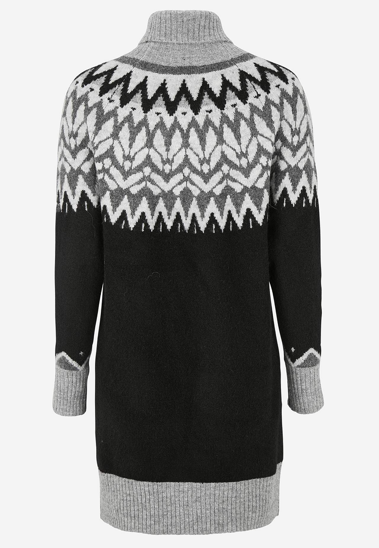 Blød, strikket kjole med polokrave. Jacquard-strikket mønster både foran og bagpå. Uformel pasform. Lange raglanærmer med mønster og ribmanchet på ærmeafslutningerne. Bred ribmanchet nederst. Længde fra skulder ca. 88 cm i størrelse S (38).