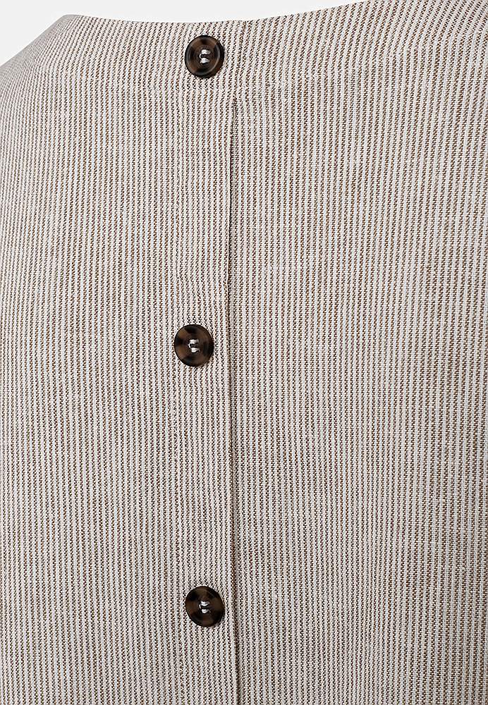 Vævet, garnfarvet kjole i hør- og viskoseblanding. Fantastisk blødt, luftigt materiale. Rummelig pasform. Afrundet halsudskæring. Brystindlæg. Korte ærmer. Lommer i siderne. Fast knapstolpe i ryggen. Lige søm. Længde fra skulder ca. 95 cm i størrelse S (38).