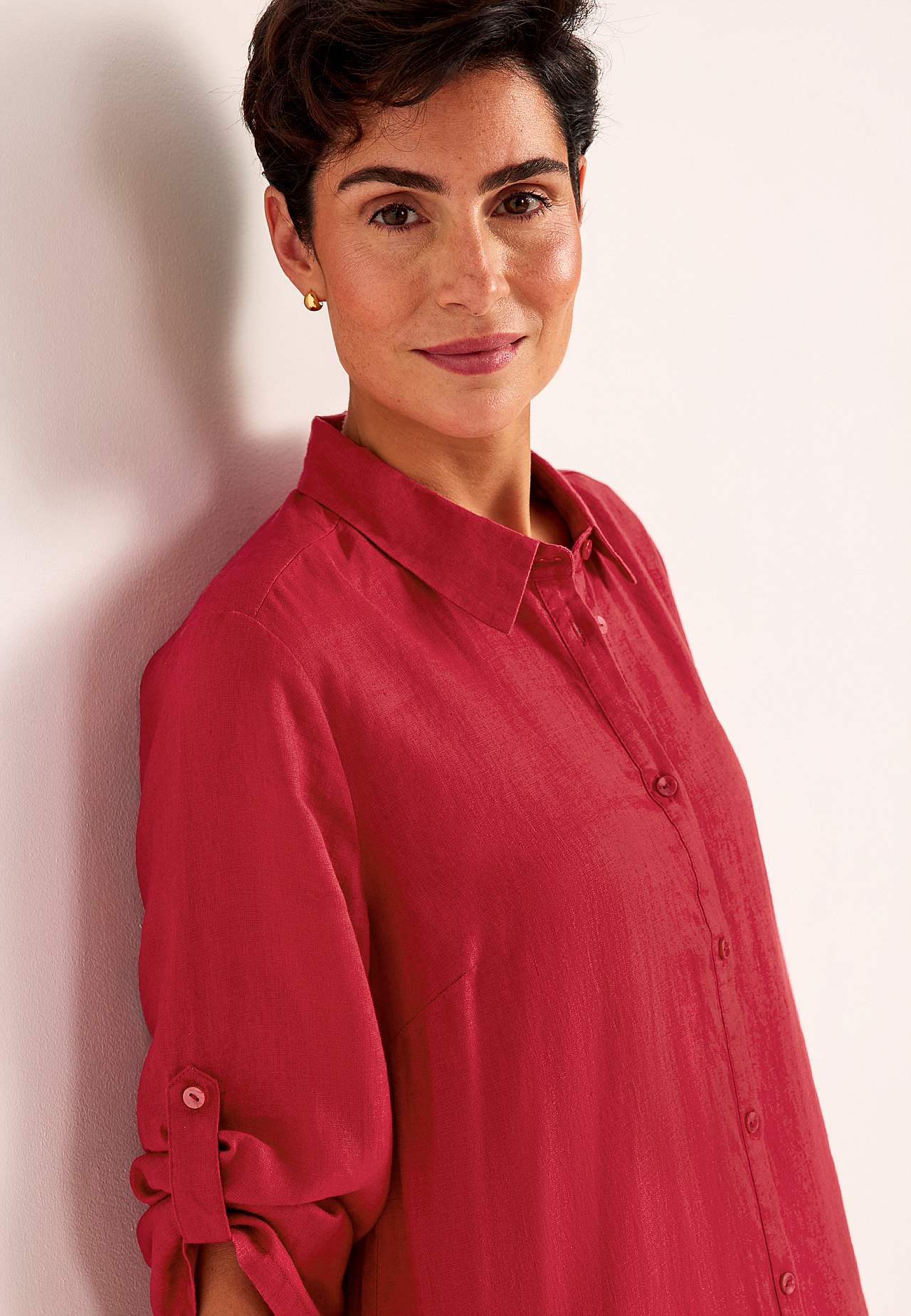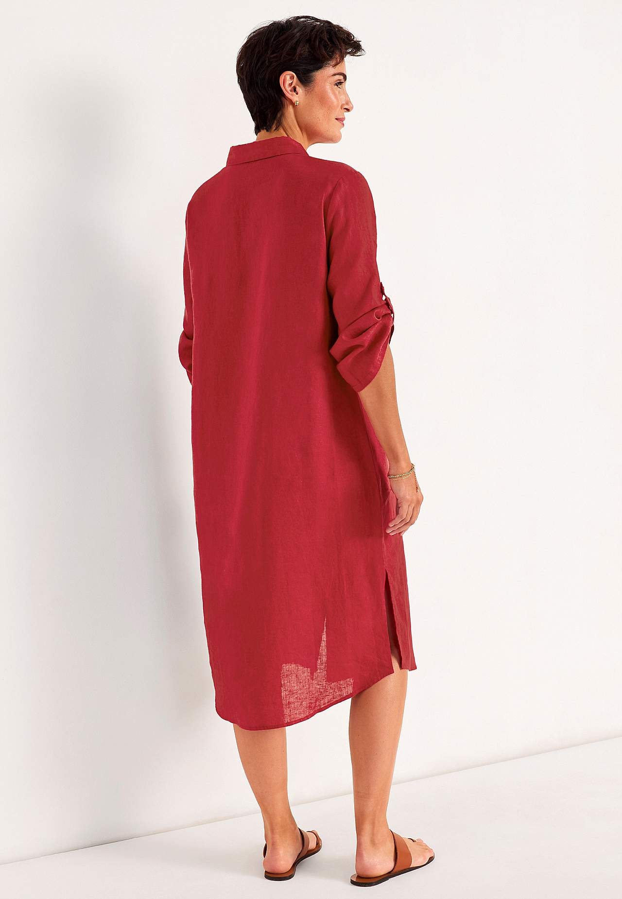 Skjortekjole i 100 % hør. Luftigt materiale. Rummelig, lige snit pasform. Knapstolpe fra top til bund. Foldbart langt ærme med knapdetalje. Indsnit ved brystet for den bedste pasform. En rigtig hverdagsfavorit. Længden følger størrelsen, ca. 116-124 cm fra skulderen.