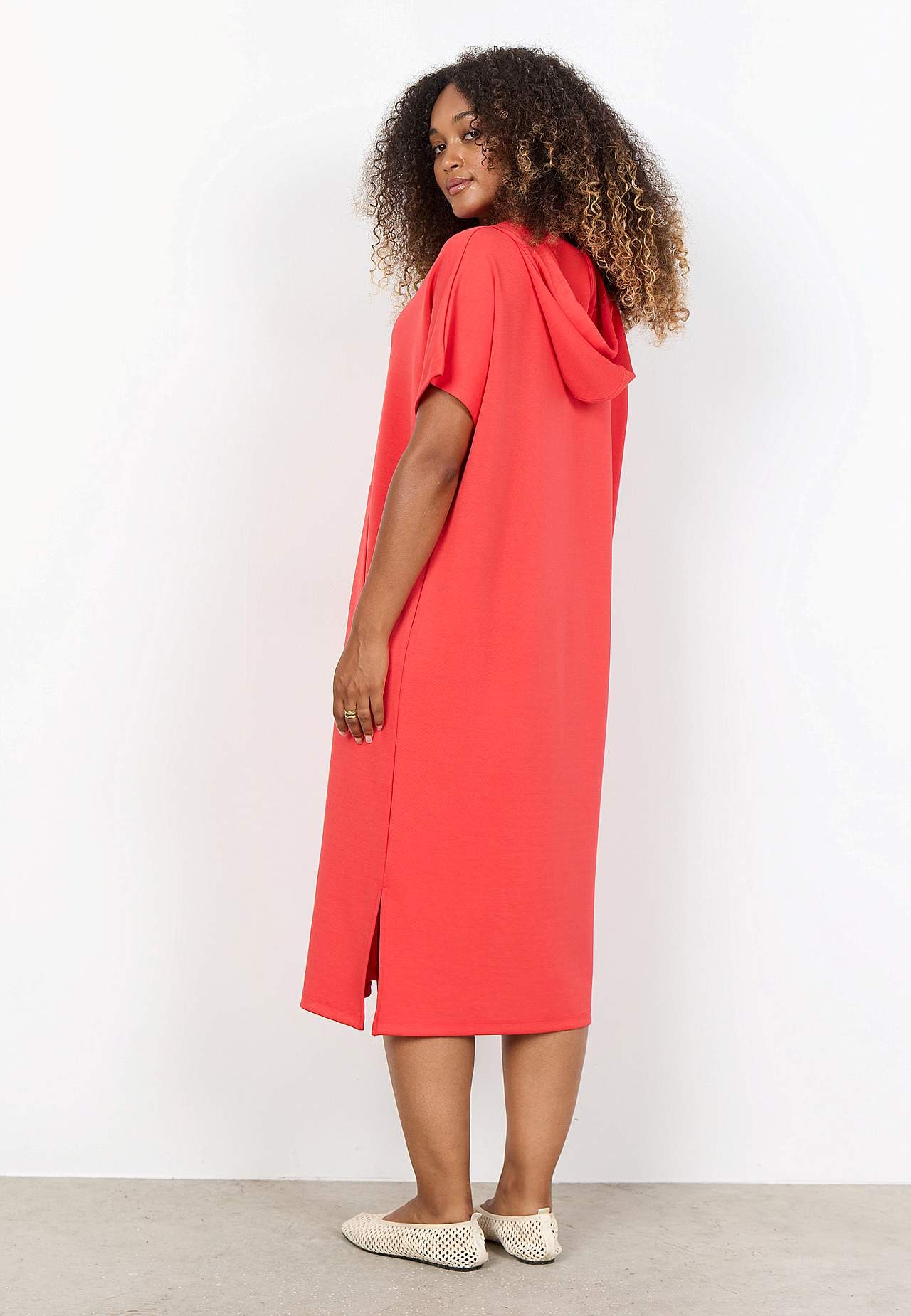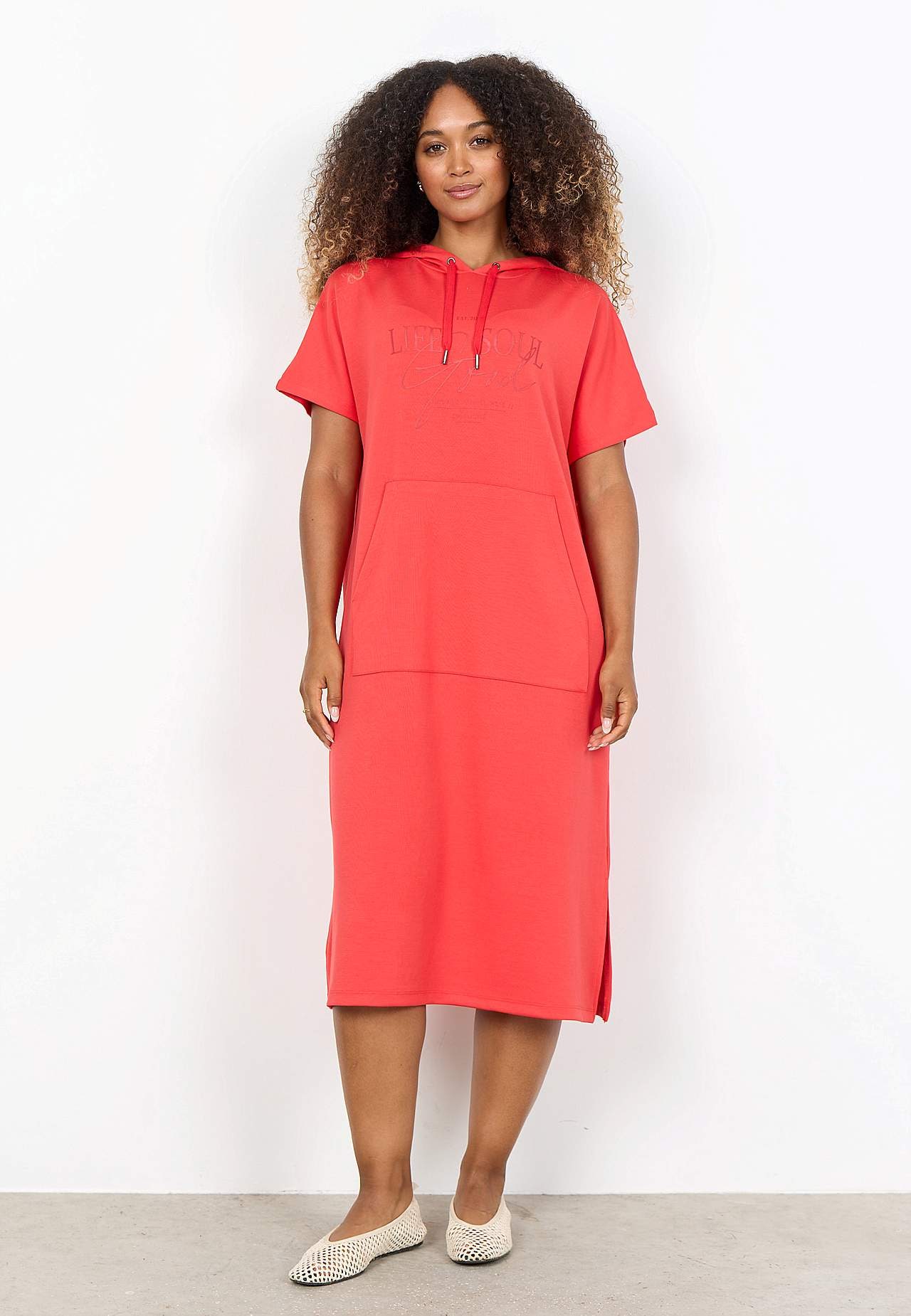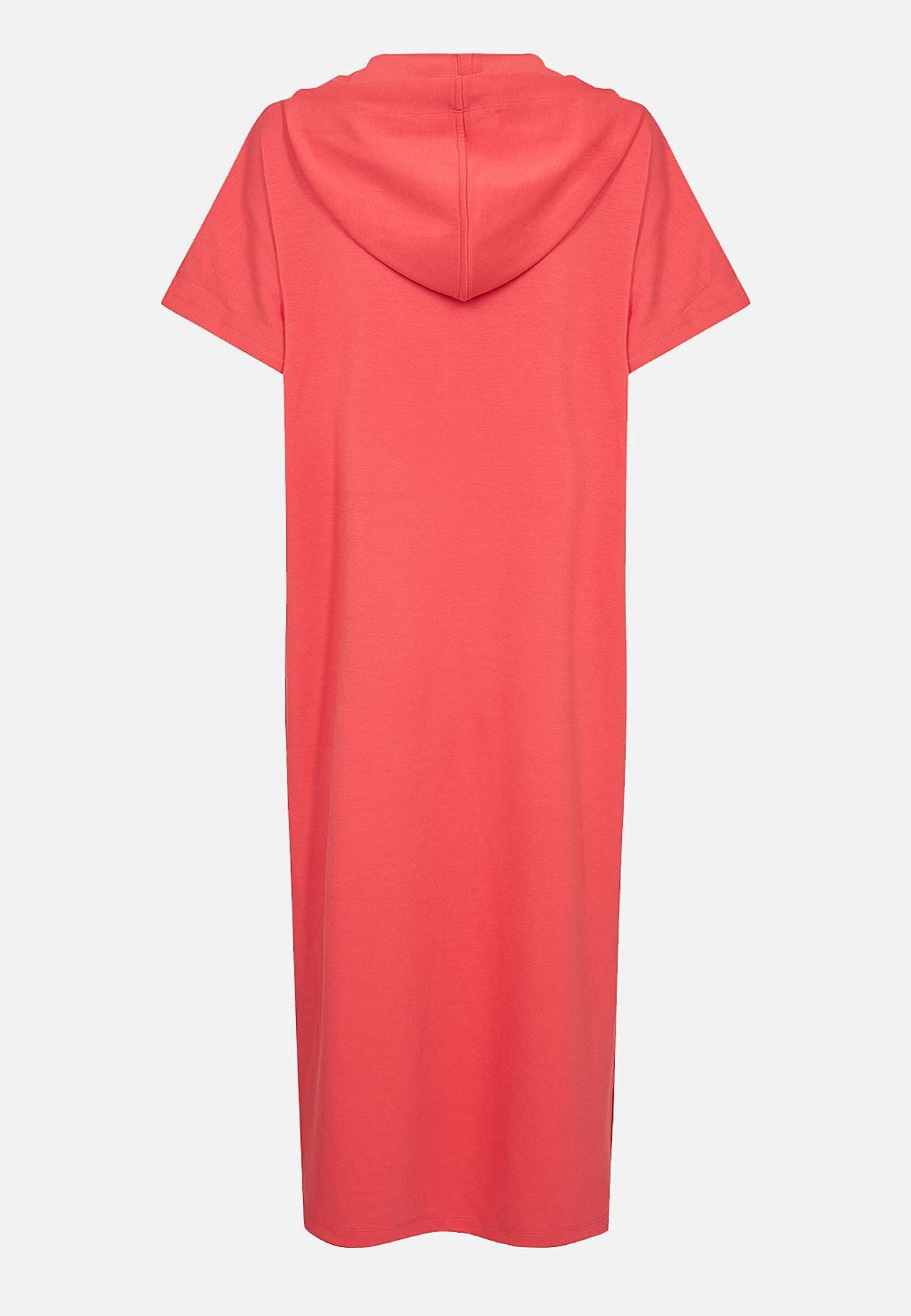 Kjole i dejligt blødt modalmiks og noget kraftigere jersey. Lige pasform. Stor hætte med træksnøre. Tekstudskrift foran. Kængurulomme på fronten. Korte ærmer. Lige søm med slids i siderne. Længde fra skulder ca. 114 cm i størrelse S (38).