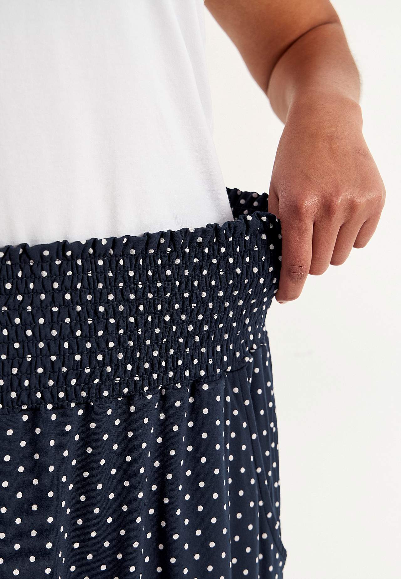 Nederdel med svaj i blød, jævn jersey. Bred pasform. Bred, komfortabel smock ved taljen. Lommer i siderne. Lige søm. Længden følger størrelsen, ca. 60-62 cm.