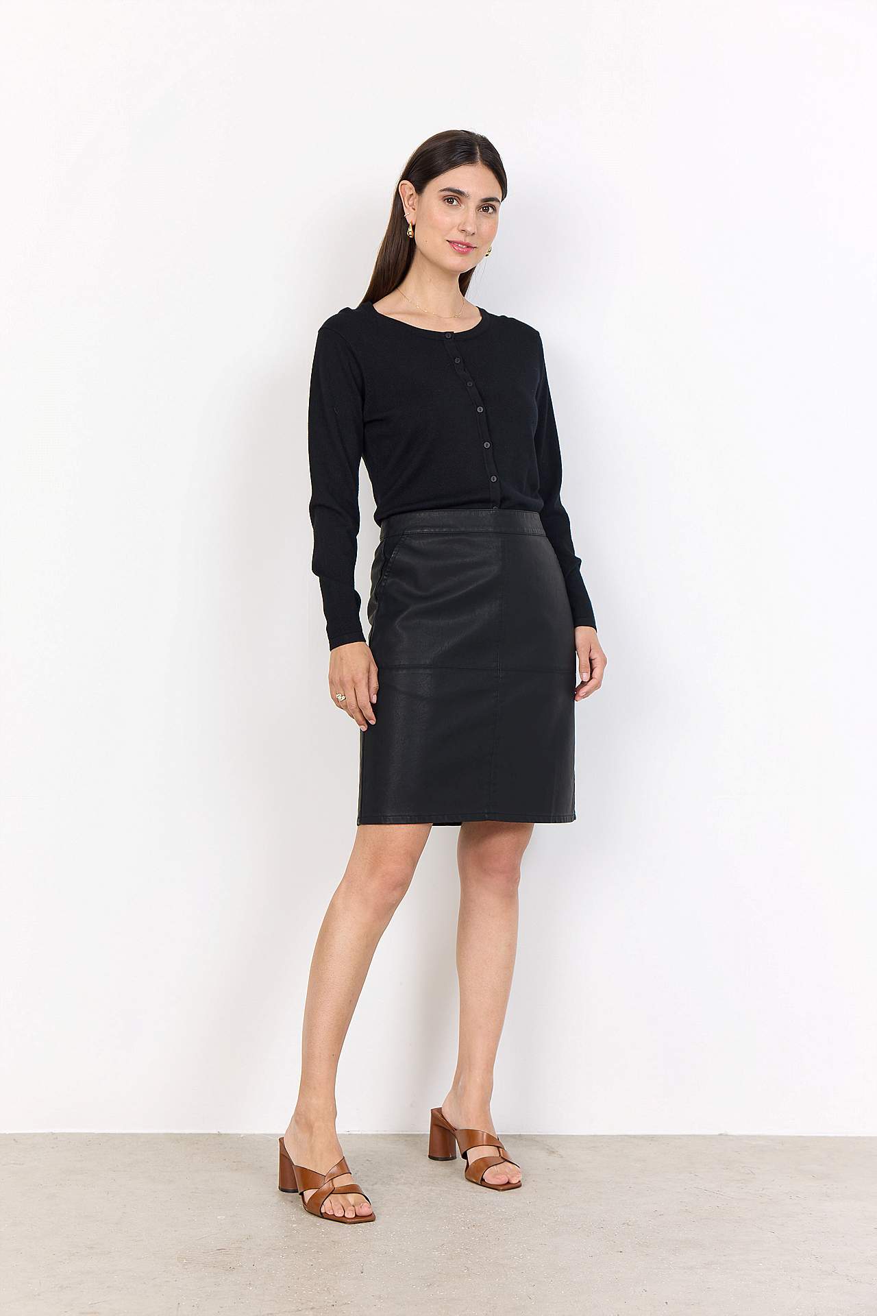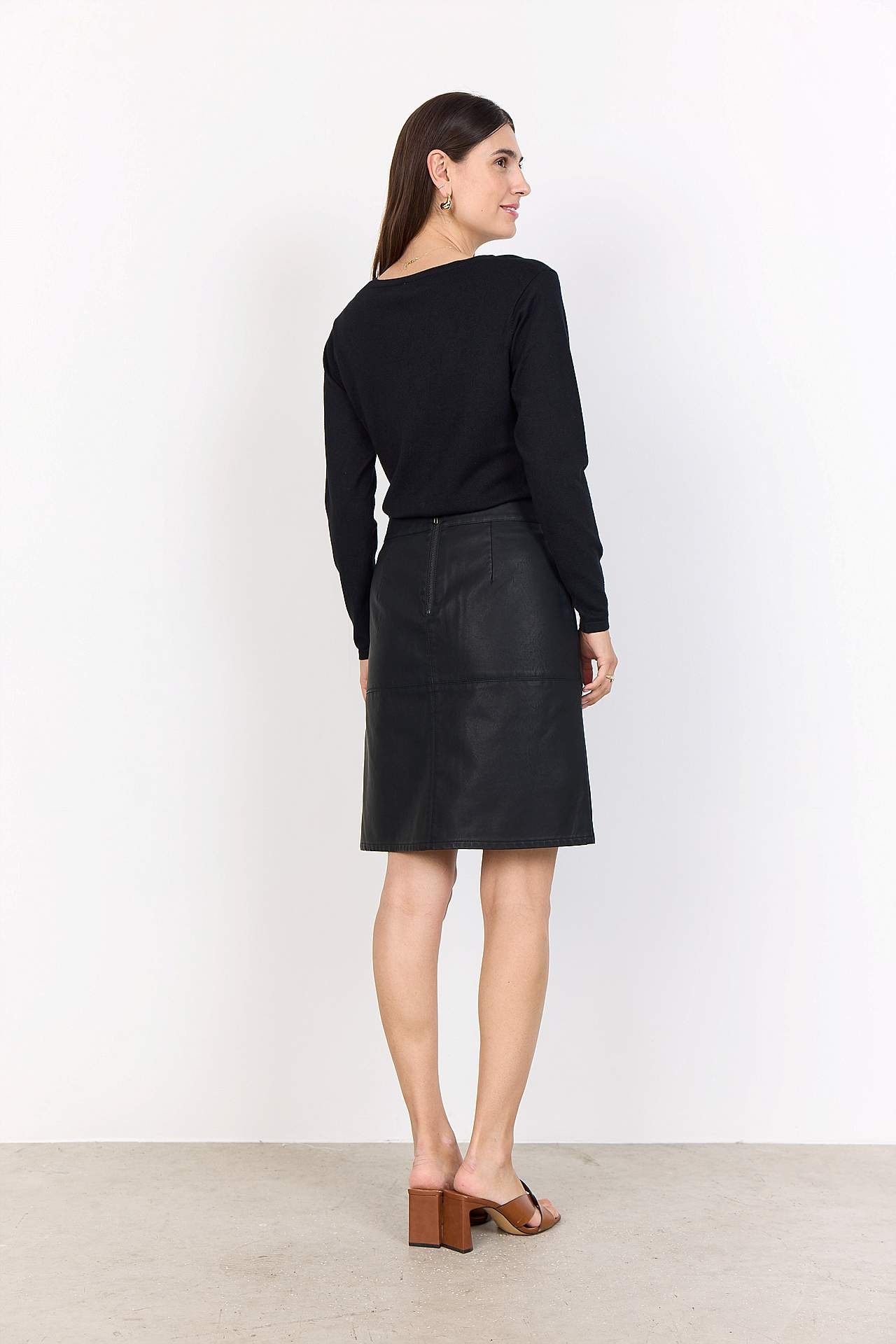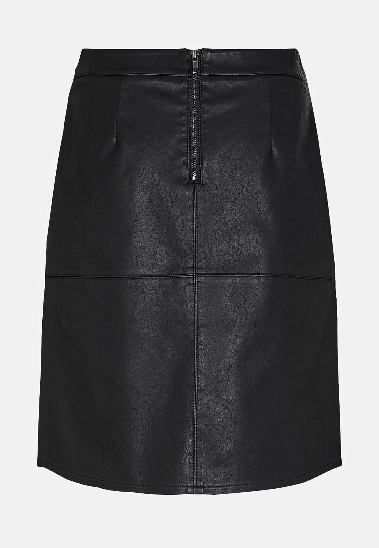 Nederdel i jævn læderimitation. Lommer i siderne. Lynlås bagpå. Dekorative syninger foran og bagpå. Indsnit bagpå for en bedre pasform. Længde ca. 53 cm i størrelse M (40).