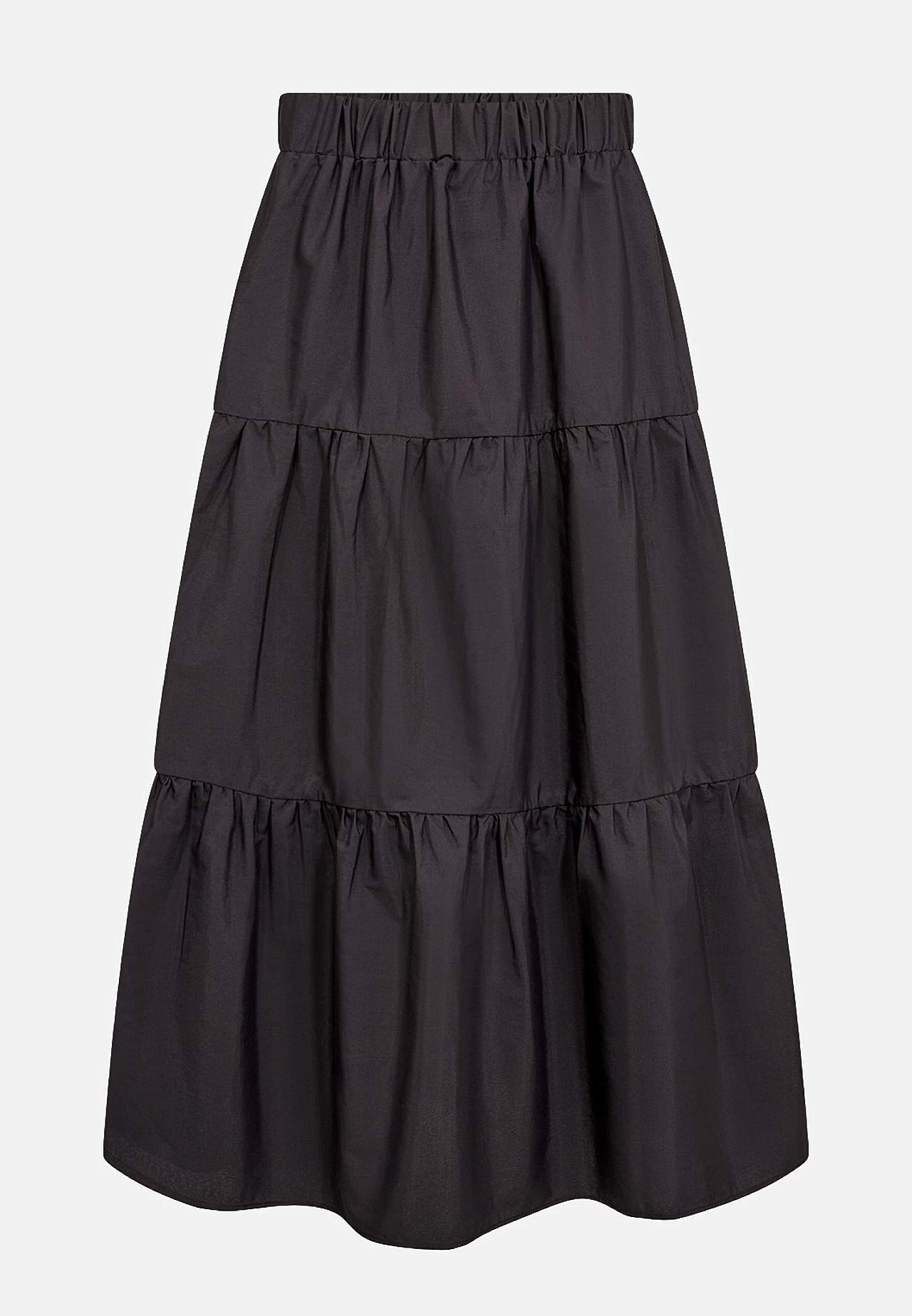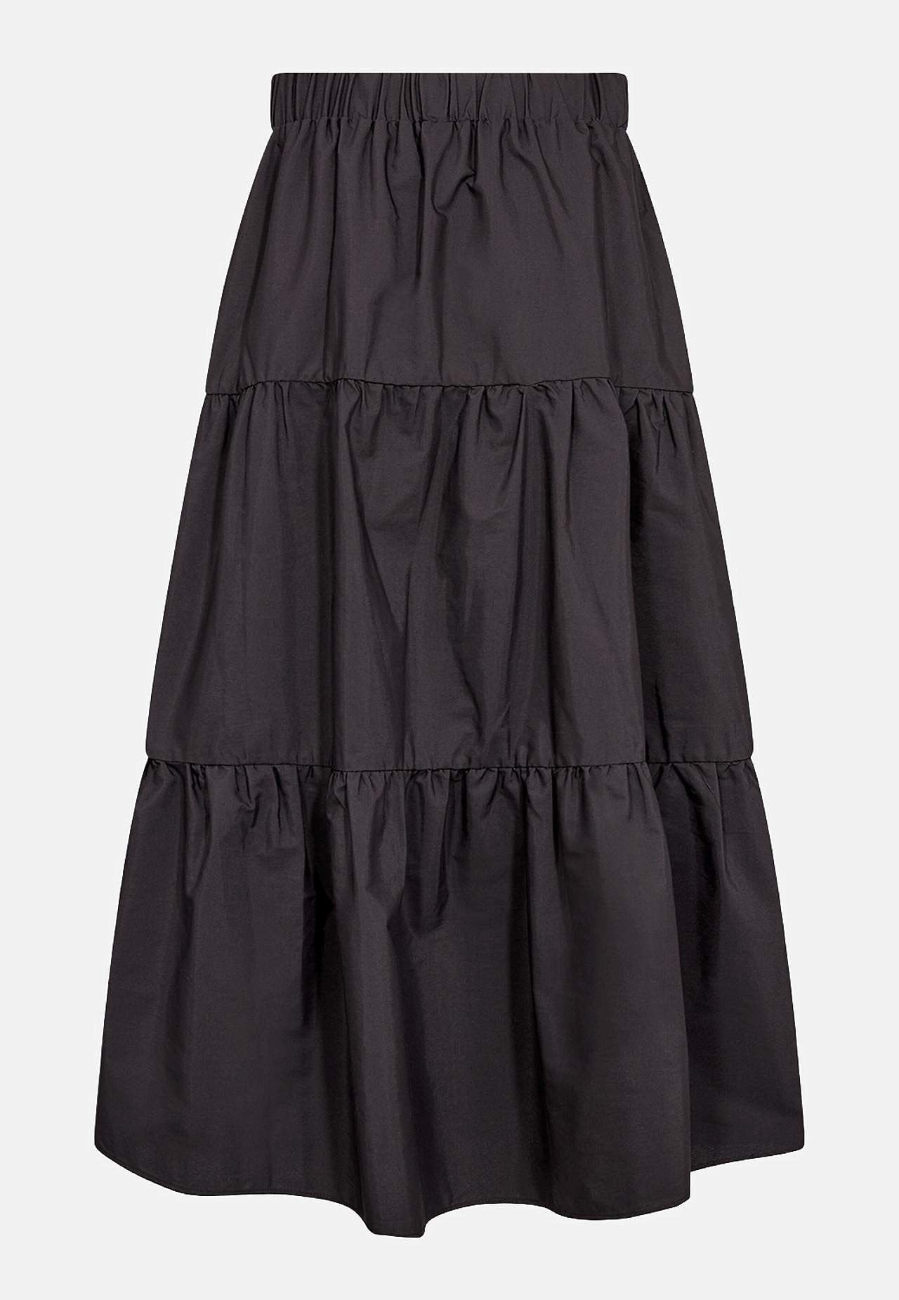 Vævet, uforet nederdel med volanter og herlig volumen. Glat materiale med dejlig glans. A-linjeformet pasform med vidde nederst. Komfortabel, bred elastisk talje. Lige søm. Længde ca. 92 cm i størrelse S (38).