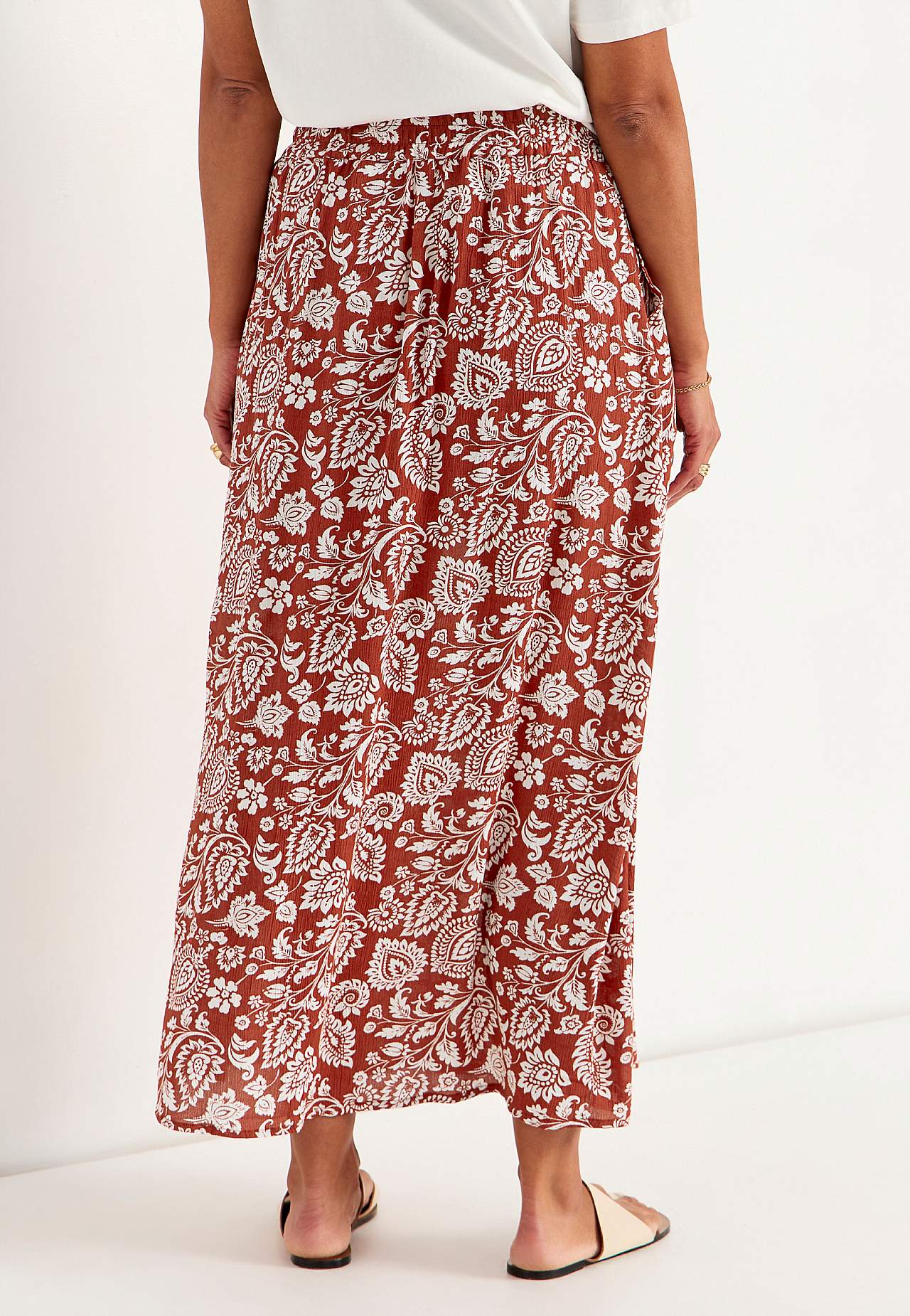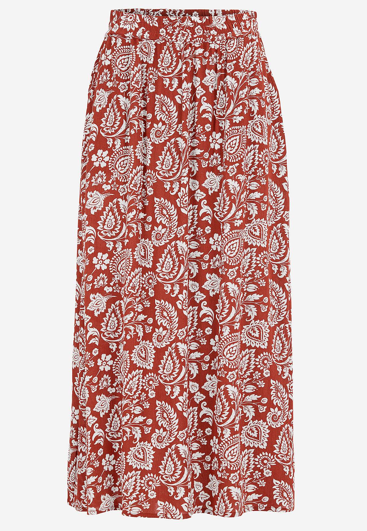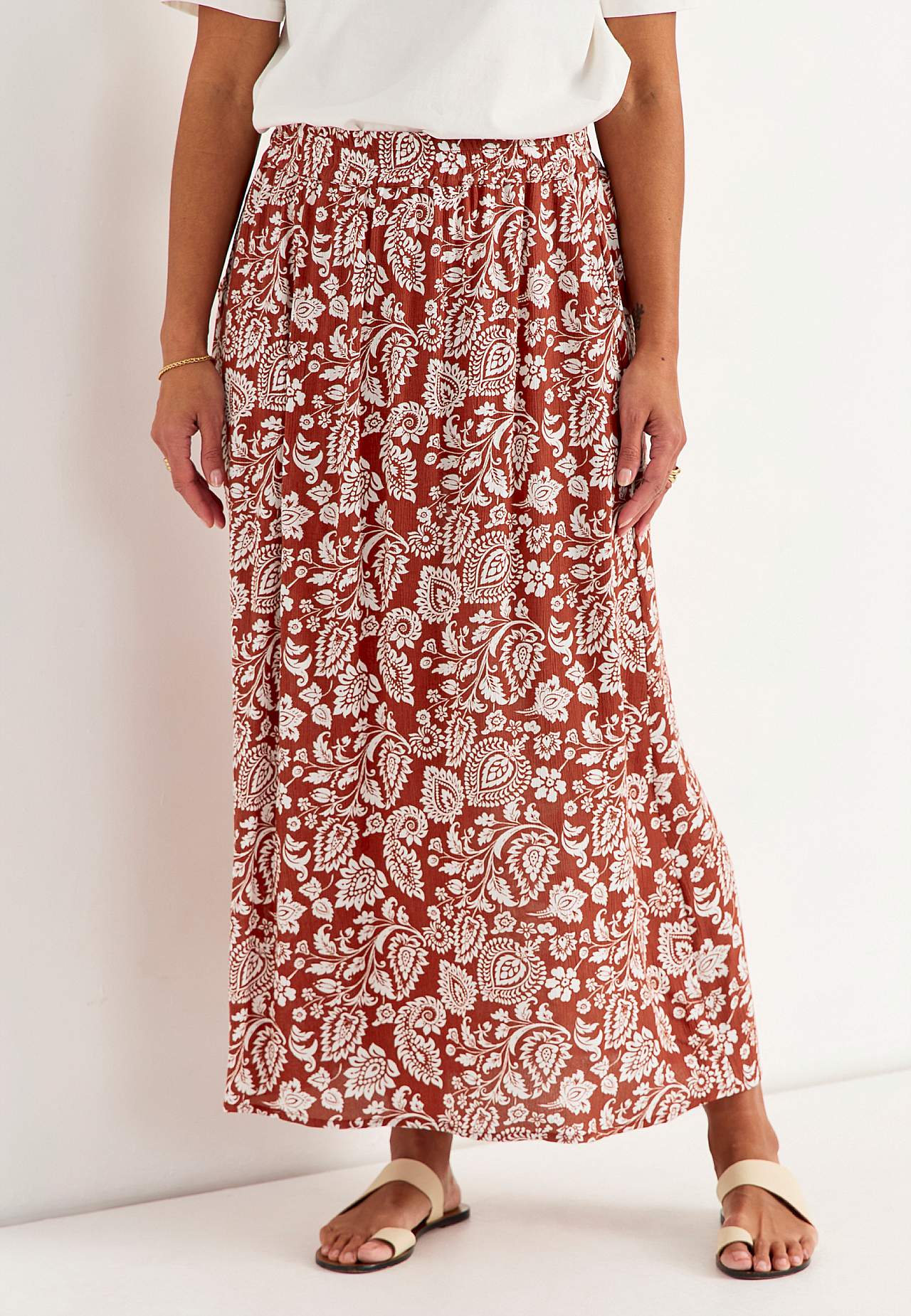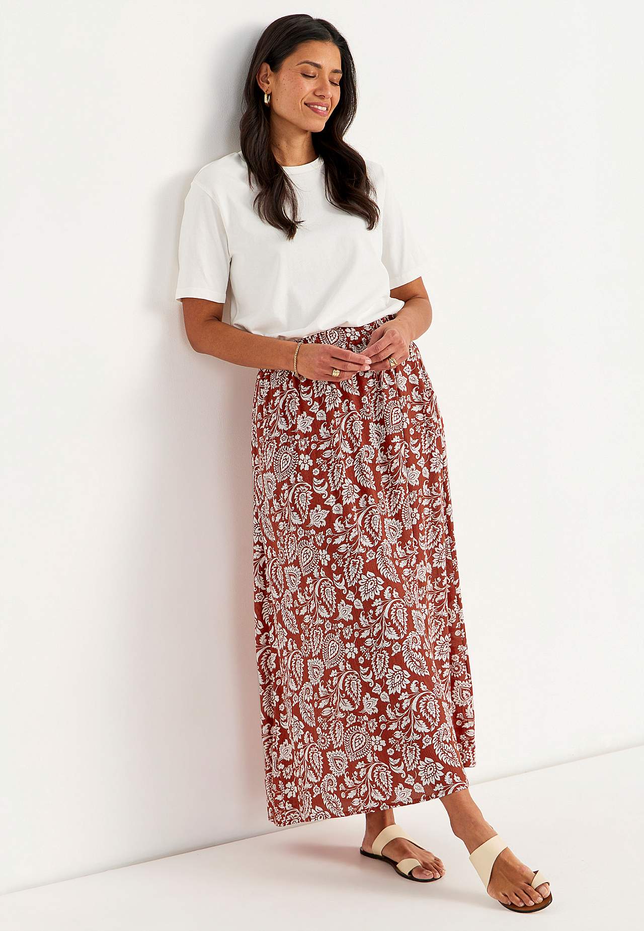 Lang, vævet viskosenederdel med lommer. Materiale i crepe med mat finish og fin struktur. Blødt, med flot fald og føles behageligt køligt. Bred, blød elastisk linning. Skrå lommer på fronten. Lige søm. Match gerne med 702443. Længde: 95 cm.