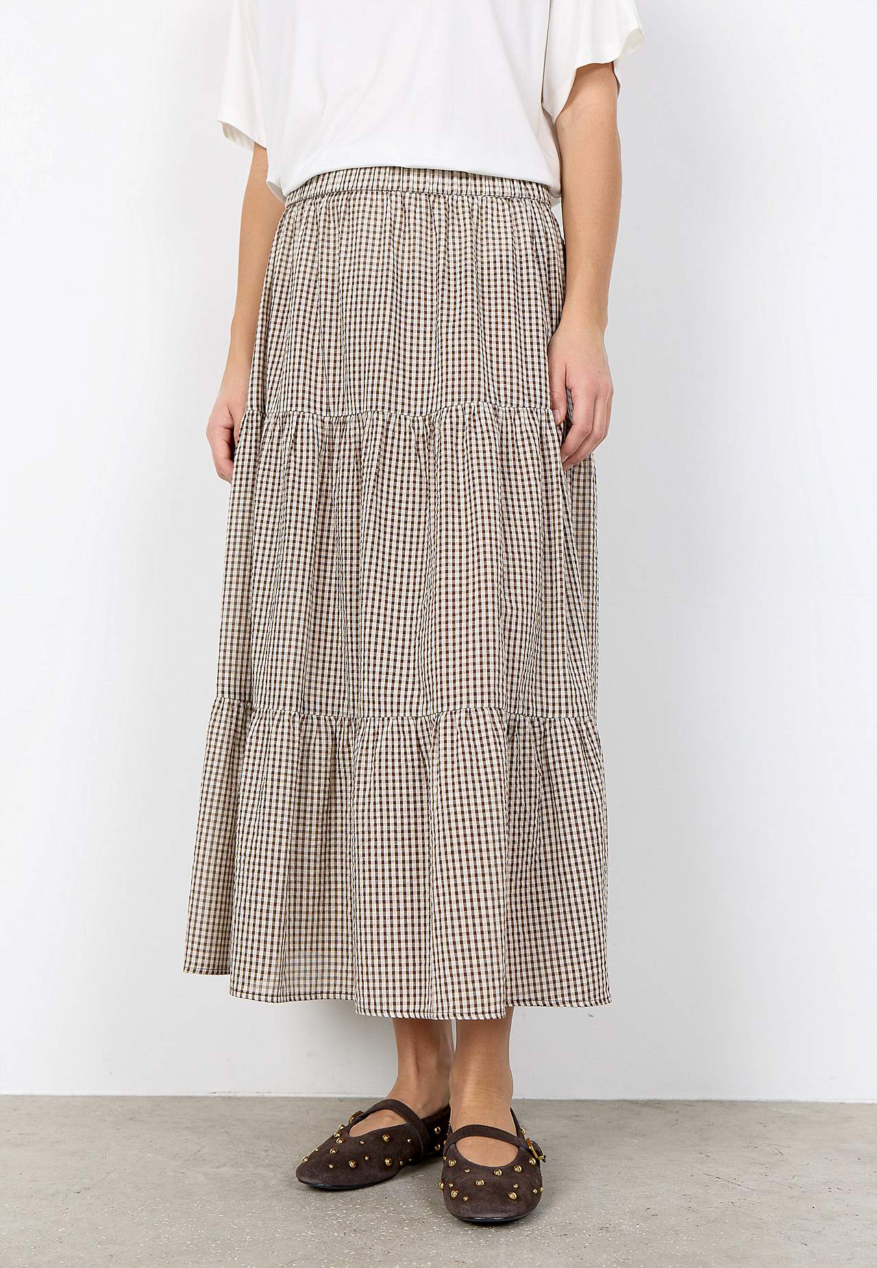 Vævet, småternet volantnederdel