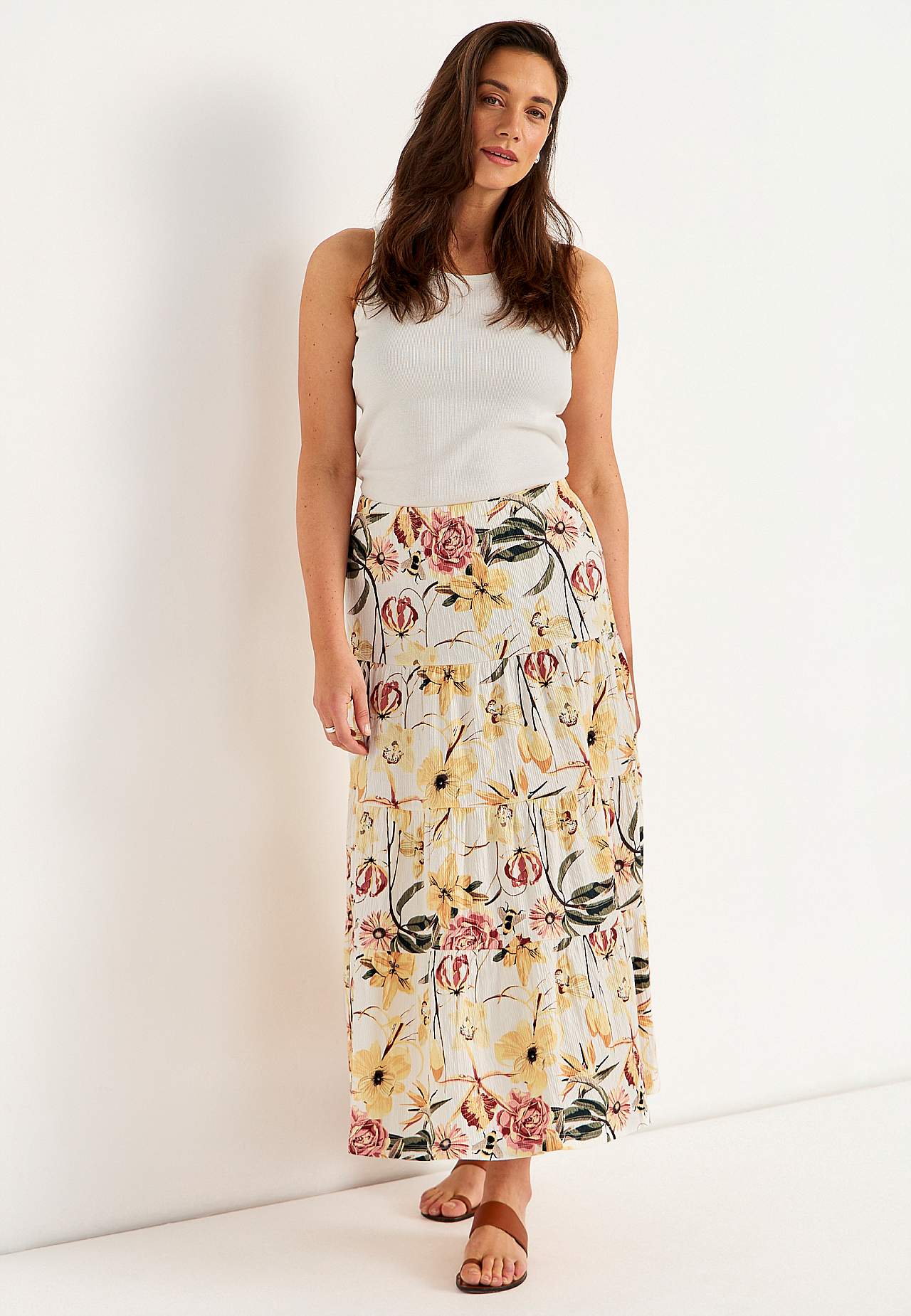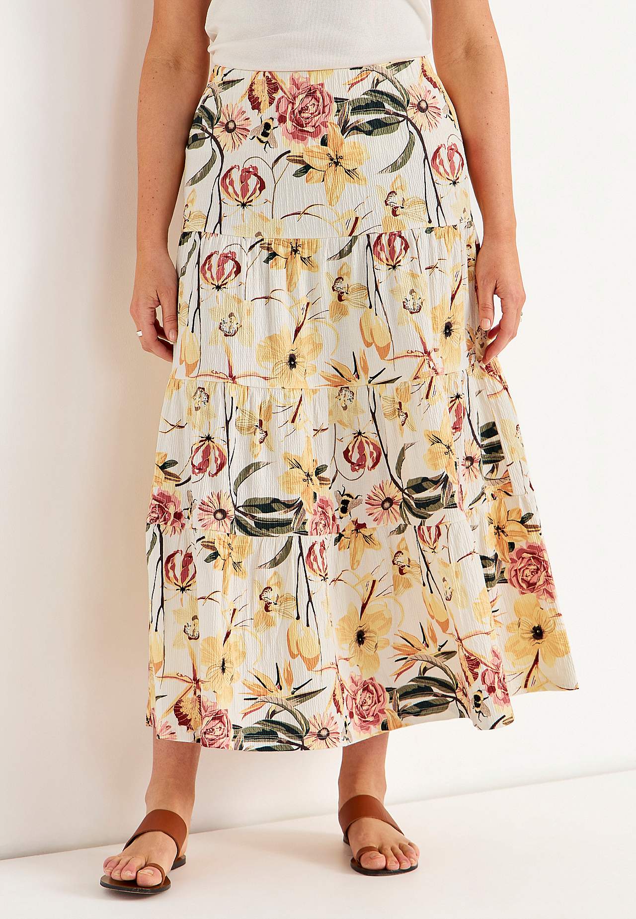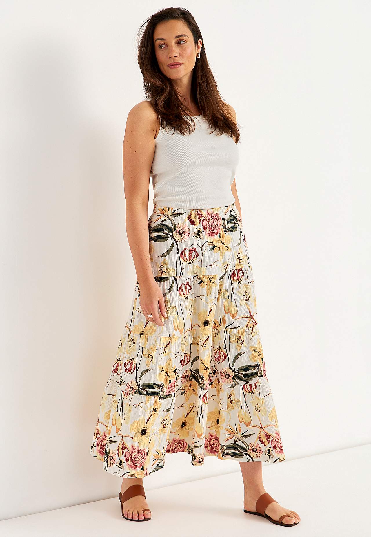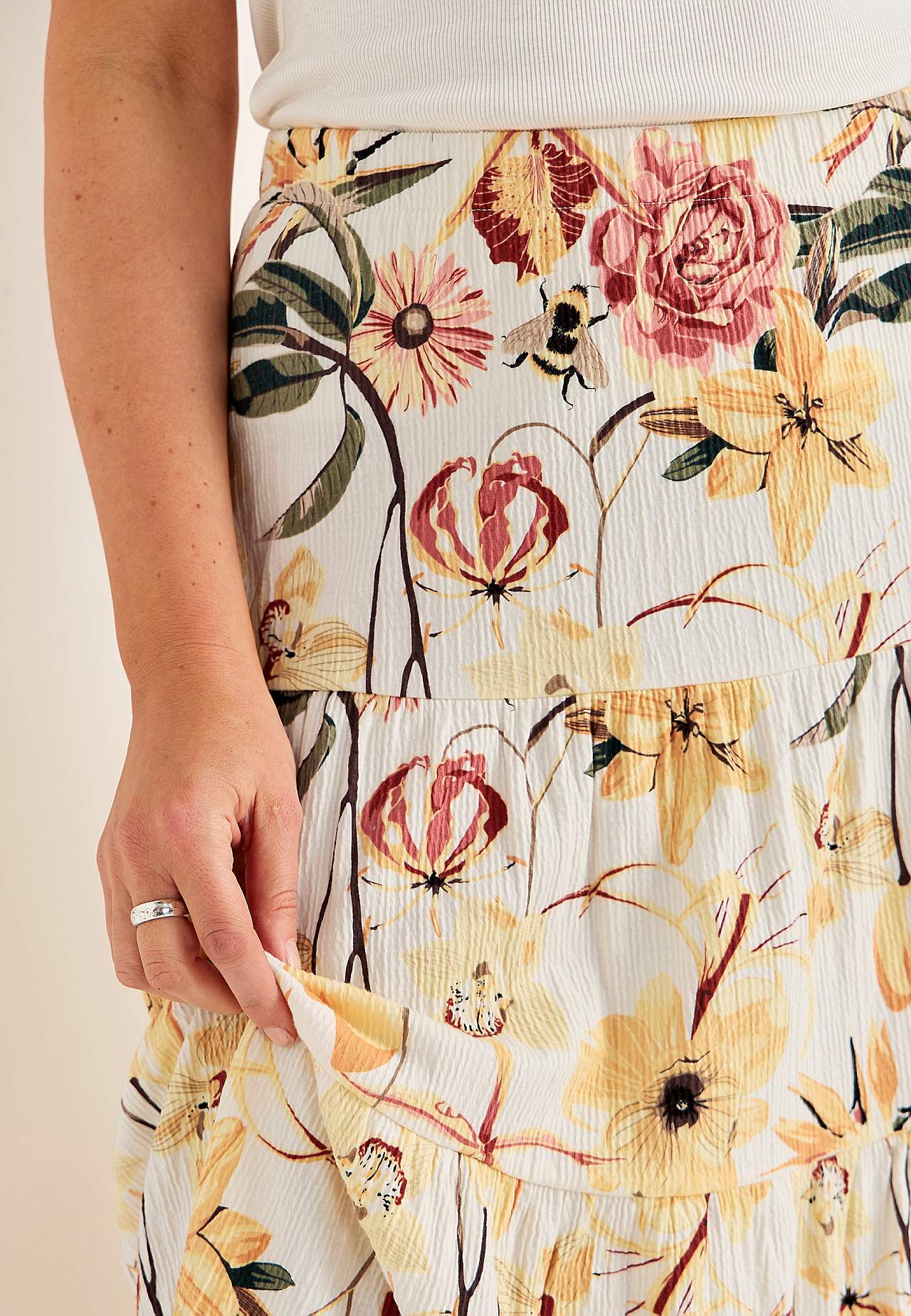 Blød, elastisk nederdel med bølget struktur. A-linjeformet pasform med vidde nederst. Talje med blød, bred elastik. Afrundet søm. Match gerne med 701369. Længde: 90 cm.