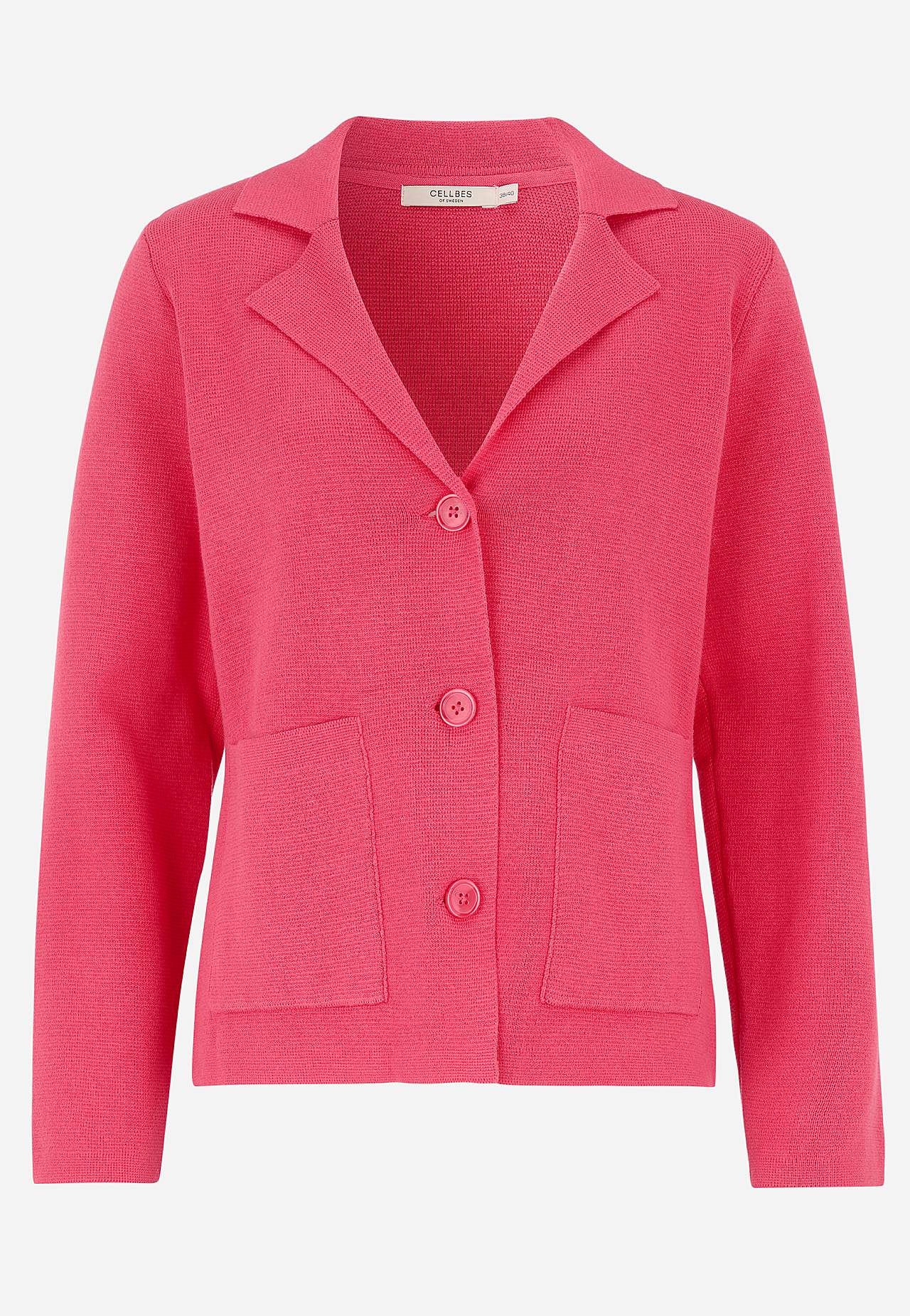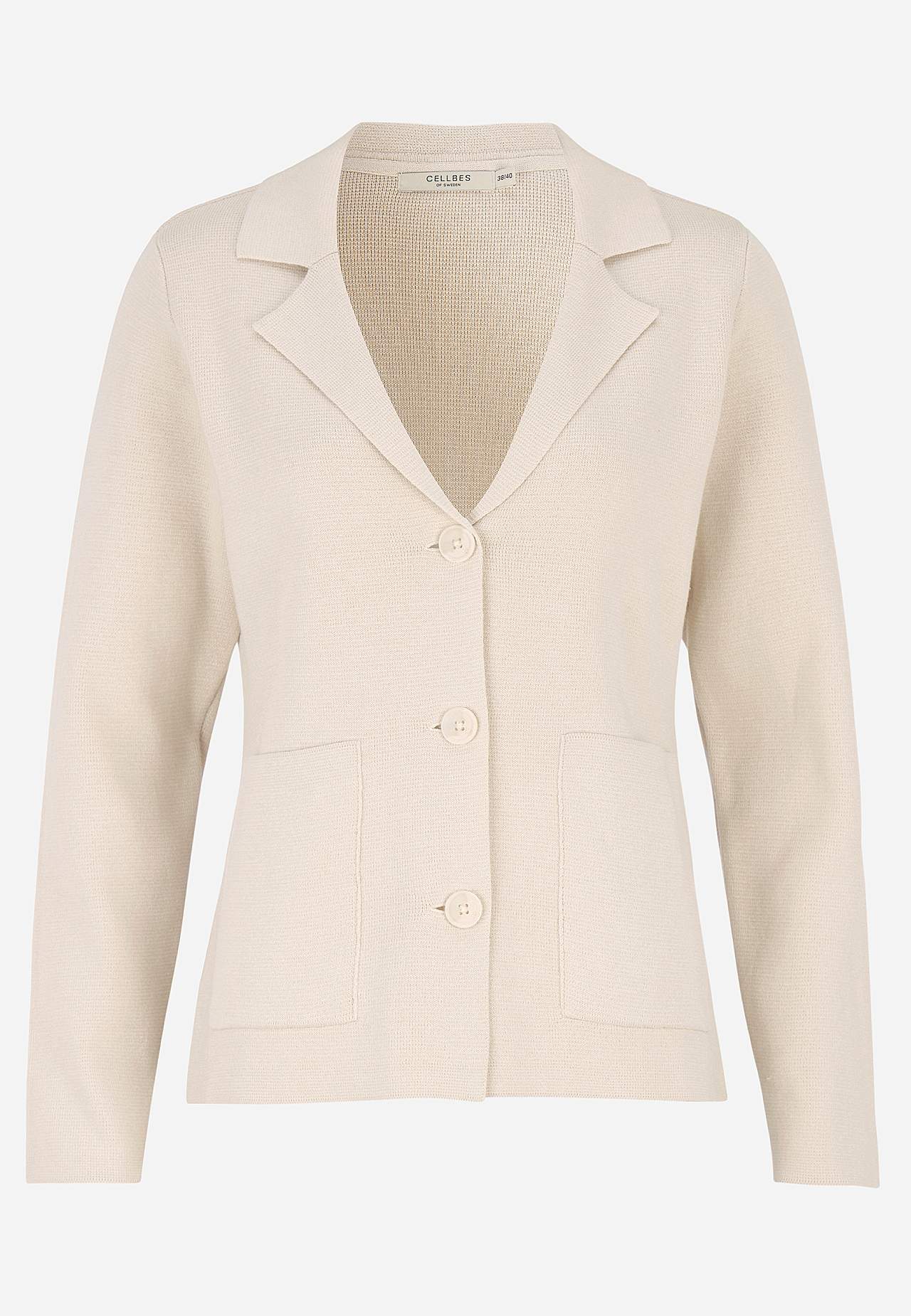 Fintstrikket blazer i formfast, blød bomuldskvalitet. Let figursyet pasform. Rent, stilrent design perfekt hele året rundt. Tre store knapper. Lommer på fronten. Lange ærmer. Længden følger størrelsen, ca. 61-70 cm fra skulderen.