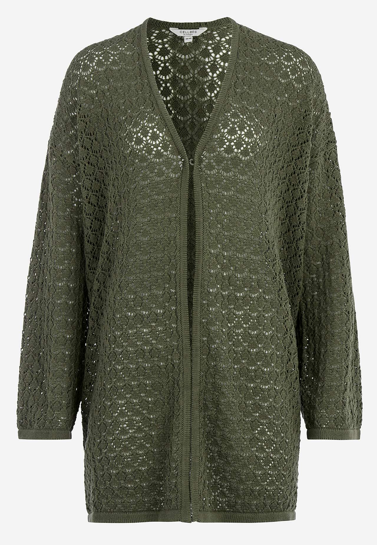 Blød, luftig cardigan med blondeagtig finstrik. En behagelig blanding af bomuld og genanvendt polyester. Dejlig at have på over en top eller en tanktop. Uformel, lige pasform. Åben model med skjult knap. Ribstrikket v-udskæring. Droppet skulder. Lange ærmer med ribstrikket kant på ærmeafslutningerne. Længden følger størrels... Læs mere