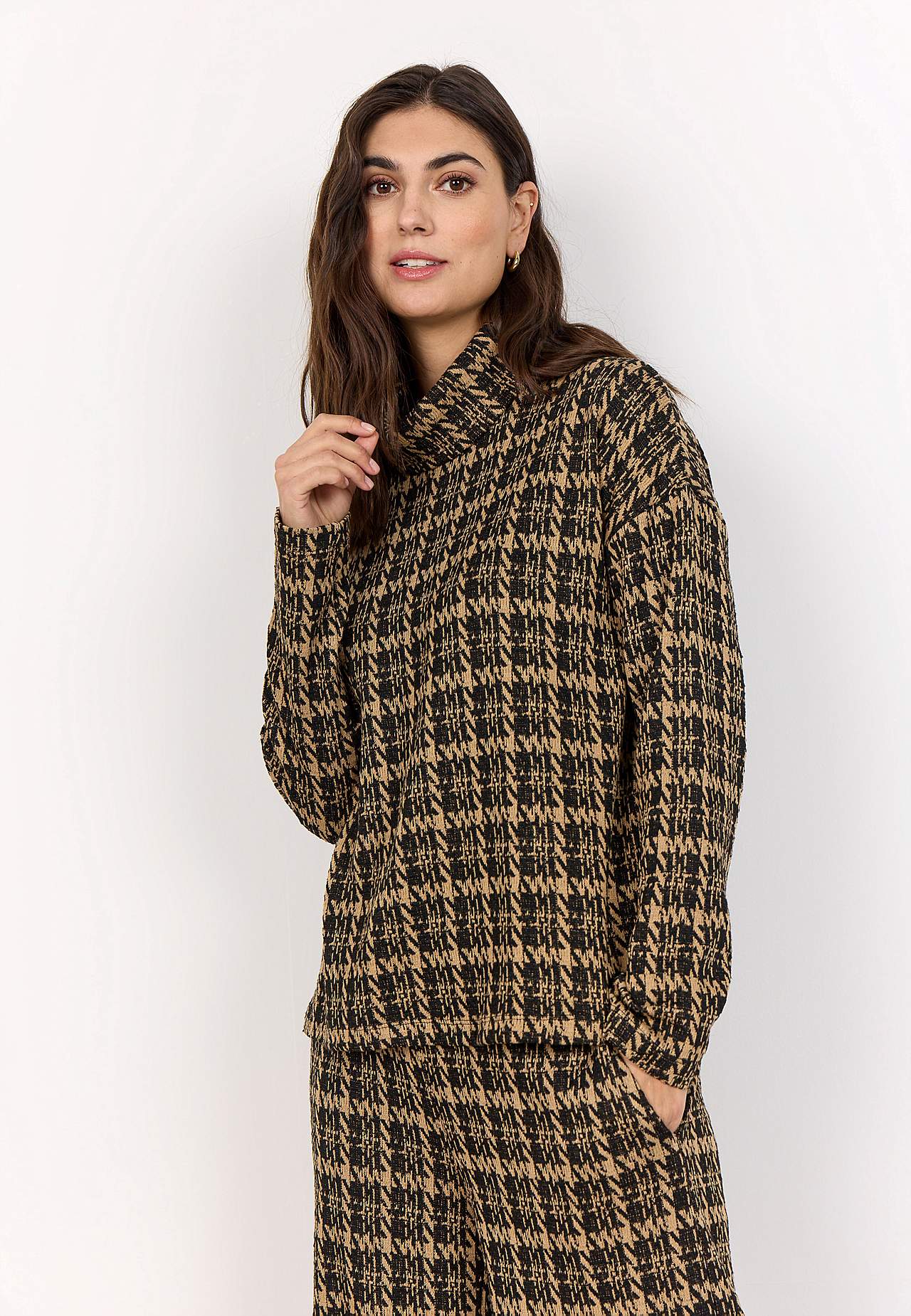 Ternet trøje i blød, lidt grovere jacquardstrik. Rummelig turtleneck. Lige pasform. Droppet skulder. Lange ærmer. Lige skåret søm. Længde ca. 65 cm i størrelse S (38). Match gerne med 701098.