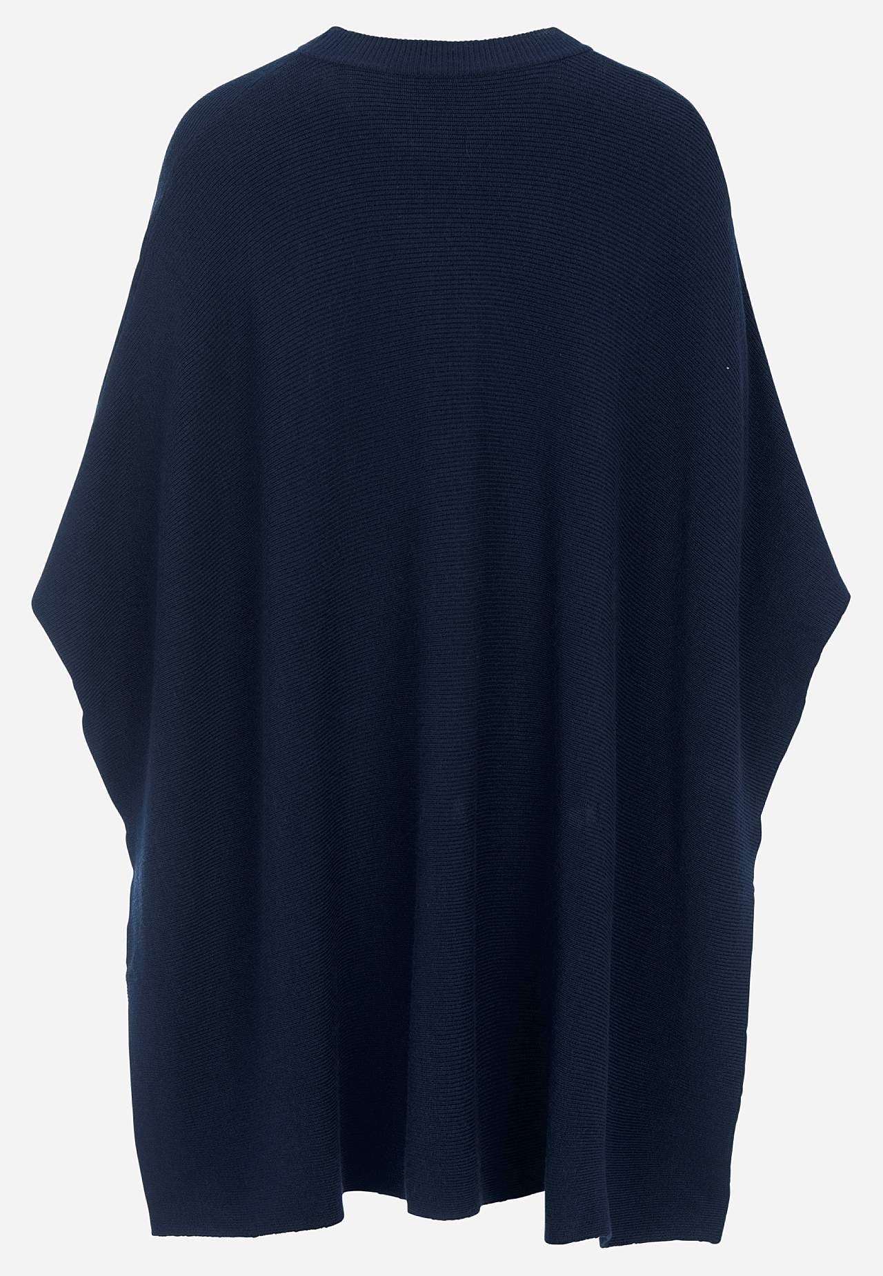Ribbet, fintstrikket poncho. Kvalitet i blød viskoseblanding. Noget kraftigere kvalitet med smukt fald. Lidt længere model. Rund, ribbet halsudskæring. onesize. Længde fra skulder ca. 90 cm i størrelse One-size.