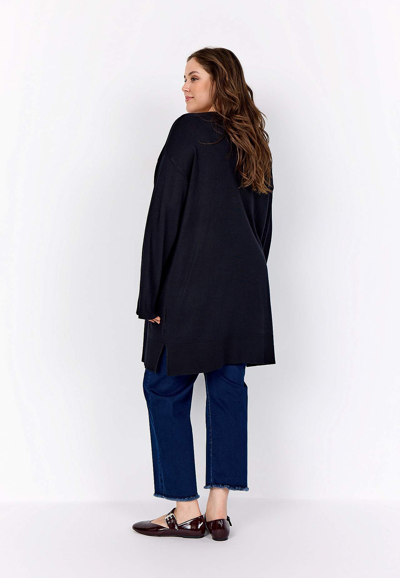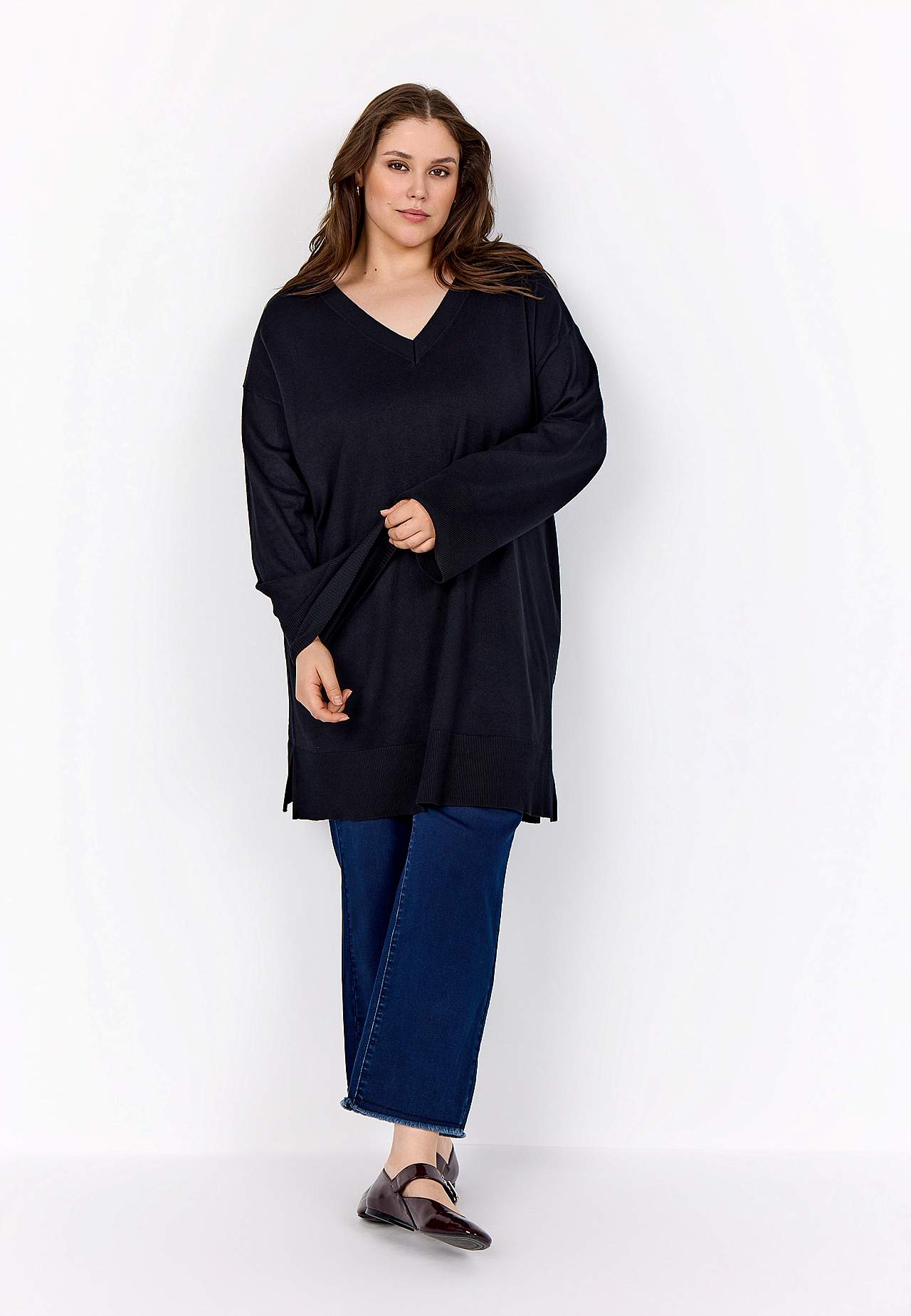 Blød, strikket tunika. Blødt materiale med let glans. Rummelig pasform. Lange, brede ærmer. Ekstra bred, ribstrikket ribkant ved manchetterne. Lav skulder. Lige ribbet søm med slids i siderne. Længde fra skulder ca. 90 cm i størrelse M (46/48).