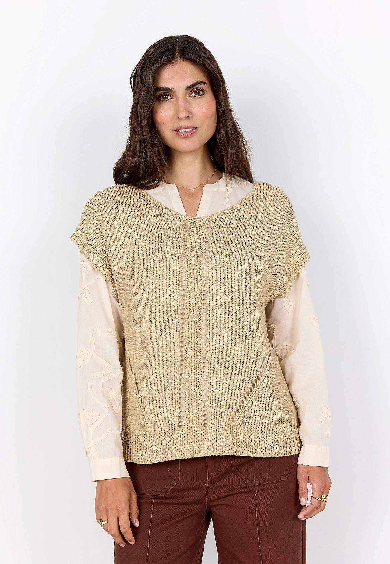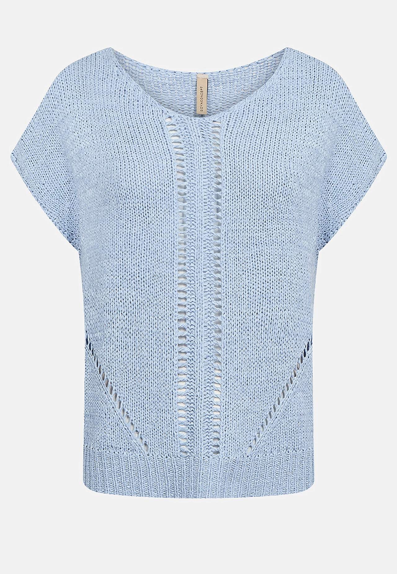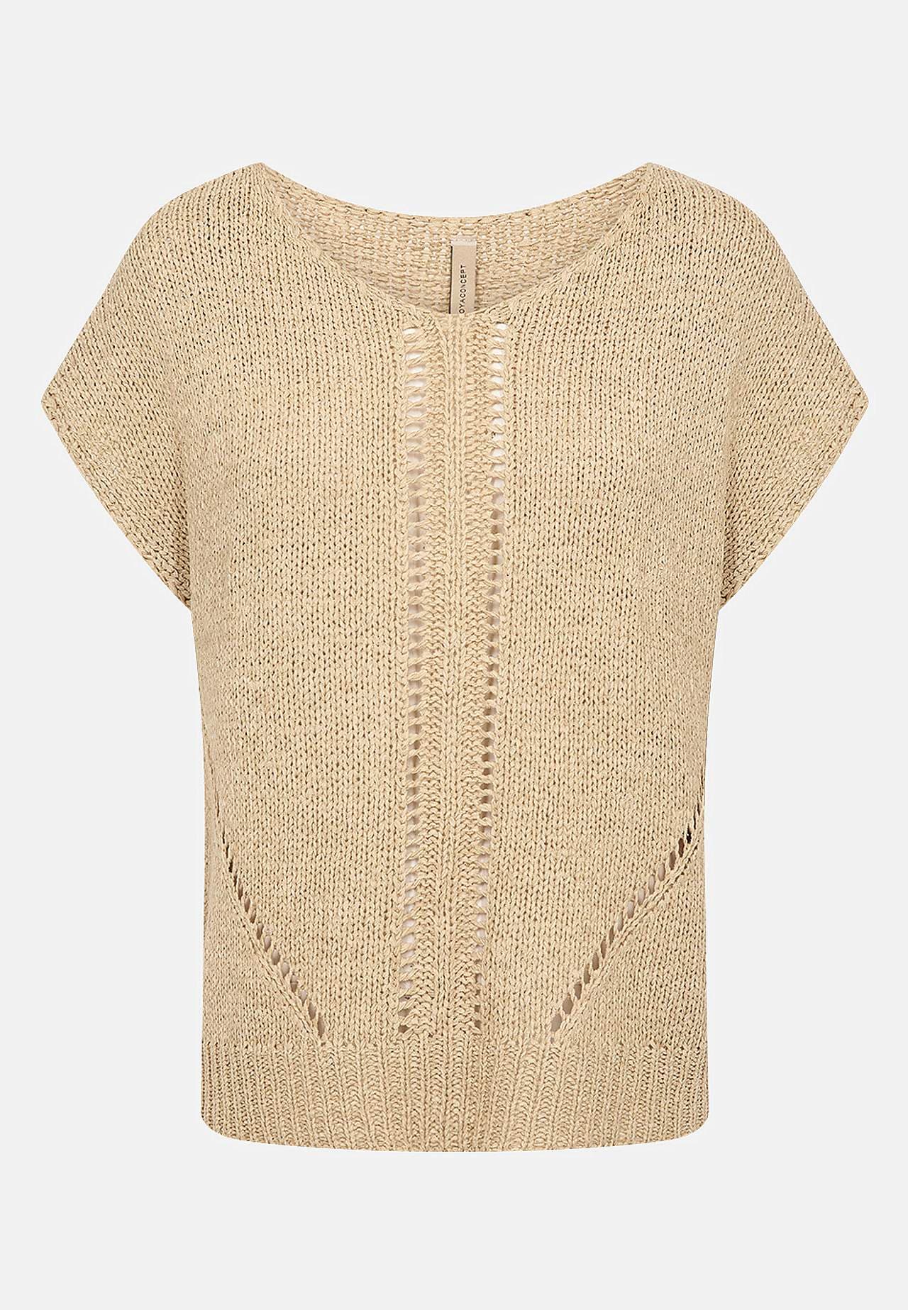 Luftig, blød trøje med mønster på forsiden med en strikket detalje. Dejlig at have på over en top eller en tanktop. Uformel pasform. Rund hals. Korte korte ærmer. Lige, ribstrikket søm. Længde fra skulder ca. 57 cm i størrelse 38/40 (S/M).