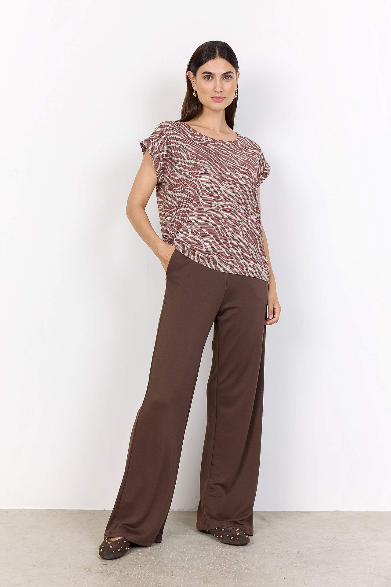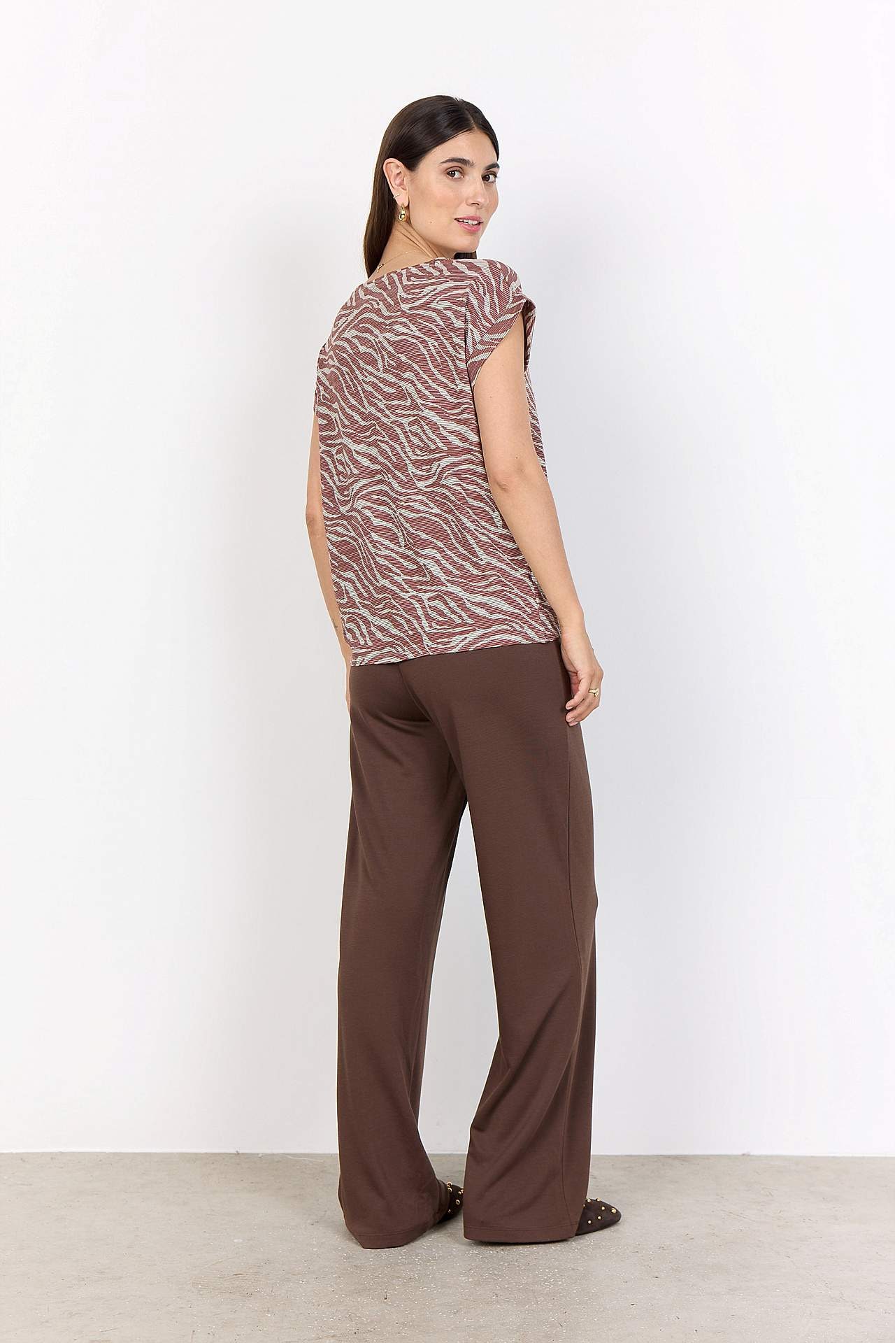 Blød, herlig jerseytop. Lige model. Rund halsudskæring. Foldet kort ærme. Lige søm. Længde fra skulder ca. 64 cm i størrelse S (38).
