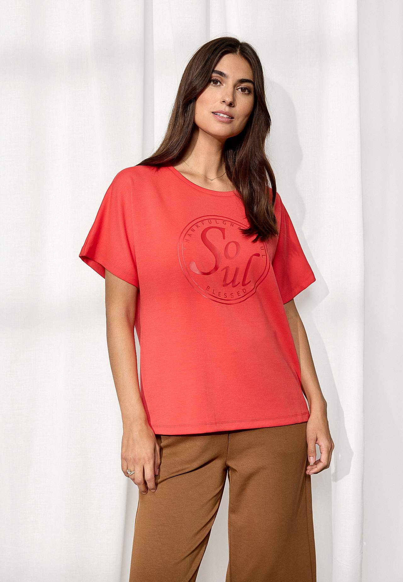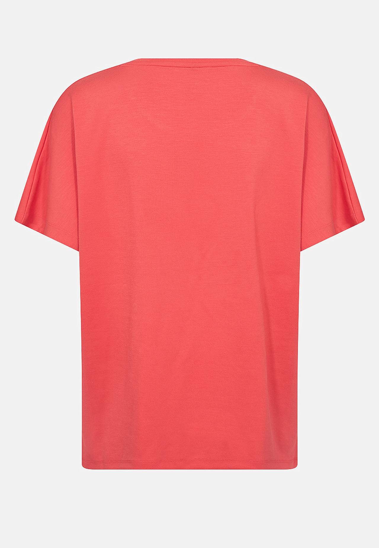 Top i dejligt blødt modalmiks og noget kraftigere jersey. Rummelig pasform. Tekstudskrift foran. Korte ærmer. Lige søm. Længde fra skulder ca. 61 cm cm i størrelse S (38).