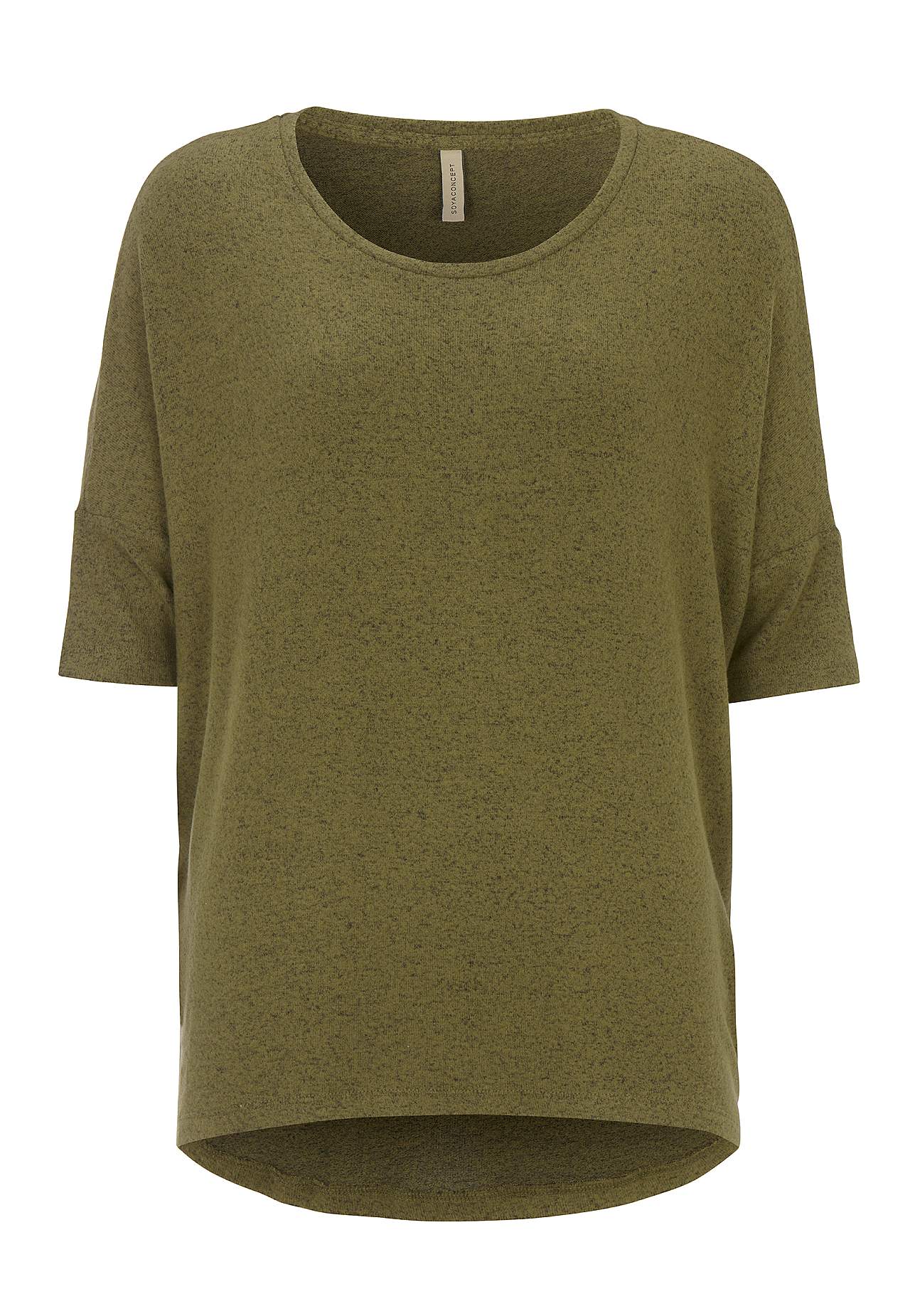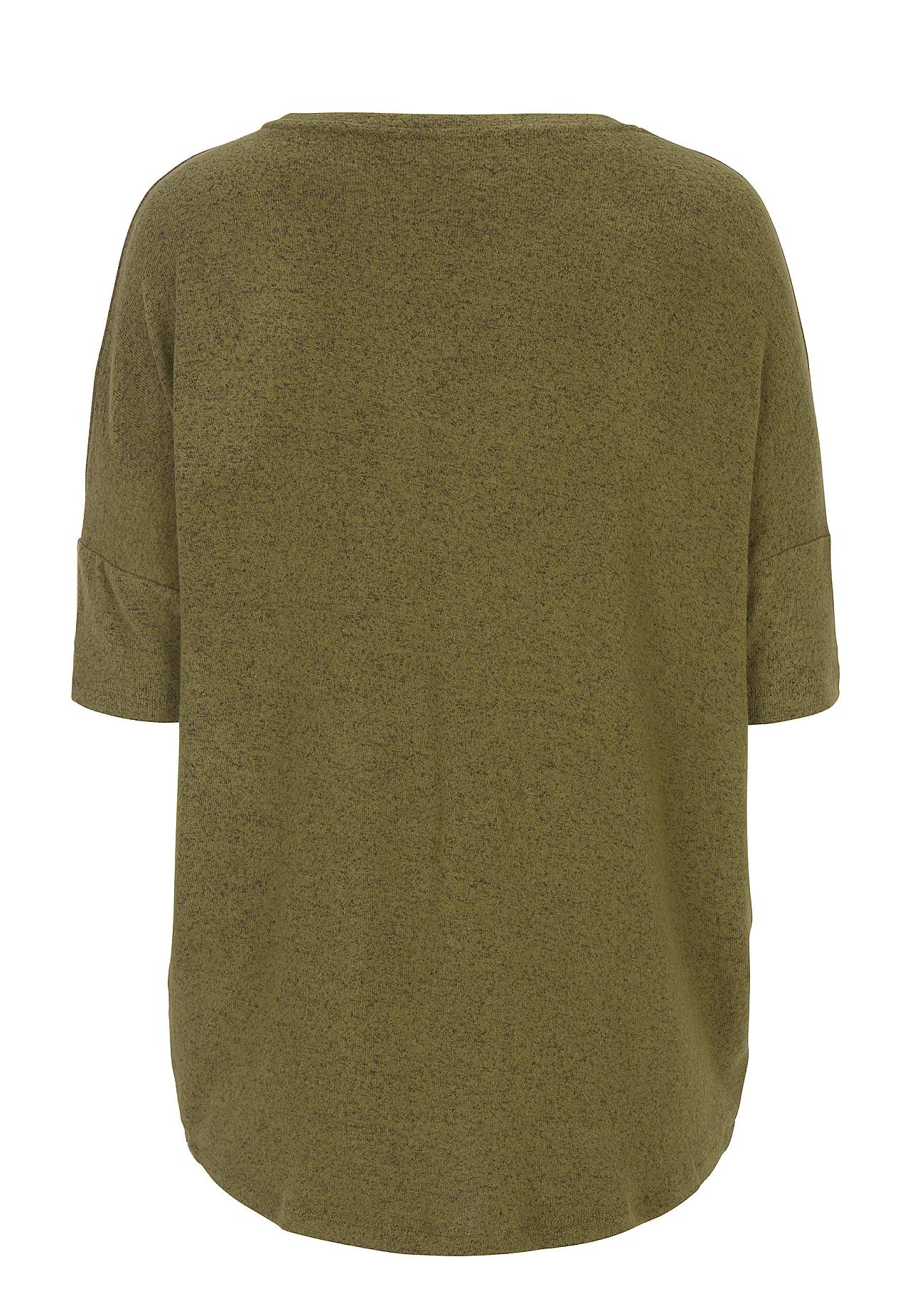 Top i blød, børstet, lidt kraftigere jersey. Oversize pasform. Afrundet halsudskæring. 3/4 ærme med nedsænket skulder. Lidt længere bagtil søm. Længde ca. 62cm midt foran. Længde midt bagpå ca. 70 cm i str. S (38). Match gerne med 700966.