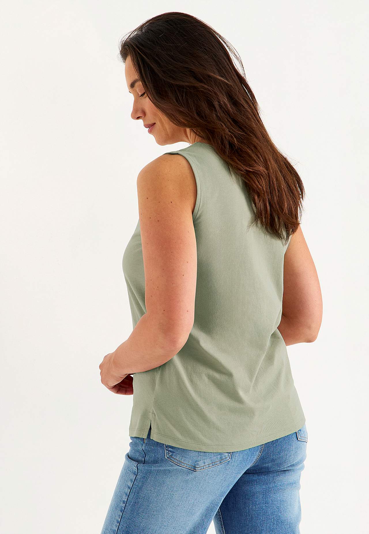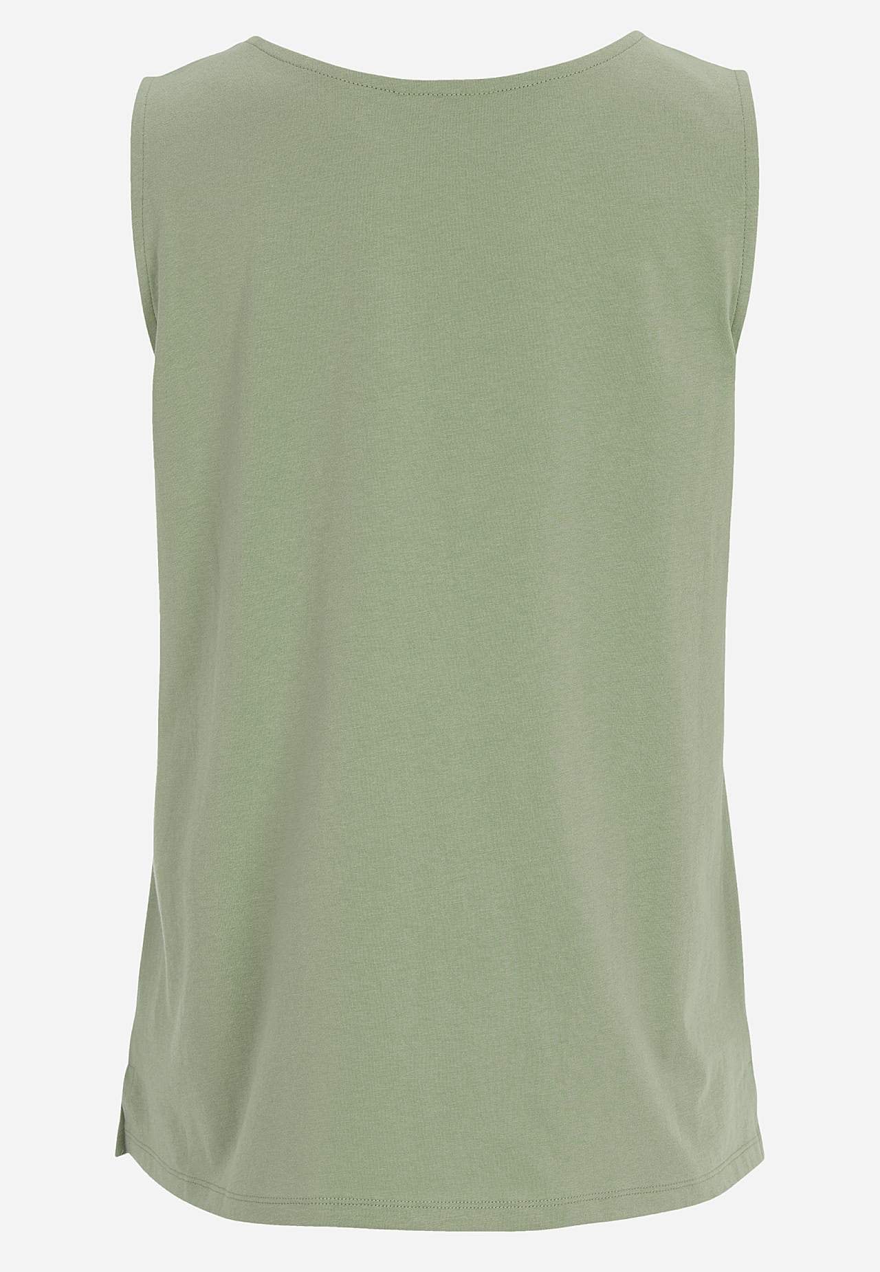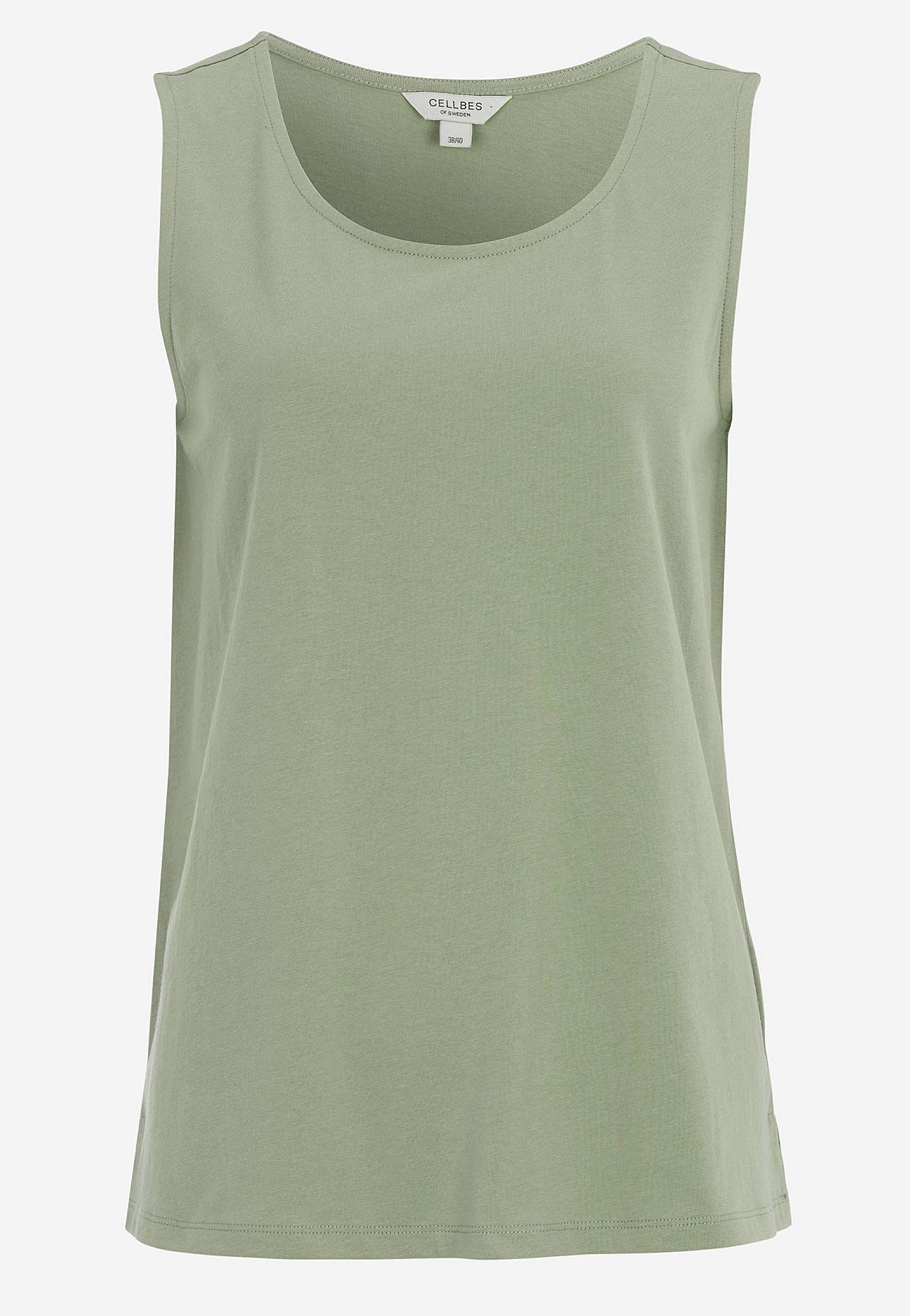 Jerseysinglet med brede skulderstropper. Økologisk, fin bomuld. A-linjeformet pasform. Rund halsudskæring. Lige søm med slids i siderne. Længden følger størrelsen, ca. 62-77 cm fra skulderen bagpå.