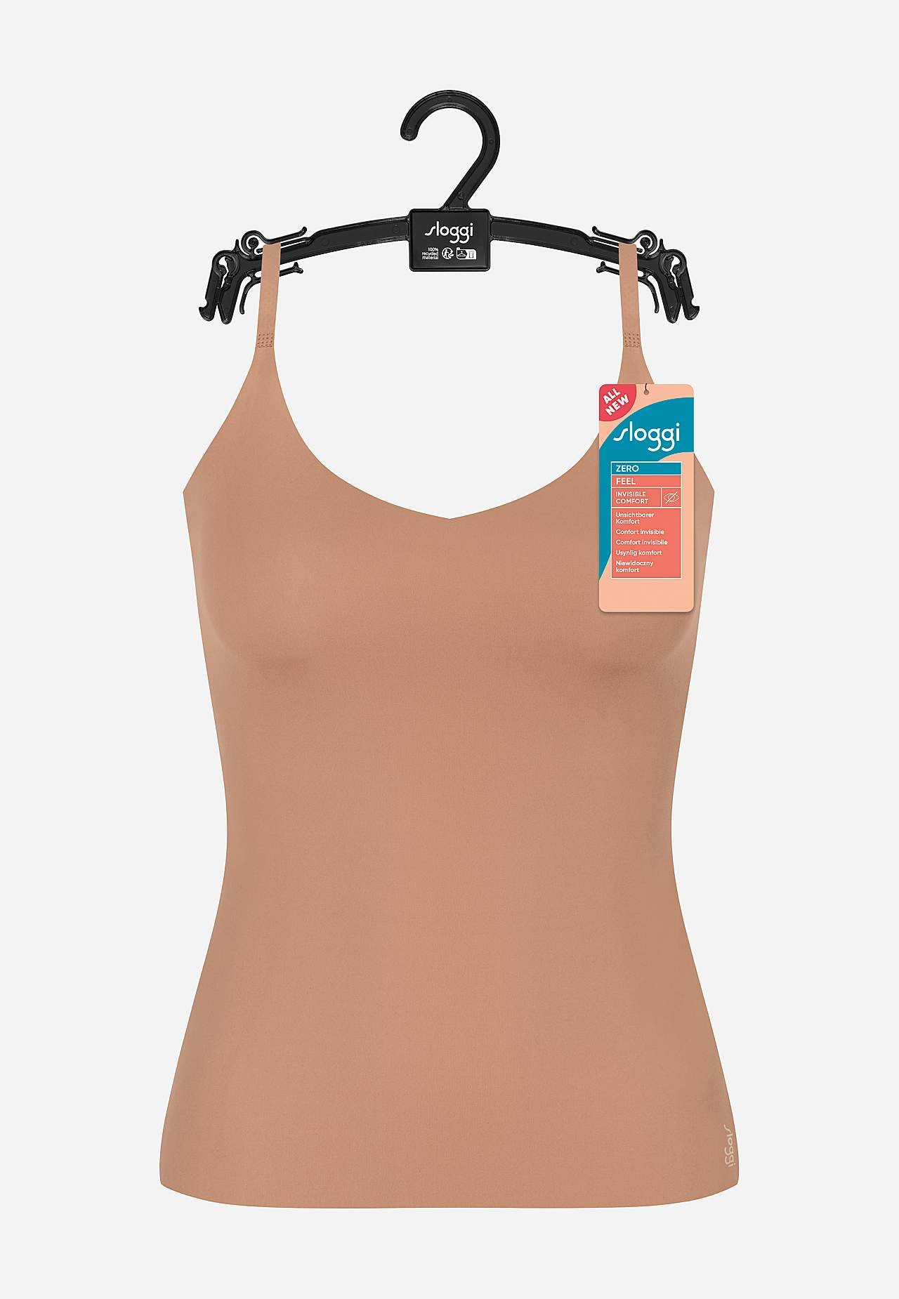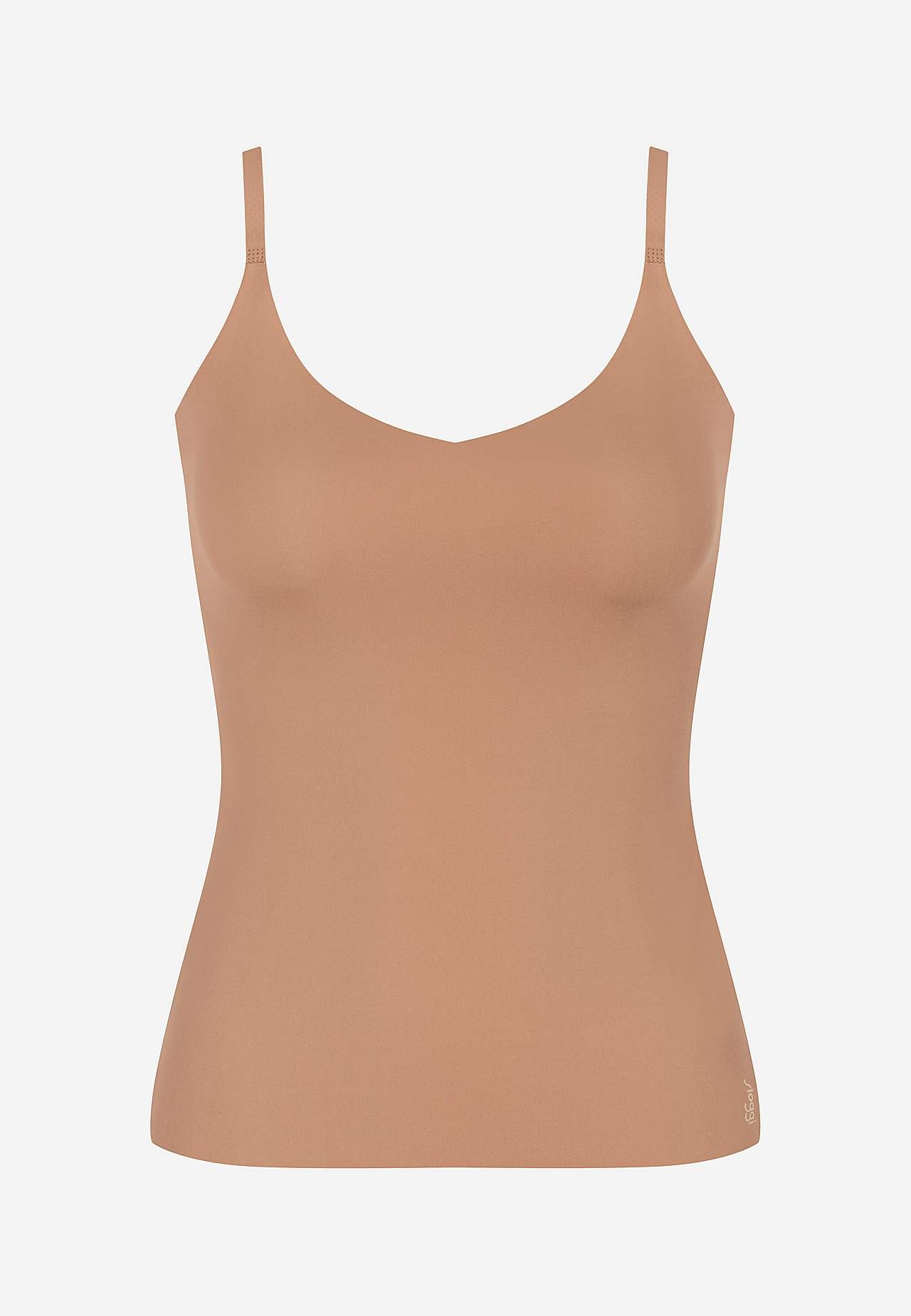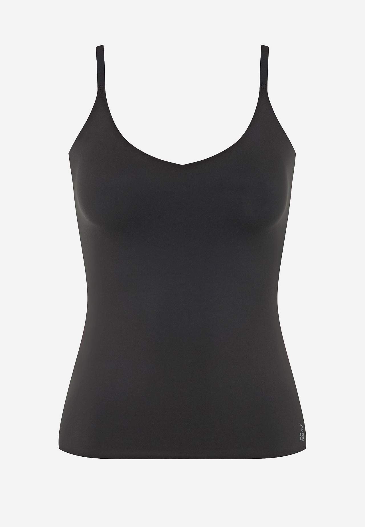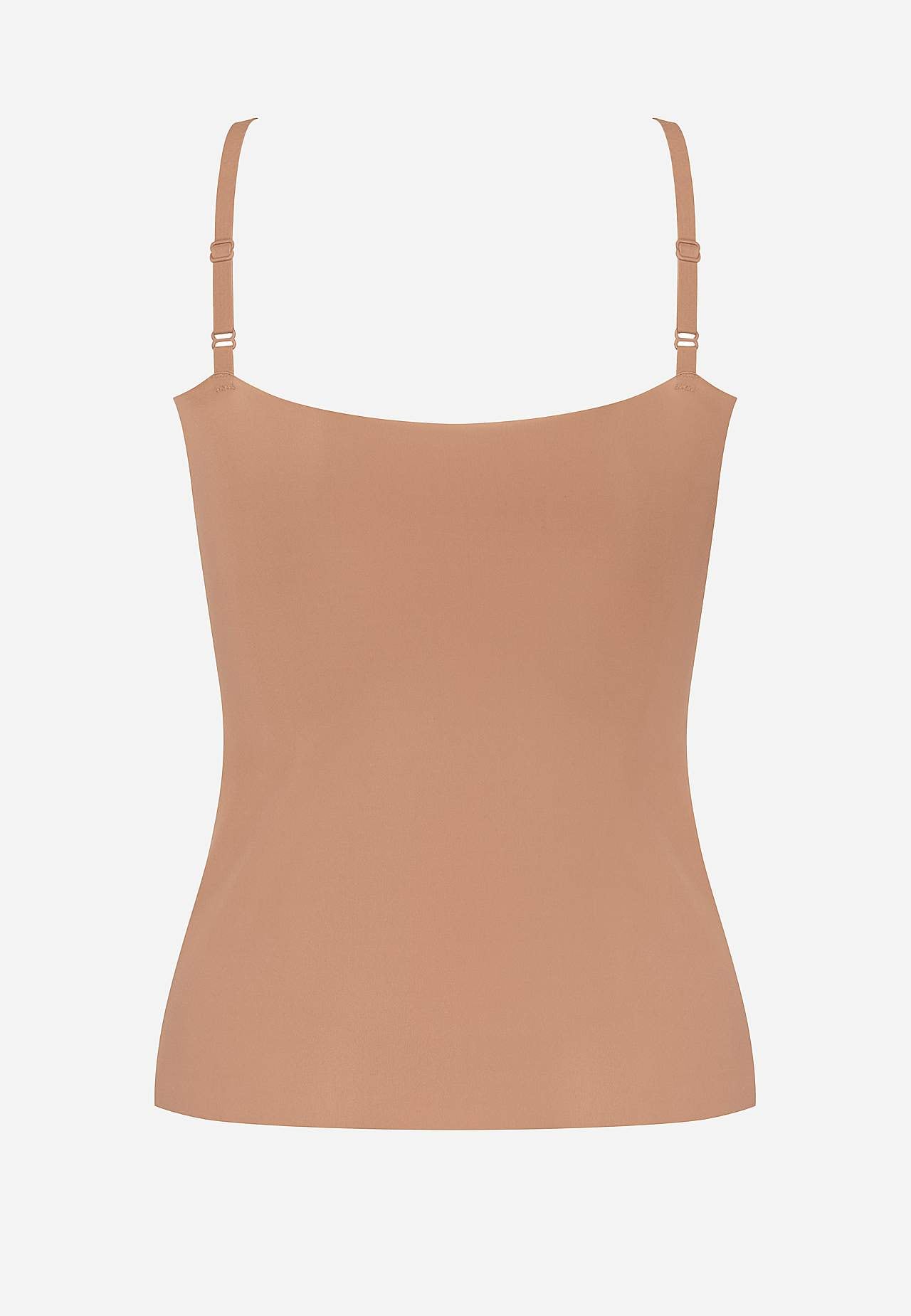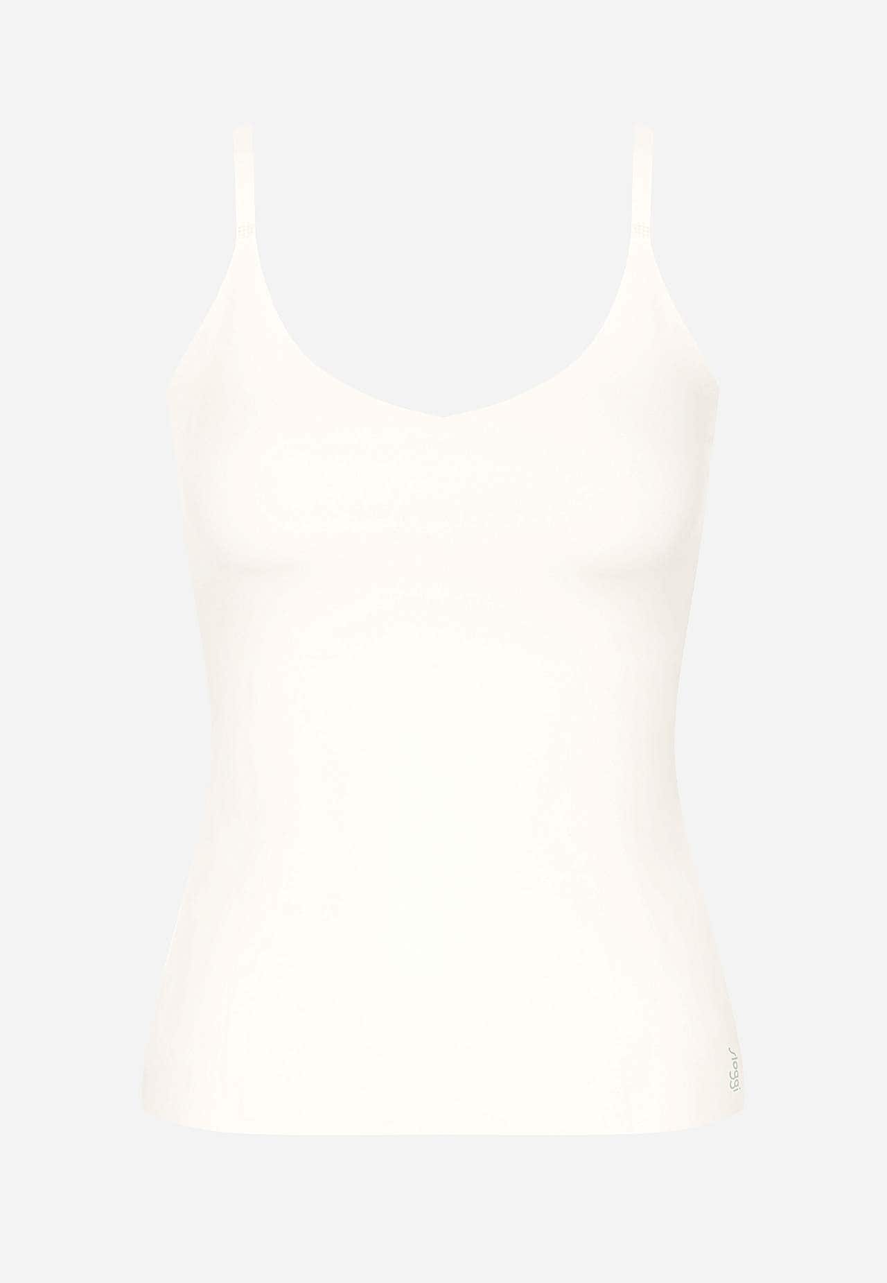 Top i blød, elastisk mikrofiber. Let, tyndt, hurtigtørrende materiale med god åndbarhed. Ikke synlig og samtidig behagelig under dit tøj. Perfekt til alle anledninger. Figursyet pasform. Justerbare, tynde skulderstropper. Sømløs, laserskåret, lige søm. Længde foran 34 cm + justerbar skulderrem.
