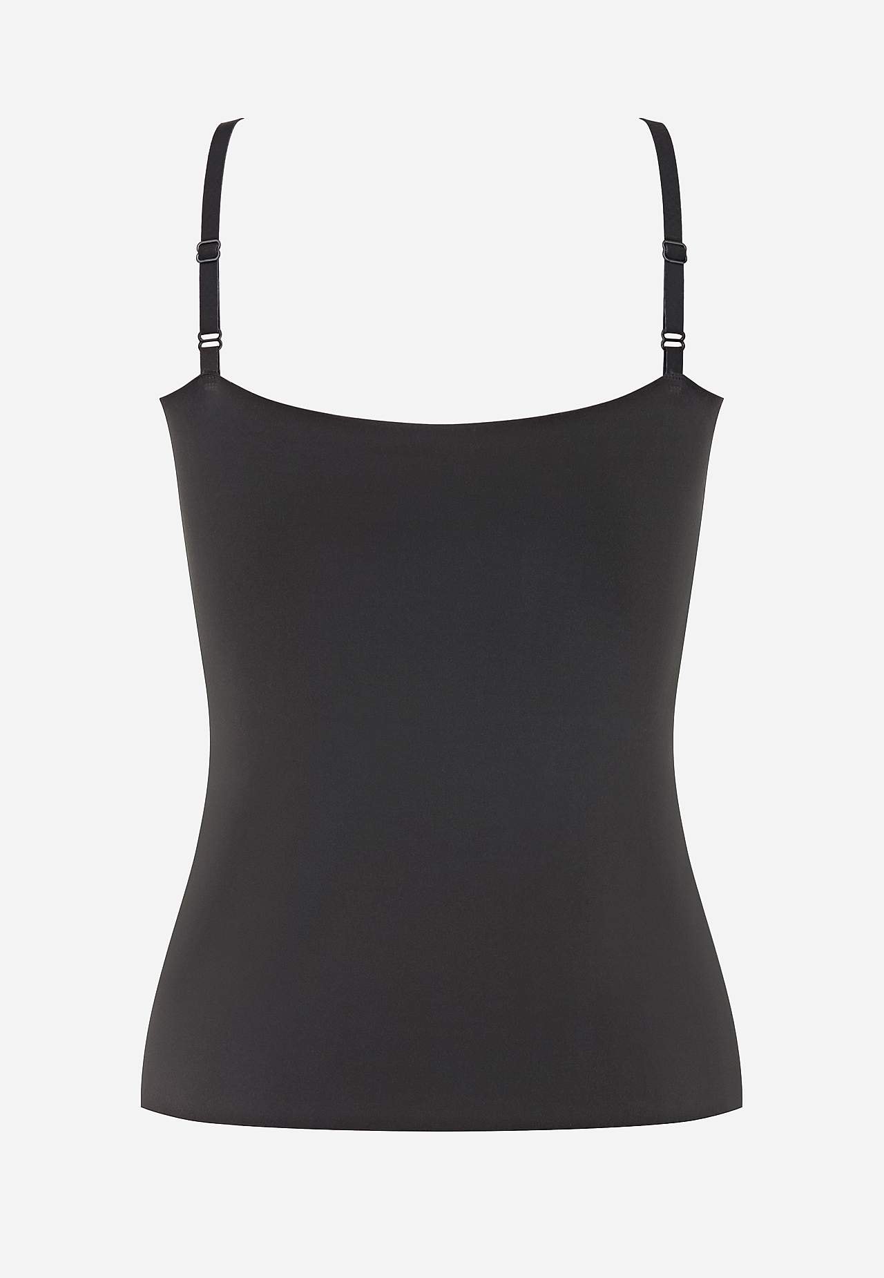 Top i blød, elastisk mikrofiber. Let, tyndt, hurtigtørrende materiale med god åndbarhed. Ikke synlig og samtidig behagelig under dit tøj. Perfekt til alle anledninger. Figursyet pasform. Justerbare, tynde skulderstropper. Sømløs, laserskåret, lige søm. Længde foran 34 cm + justerbar skulderrem.