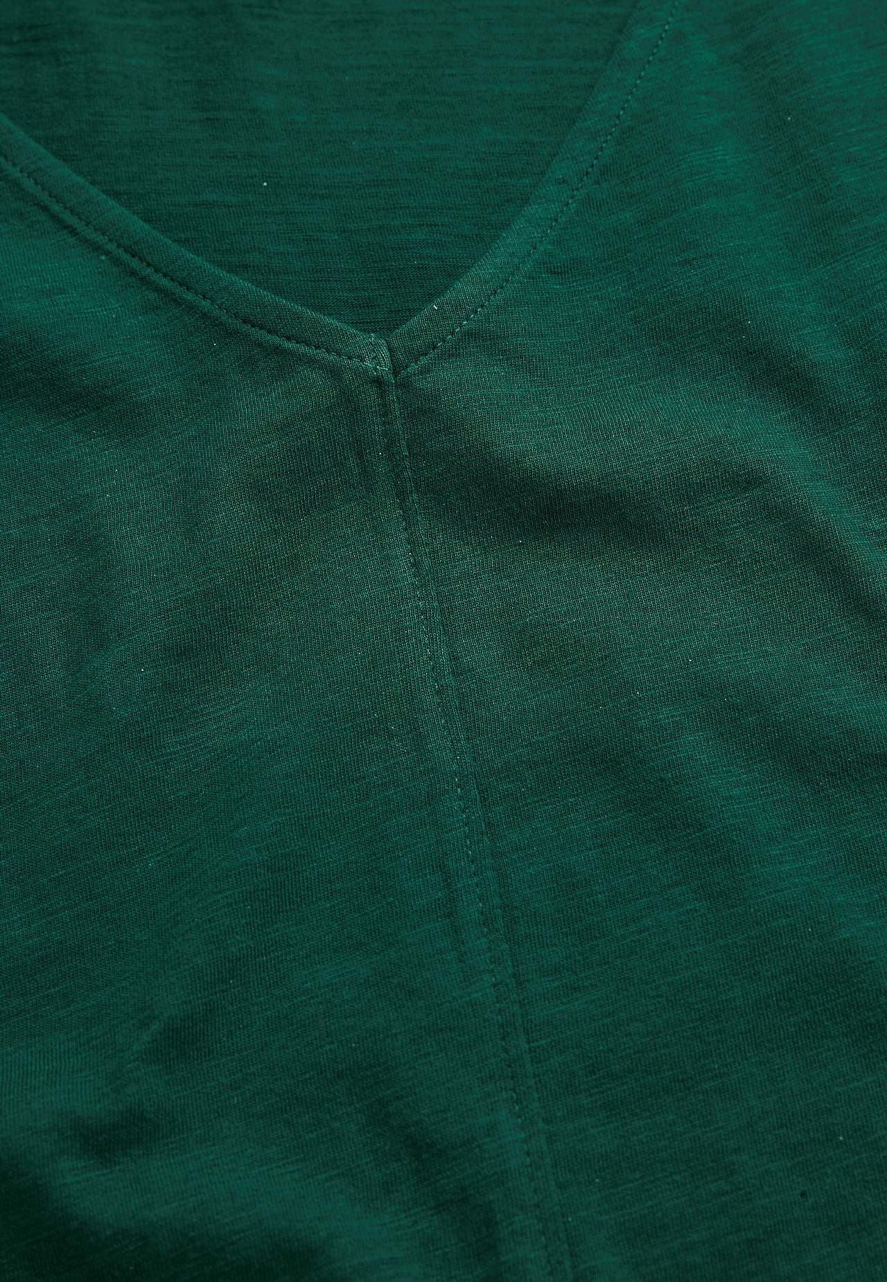Luftig slubkvalitet med let struktur. Lidt a-linjeformet pasform. V-udskæring både foran og bagpå. Dekorativ sting i midten foran. Ryglængden følger størrelsen, ca. 60-72 cm.