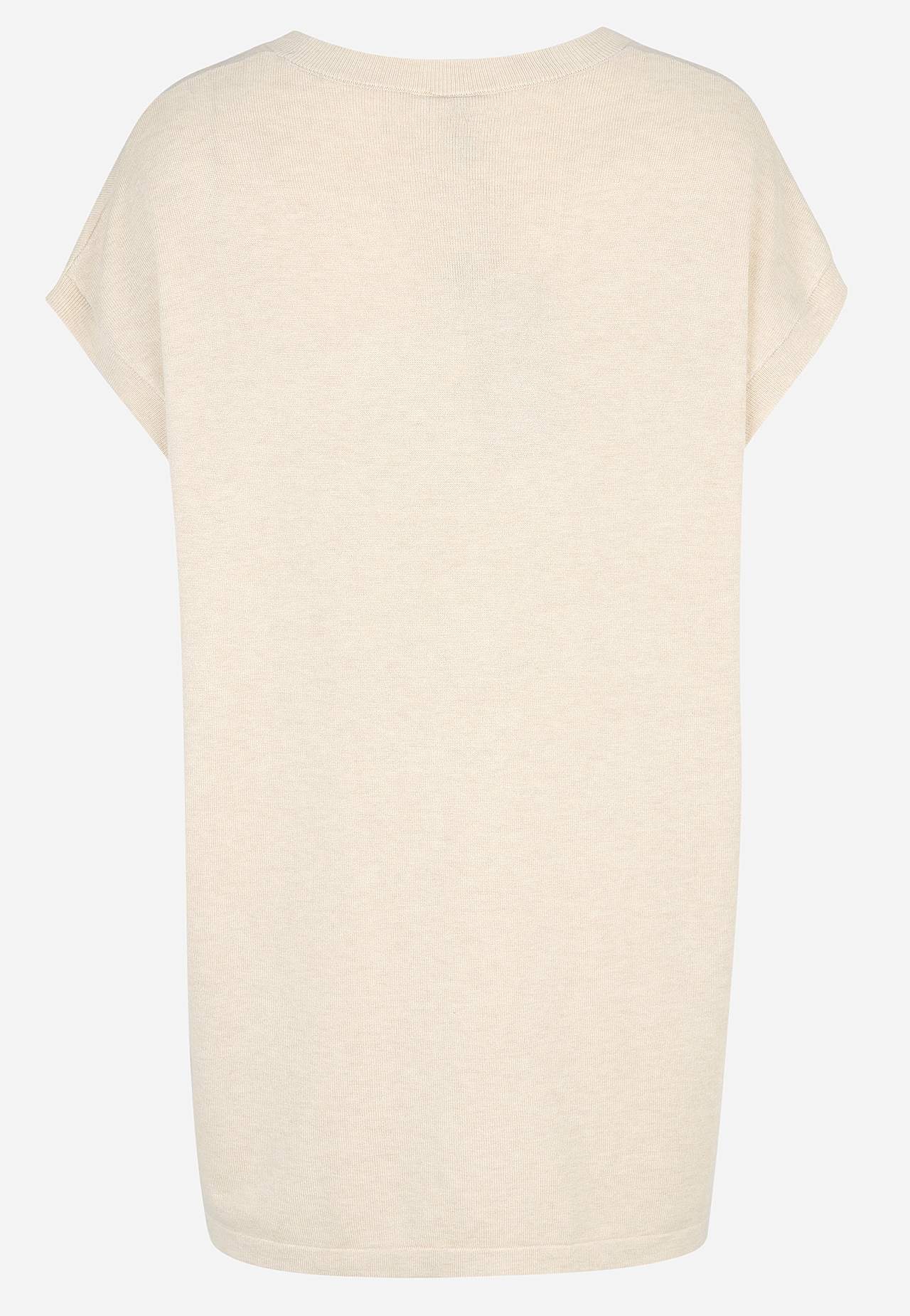 Fintstrikket, blød tunikatop med glans. Oversized pasform. V-udskåret, ribbet halsudskæring. Faconneret strikning. Kort kort ærme med ribmanchet. Fuldt formstrikkede ærmegab. Lige søm. Længde fra skulder ca. 79 cm i størrelse S (38).
