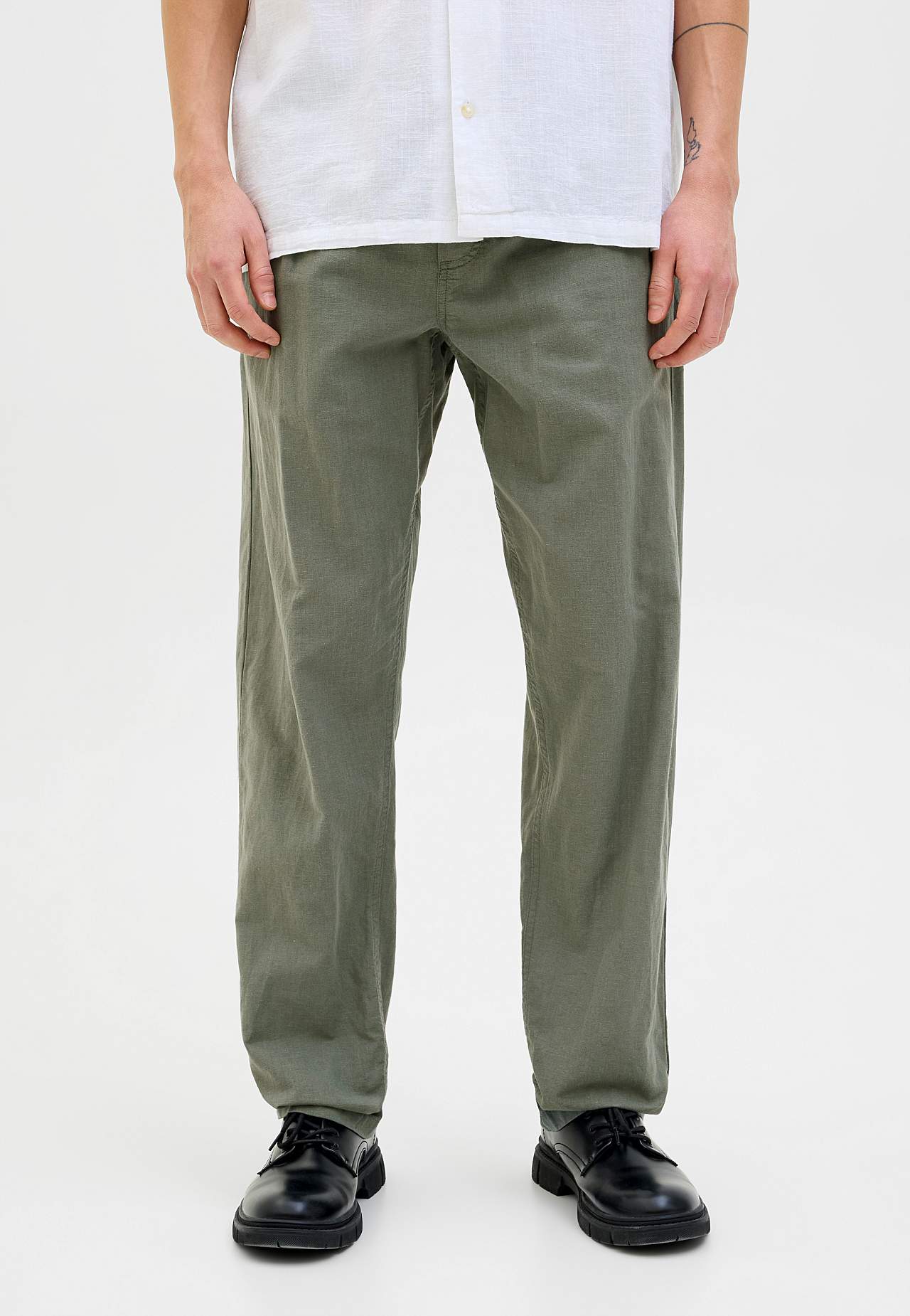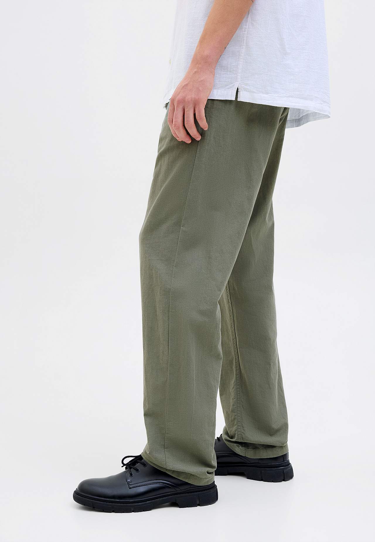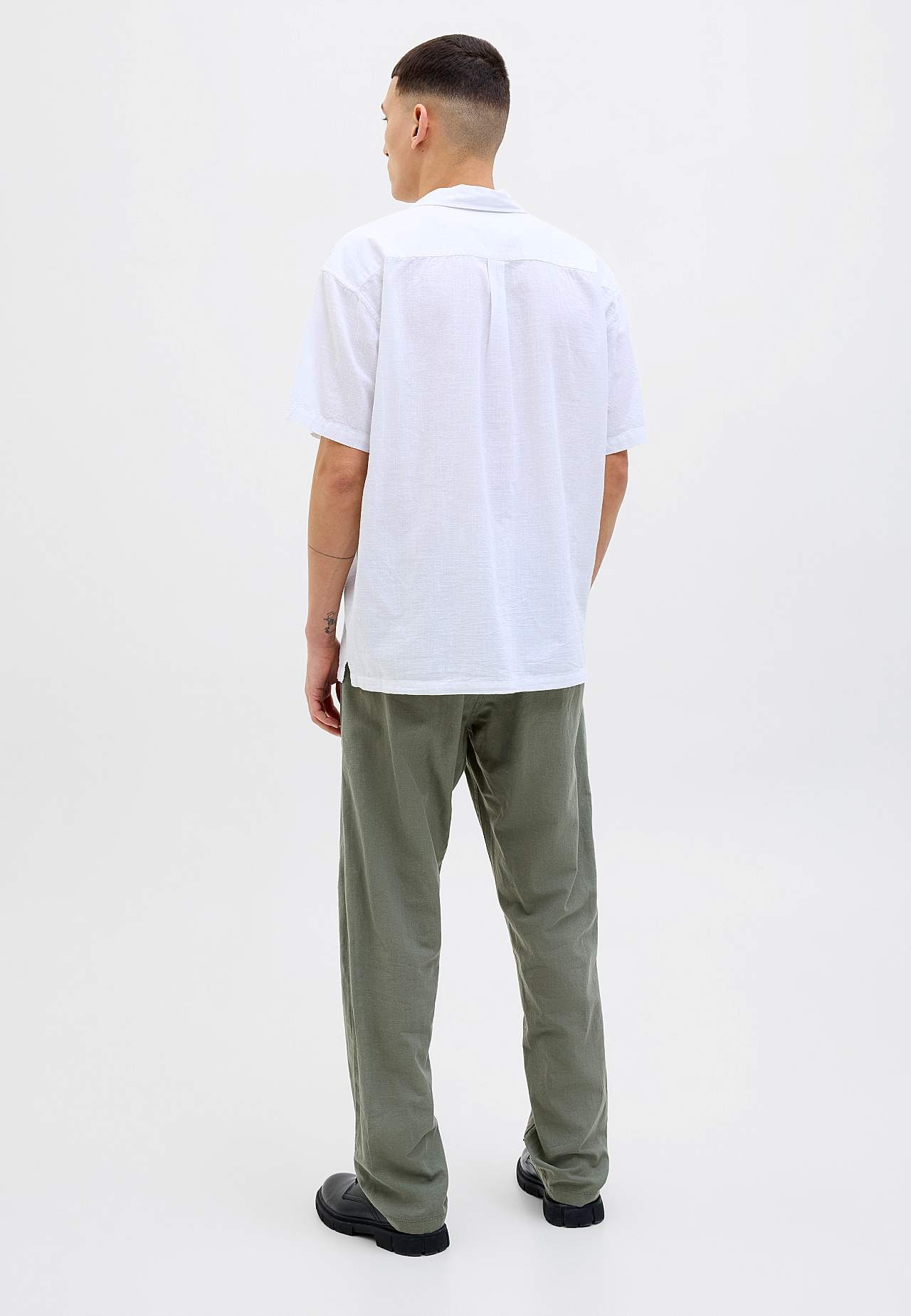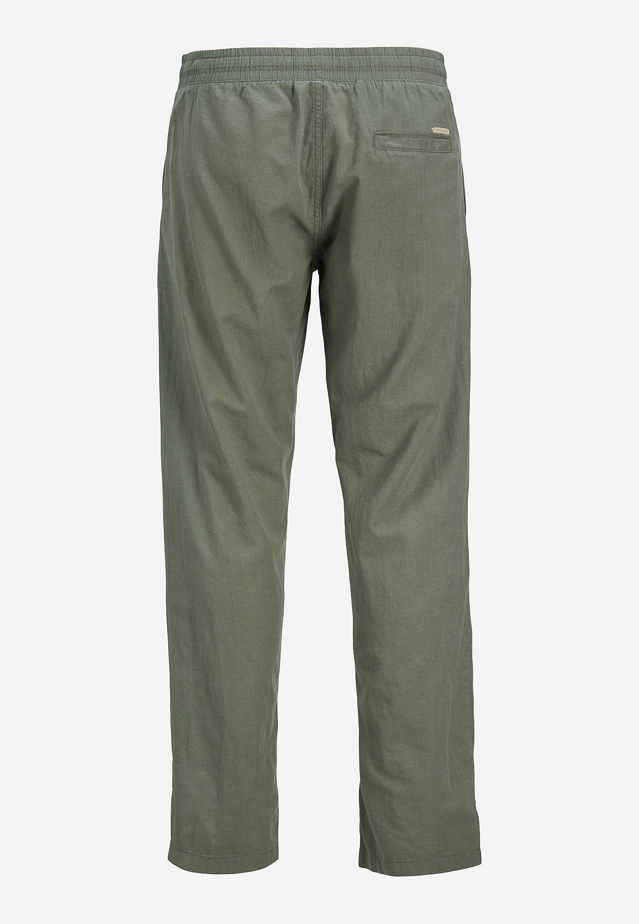 Vævede bukser i kølende, lidt tyndere linnedmix. Afslappet pasform. Træk-på model midten af taljen. Talje med bred elastik og træksnøre. Skrå forlommer. En paspoleret baglomme. Indvendig benlængde ca. 78 cm i størrelse L.