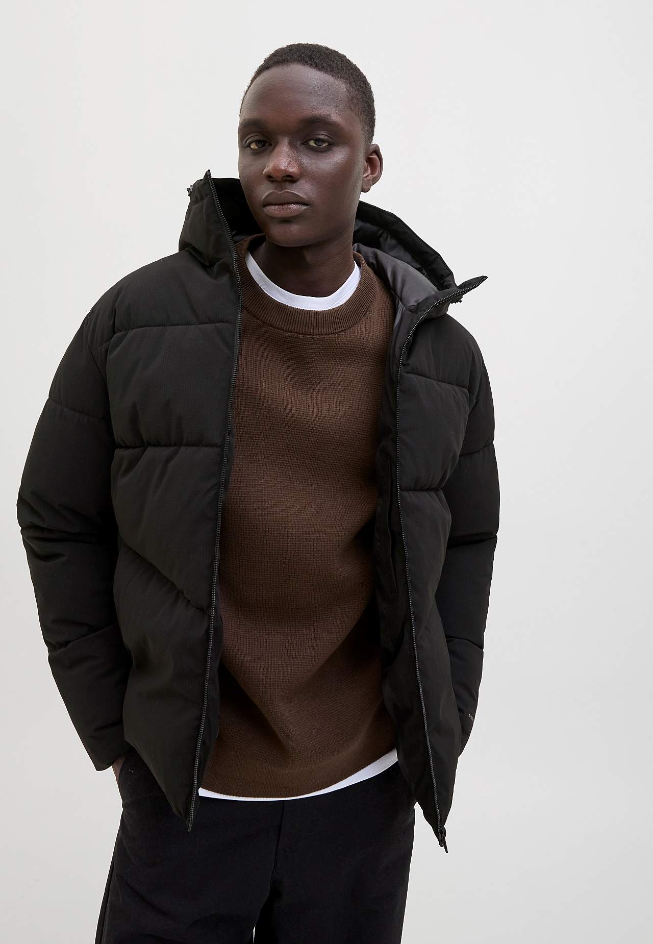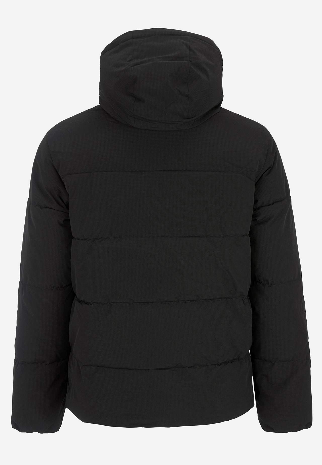 Varmt foret pufferjakke. Ydermateriale med mat overflade. Luftigt, blødt, genanvendt polyesterfyld. Uformel, bekvem pasform. Foret, syet hætte med træksnøre. Lukning med sort lynlås. Sidelommer. Inderlomme med velcrolukning. Skjult elastik ved manchetterne. Logo ved ærmeafslutningen. Længde fra skulder ca. 70 cm i størrelse... Læs mere