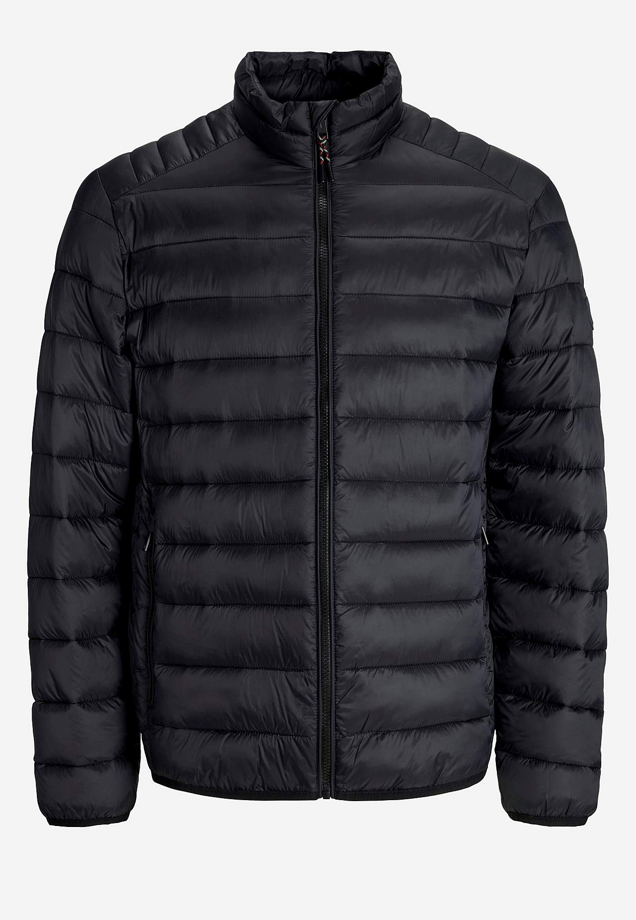 Nyttig, quiltet letvægtsjakke. Vandafvisende ydermateriale. Let polstring. Rummelig model. Kort stående krave. Lynlåslukning. Lange ærmer med elastisk rib. Store forlommer. Elastisk søm. Logodetalje på ærmet. Længde fra skulder ca. 72 cm i størrelse L.