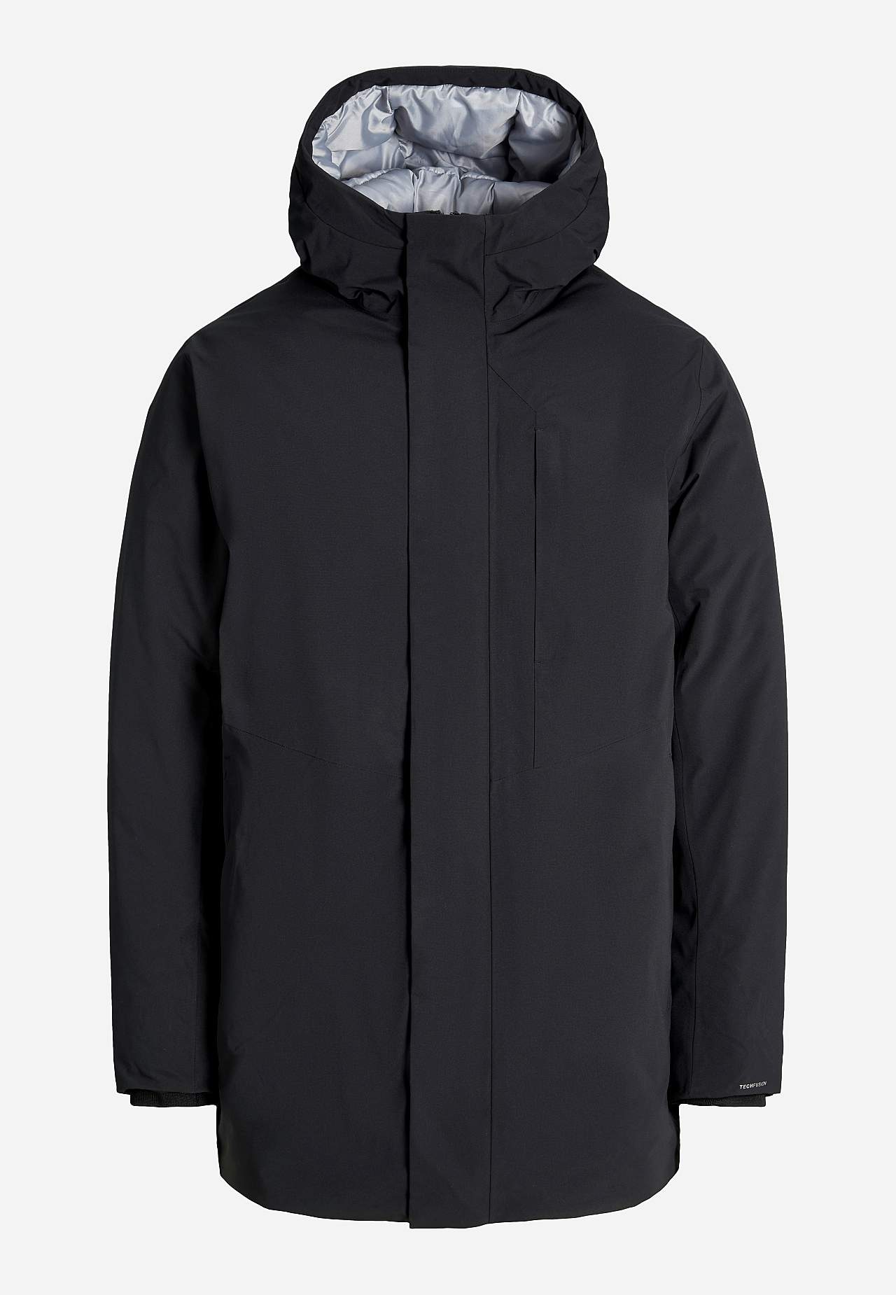 Vind- og vandtæt parka perfekt til den kolde årstid. Isolerende, varmt foret jakke. Normal pasform. Foret, fast hætte med justérbar træksnøre. Knapstolpe med skjult lynlås og trykknapper. To skjulte sidelommer. Skjult brystlomme. Inderlomme. Lige ærmer med ribmanchet ved manchetterne. Længde fra skulder ca. 81 cm i størrels... Læs mere