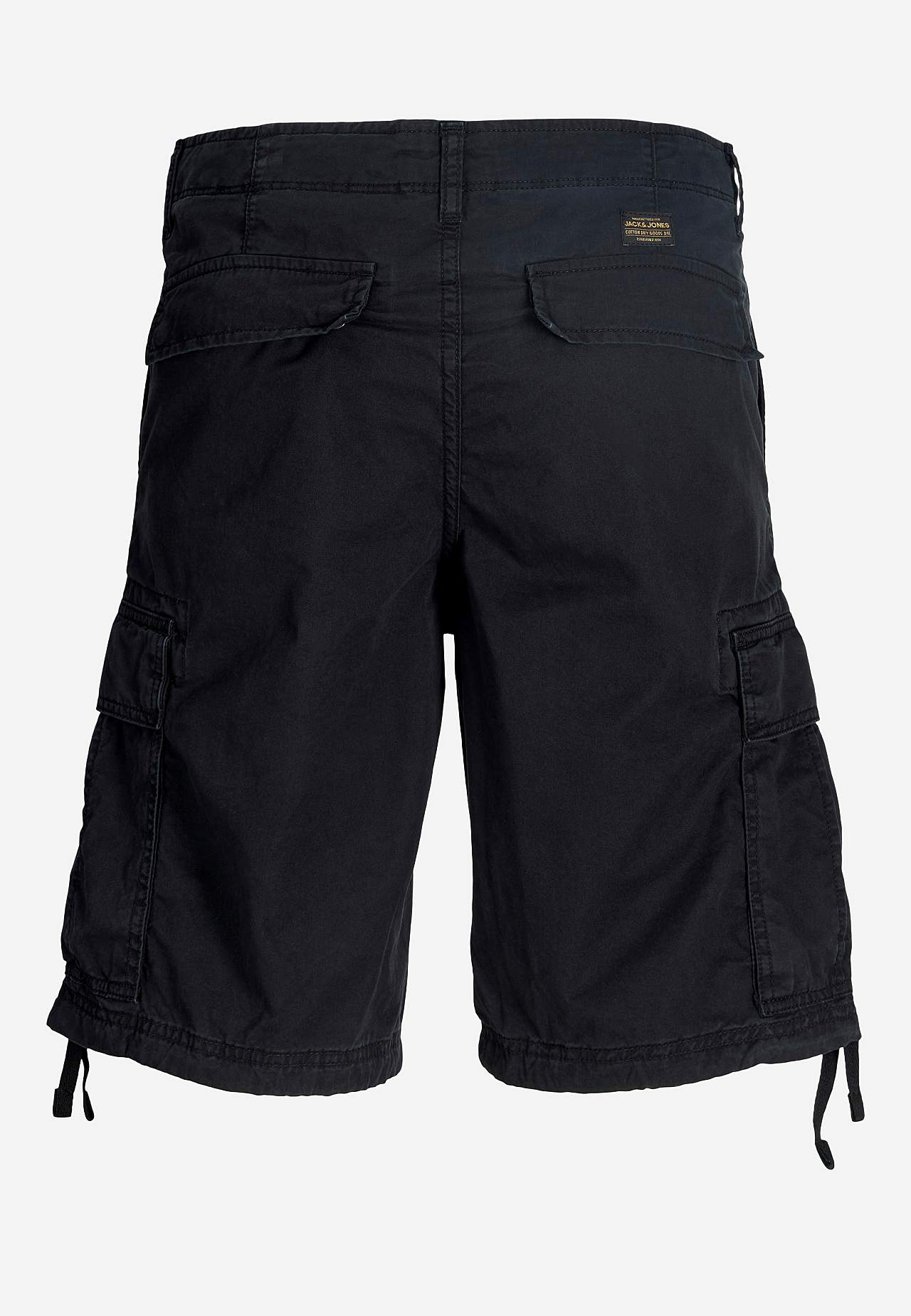 Vævet shorts i bomuldskvalitet. Normal talje med gylp med lynlås og bæltestropper. Sidelommer. Benlommer med klap. Paspolerede baglommer med klap og trykknapslukning. Bindbar snøre nederst. Indvendig benlængde ca. 28 cm i størrelse 46.