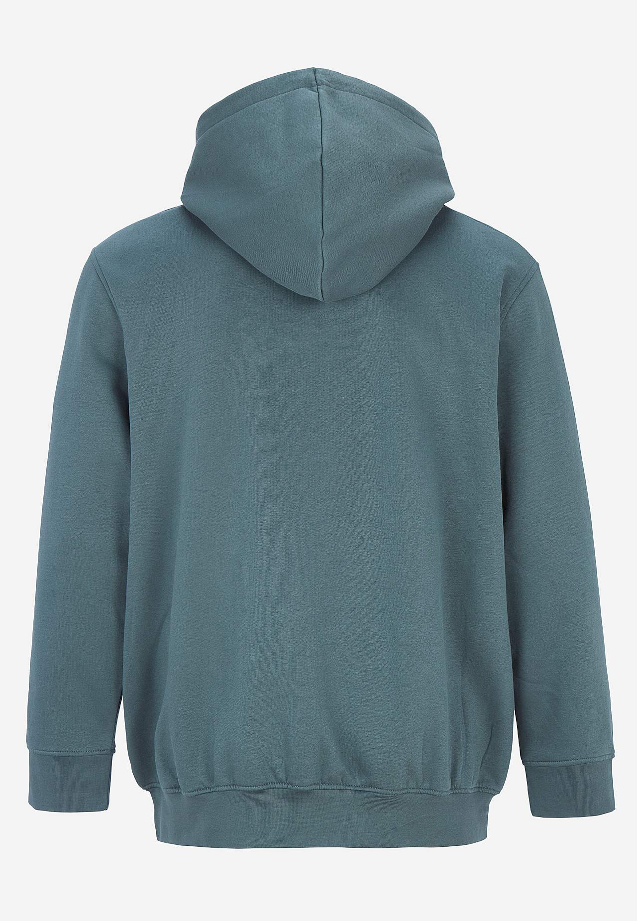 Blød kvalitet med børstet for. Rummelig pasform. Stor, fin hætte med træksnøre. Lukning med lynlås. Rummelige kængurufrontlommer. Lille tryk på brystet. Lange ærmer med ribmanchet ved manchetterne. Ribmanchet ved nederste kant. Længde fra skulder ca. 80 cm i størrelse 3XL.