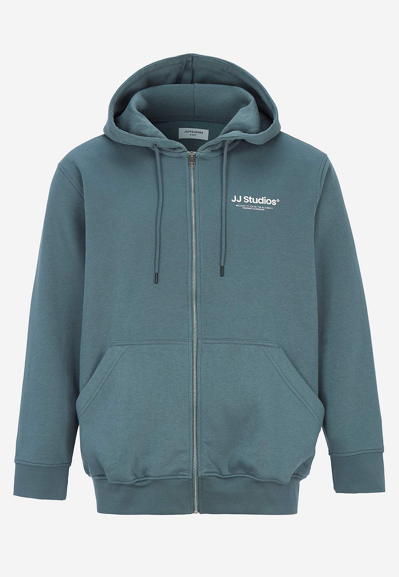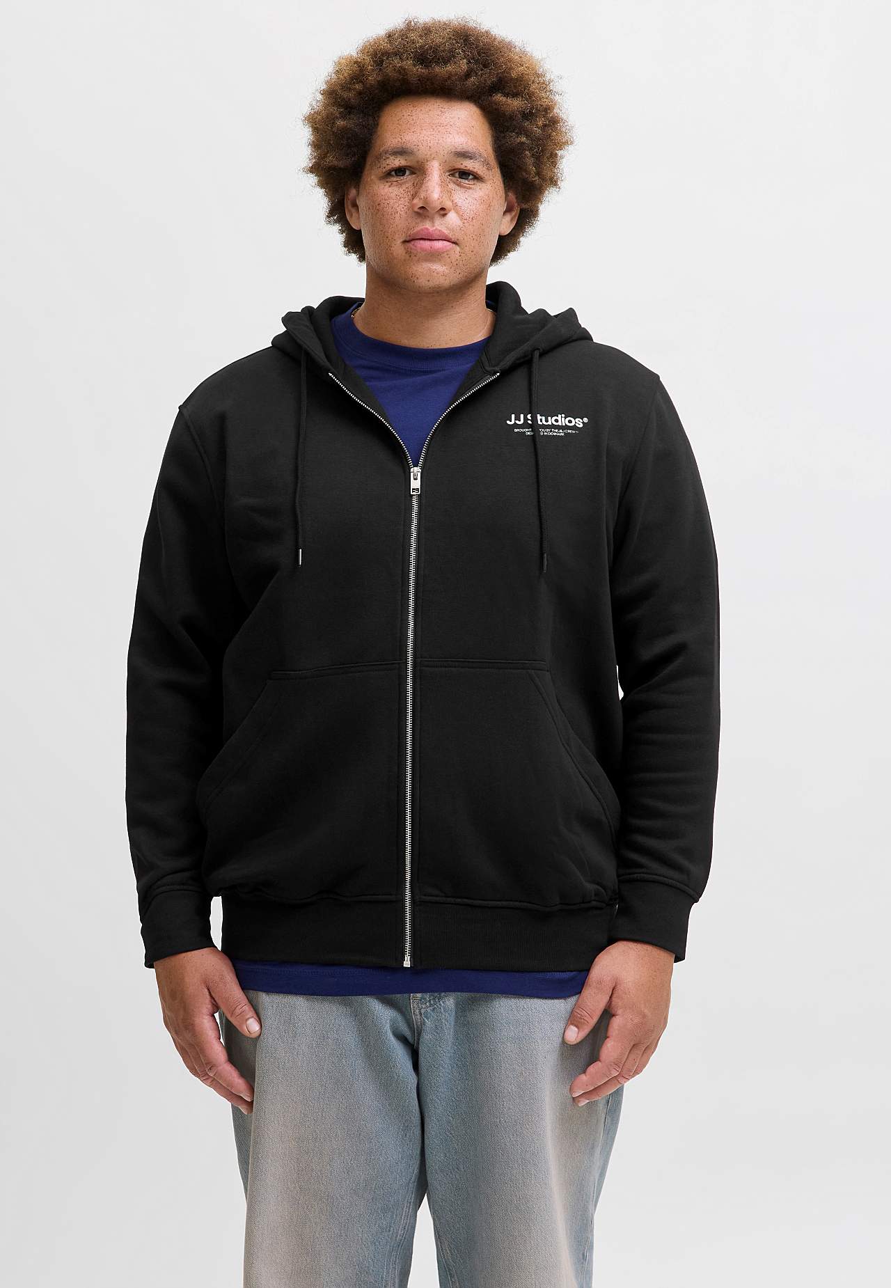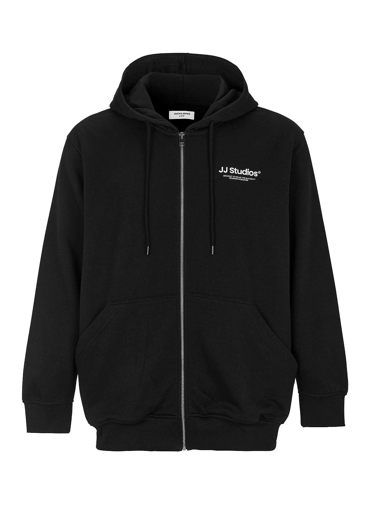 Blød kvalitet med børstet for. Rummelig pasform. Stor, fin hætte med træksnøre. Lukning med lynlås. Rummelige kængurufrontlommer. Lille tryk på brystet. Lange ærmer med ribmanchet ved manchetterne. Ribmanchet ved nederste kant. Længde fra skulder ca. 80 cm i størrelse 3XL.