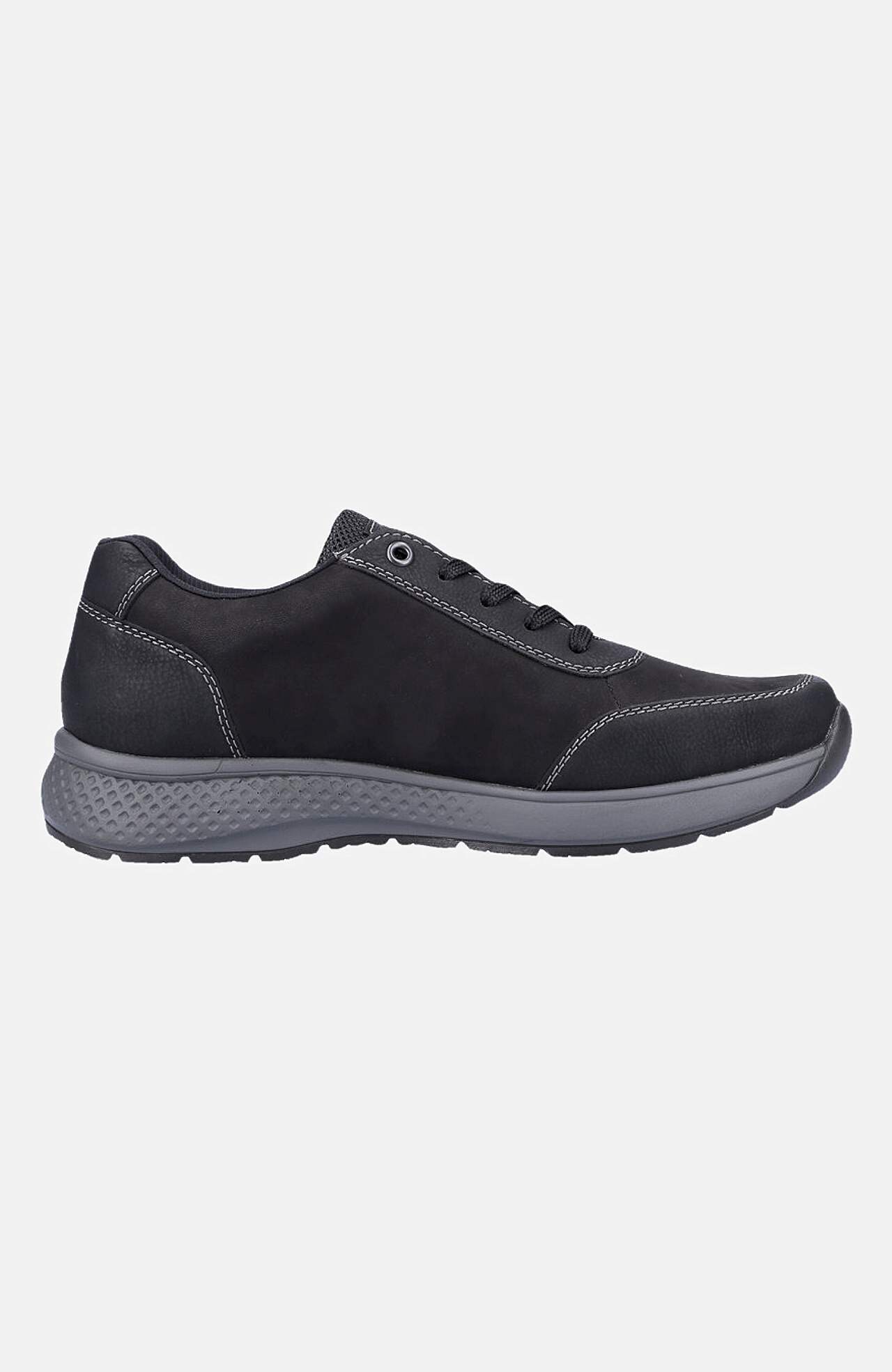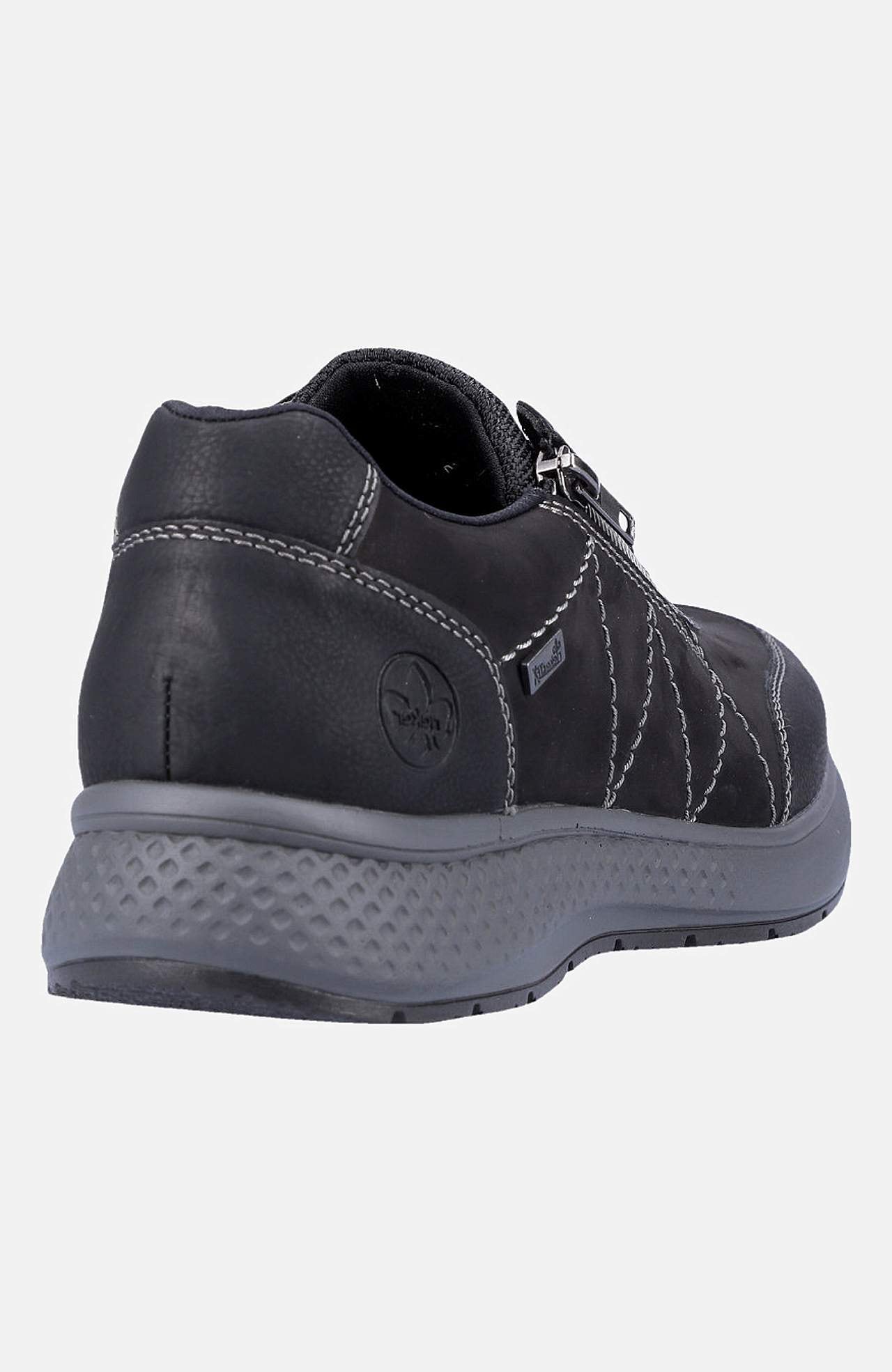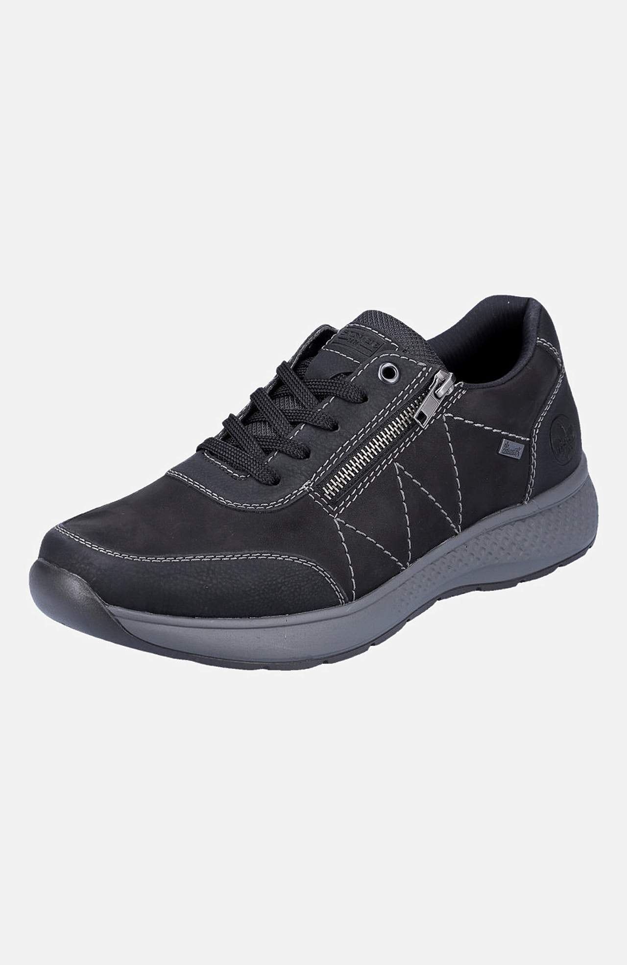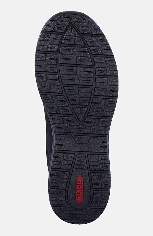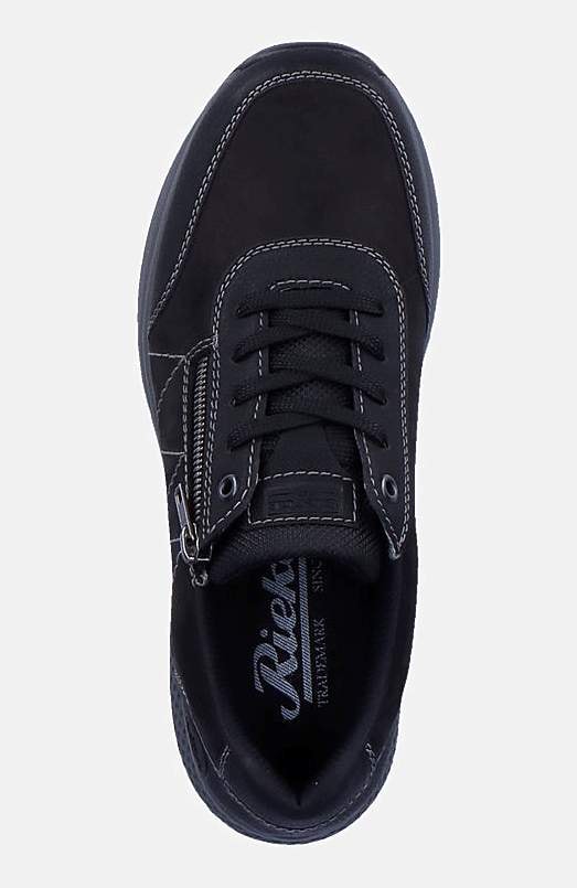Sporty hverdagssko med snøring. Praktisk lynlås som kan åbnes. Komfortabel, foret hælkappe. RiekerTEX:. Rieker Antistress:. Overside i læder og kunststof. For i tekstil. Indersål i tekstil. Ydersål i kunststof. RiekerTEX