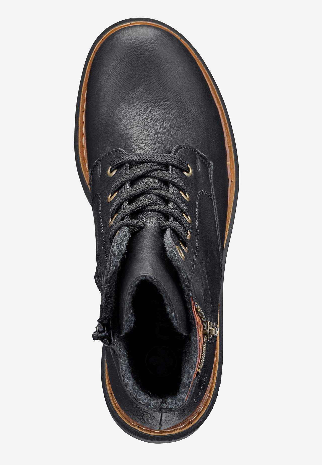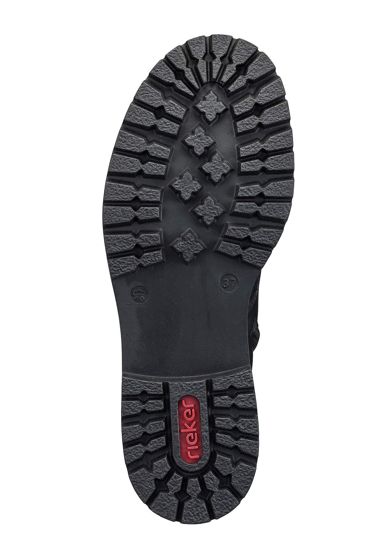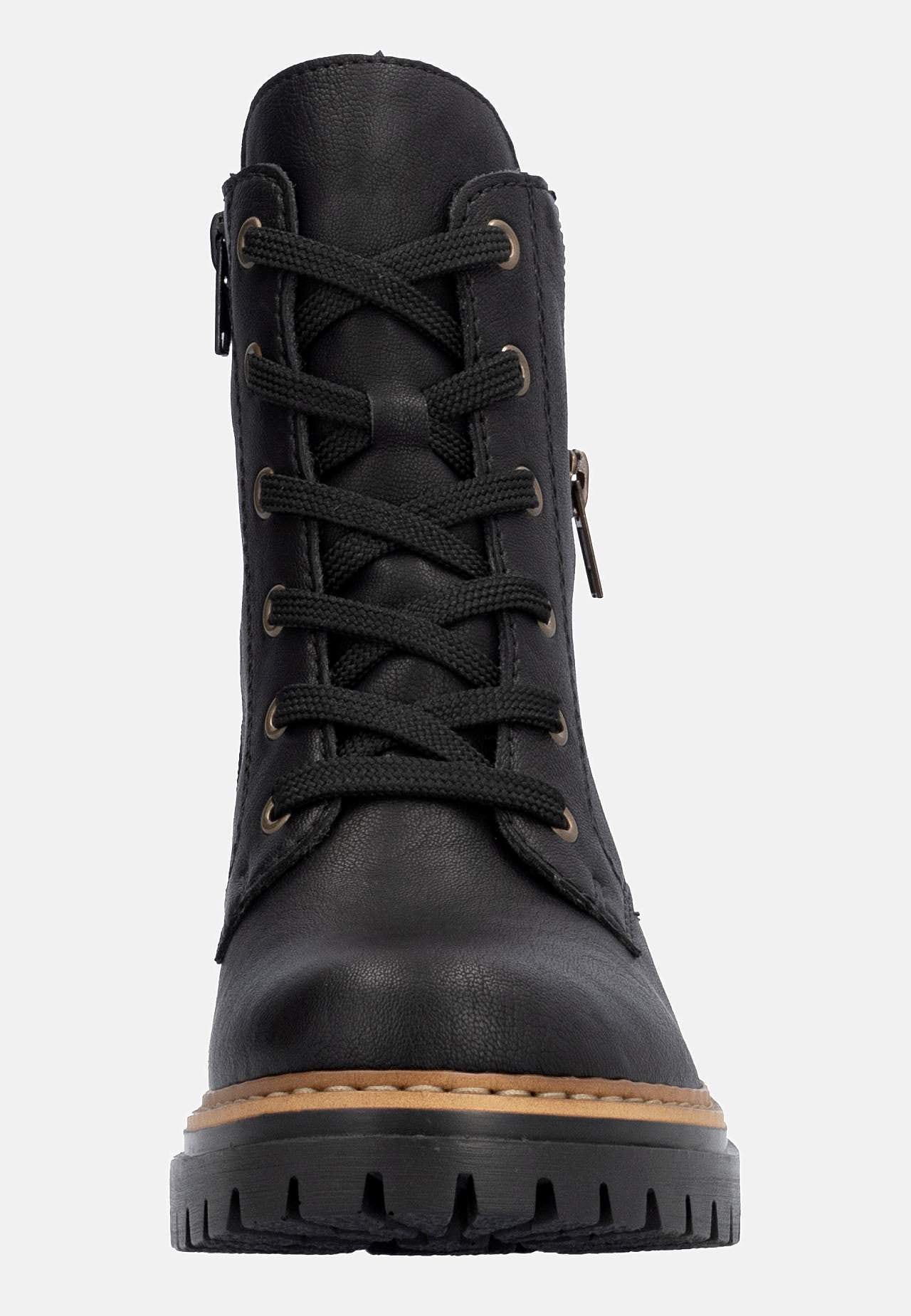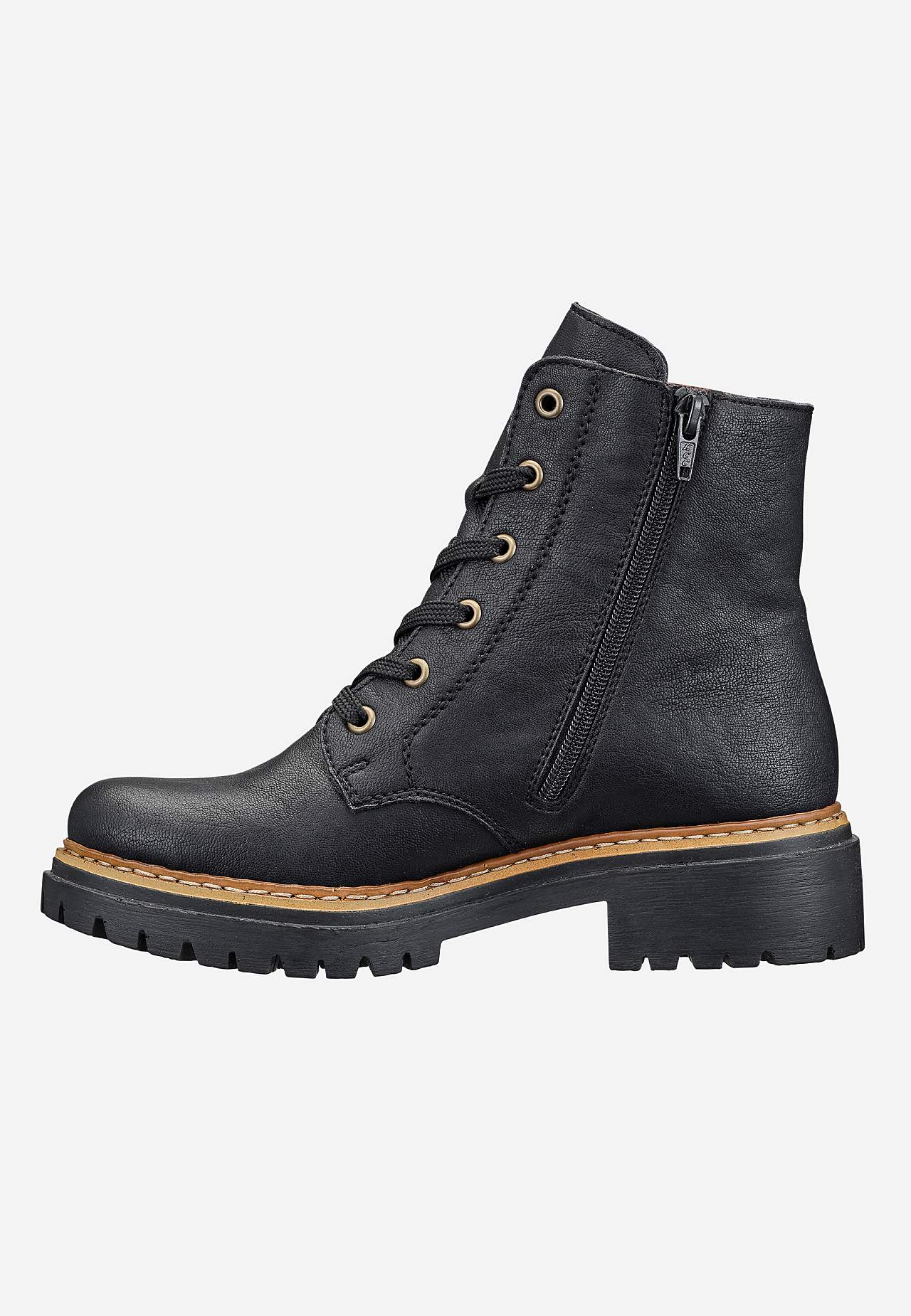 Varmt foret ankelstøvle. Leopard kile på ydersiden med dekorativ lynlås. Lynlås på indersiden af foden let at tage af og på. Justerbar skaftvidde med snøring. Filtet, varmende inderfor. Filtet, blød indersål. Robust ydersål med godt greb. Rieker Antistress: Se nedenfor. Overside i kunststof. For i tekstil. Indersål i teksti... Læs mere