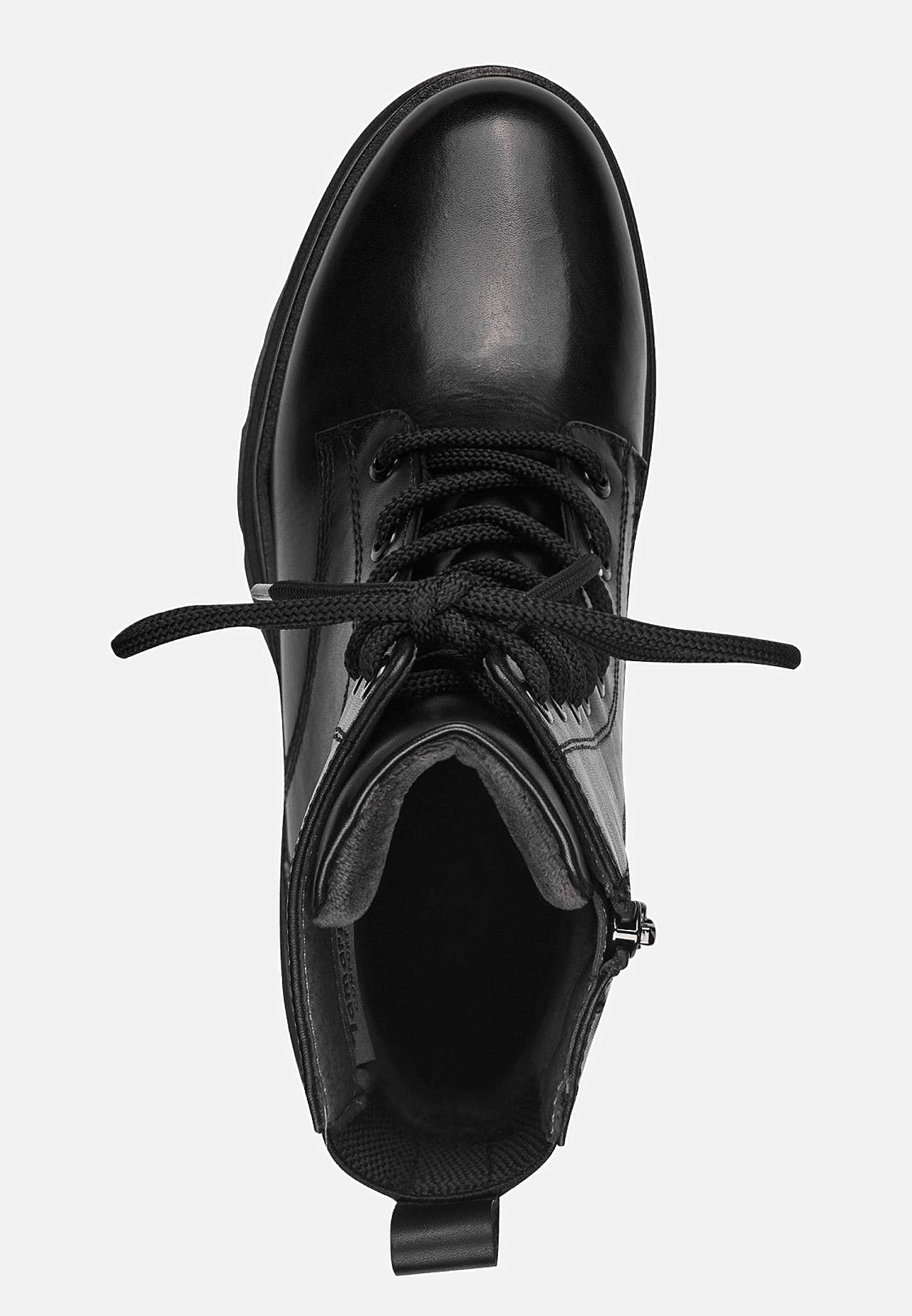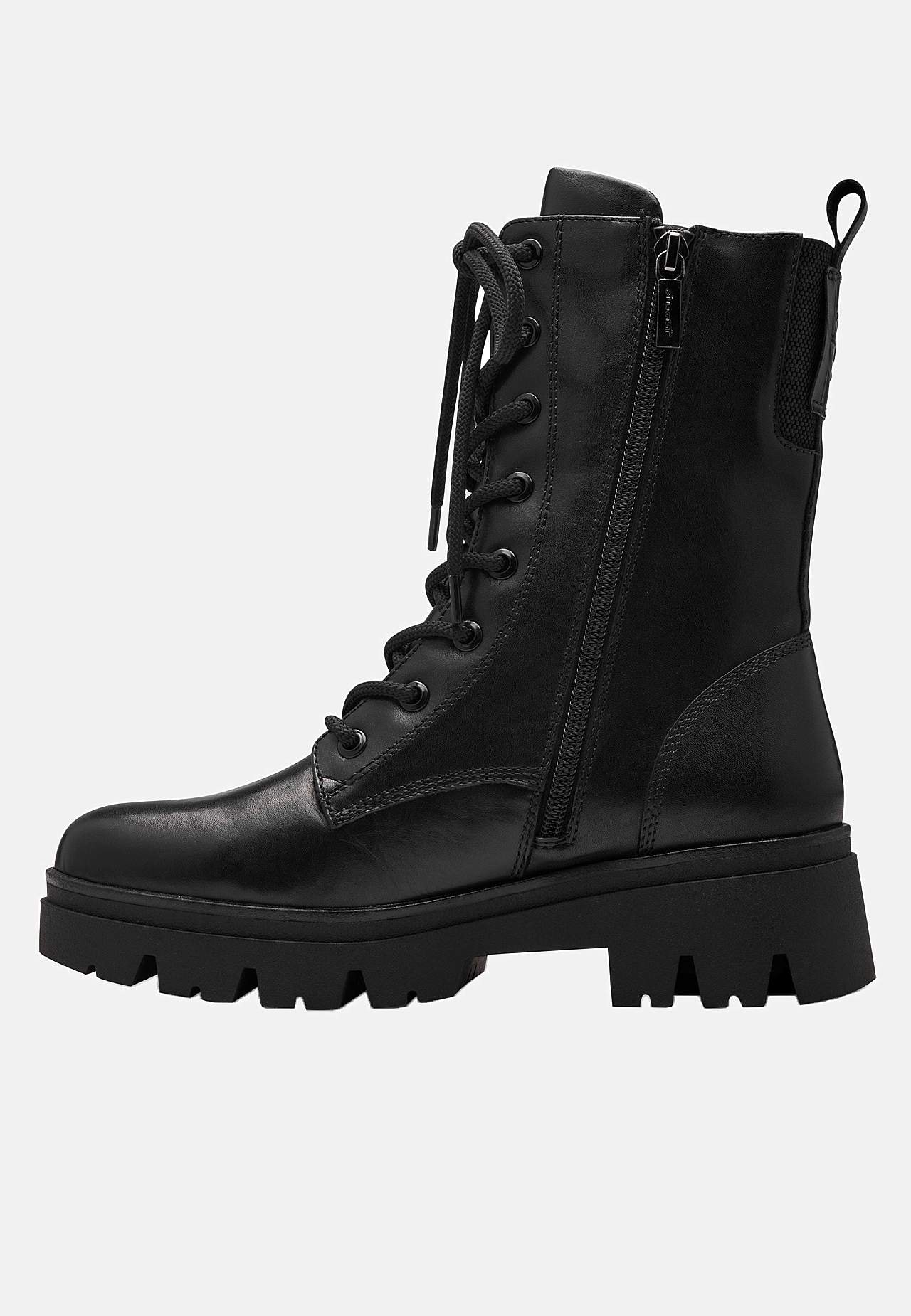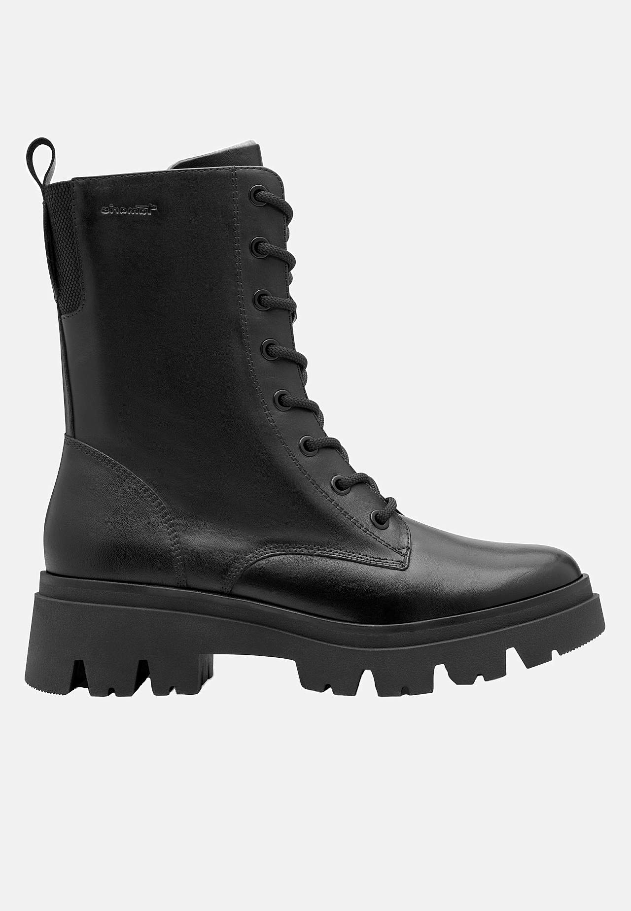 Komfortabel ankelstøvle i læder. Model med snøring og lynlås let at tage af og på. Tamp bagpå. Blød fleeceforing. Let foret inderside. Aftagelig indersål. Lidt kraftigere, stabil sål. Overside i læder og kunststof. For i tekstil. Indersål i tekstil. Ydersål i kunststof.