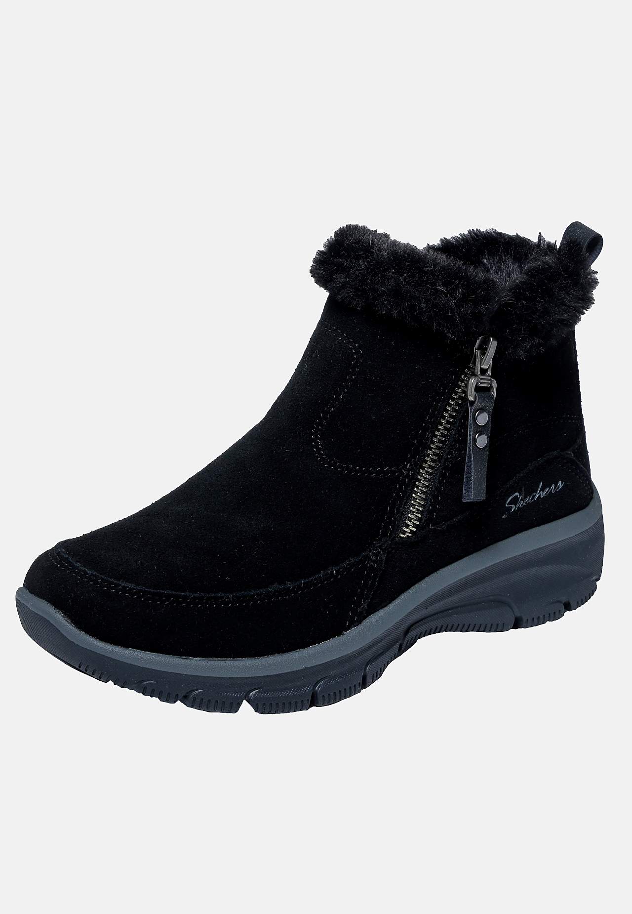 Varmt foret, let vinterstøvle i ruskind. Pelsimitation på toppen. Blødt, varmt inderfor. Lynlås på ydersiden. Elastikkile på indersiden. Logodetalje på ydersiden. Tamp bagpå. Foret indersål. Fleksibel ydersål med godt greb. Skechers Air-Cooled Memory foam:: Se nedenfor. Skechers Relaxed fit: Se nedenfor. Overside i læder. F... Læs mere
