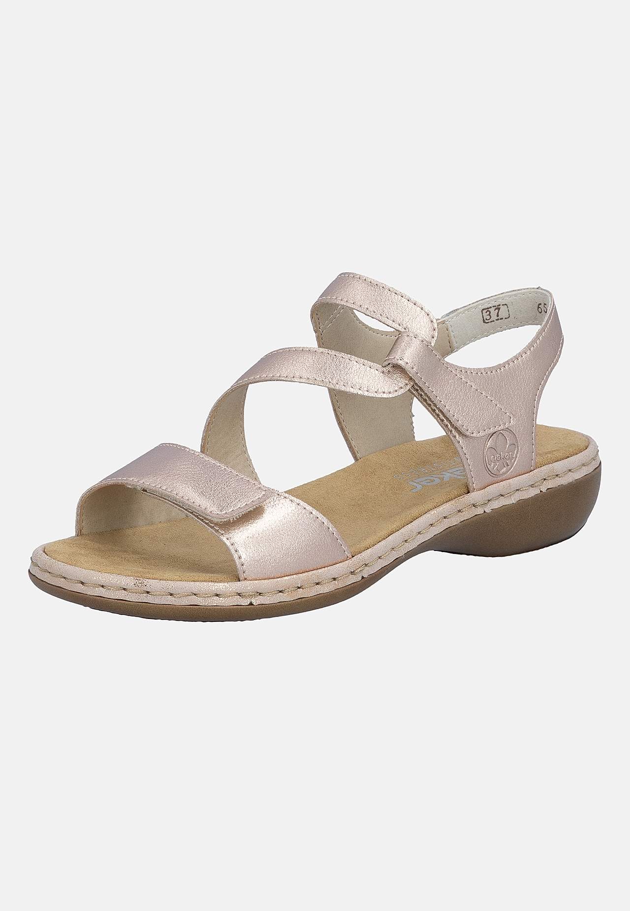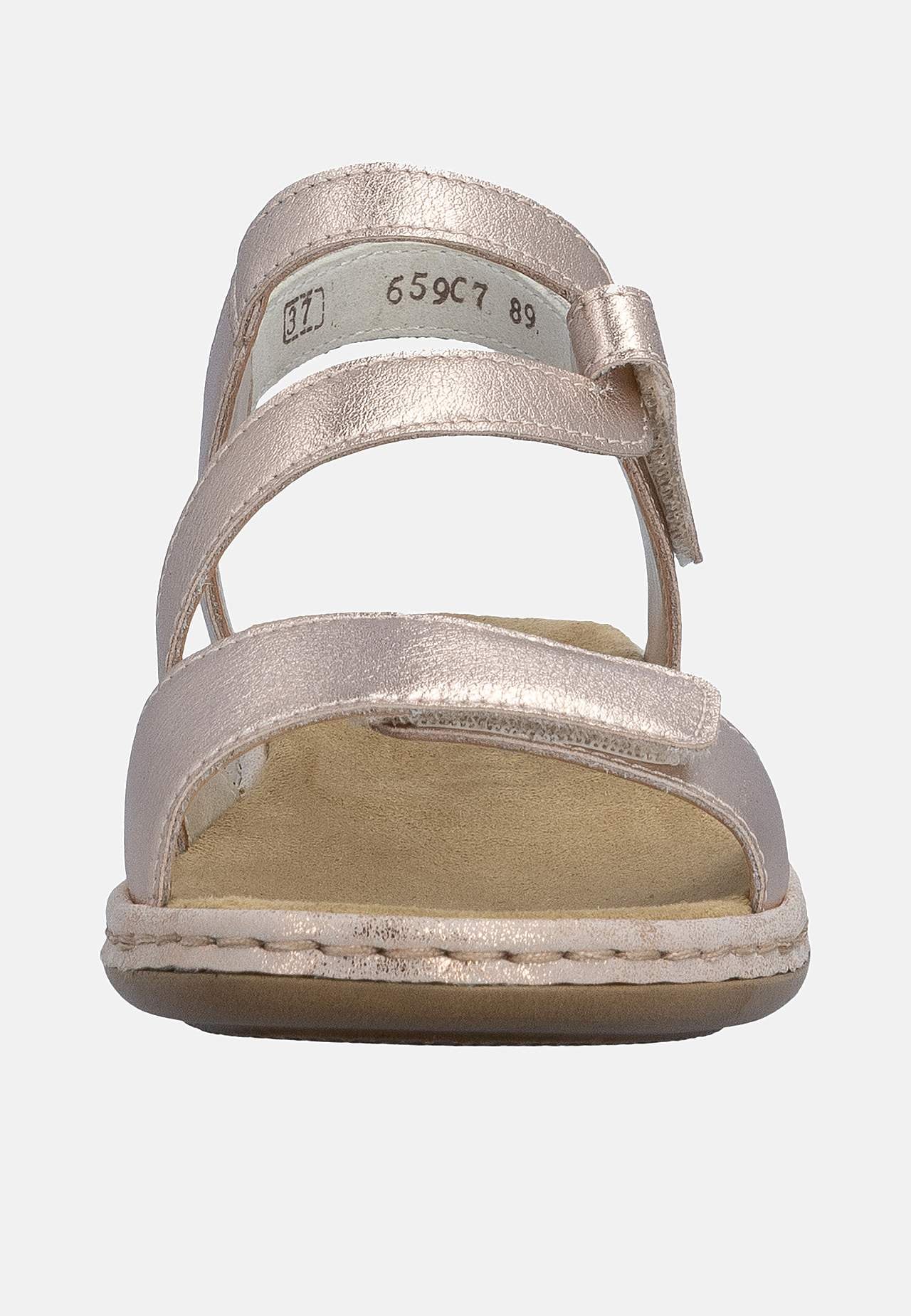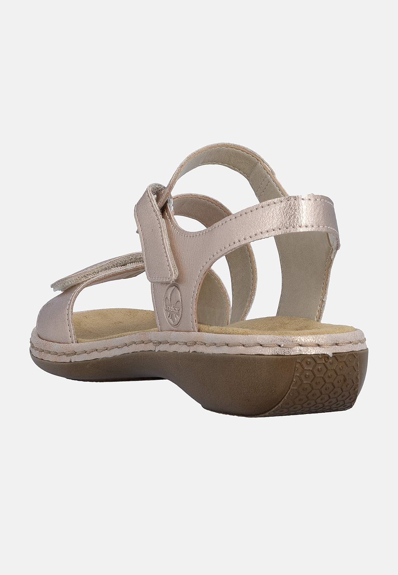 Stilfulde remme med elegant design. Skjult, justerbar velcrolukning ved håndleddet og foran. Blød, komfortabel indersål. Fast ydersål. Antistress: Se nedenfor. Overside i læder. For i kunststof. Indersål i tekstil. Ydersål i kunststof. Antistress