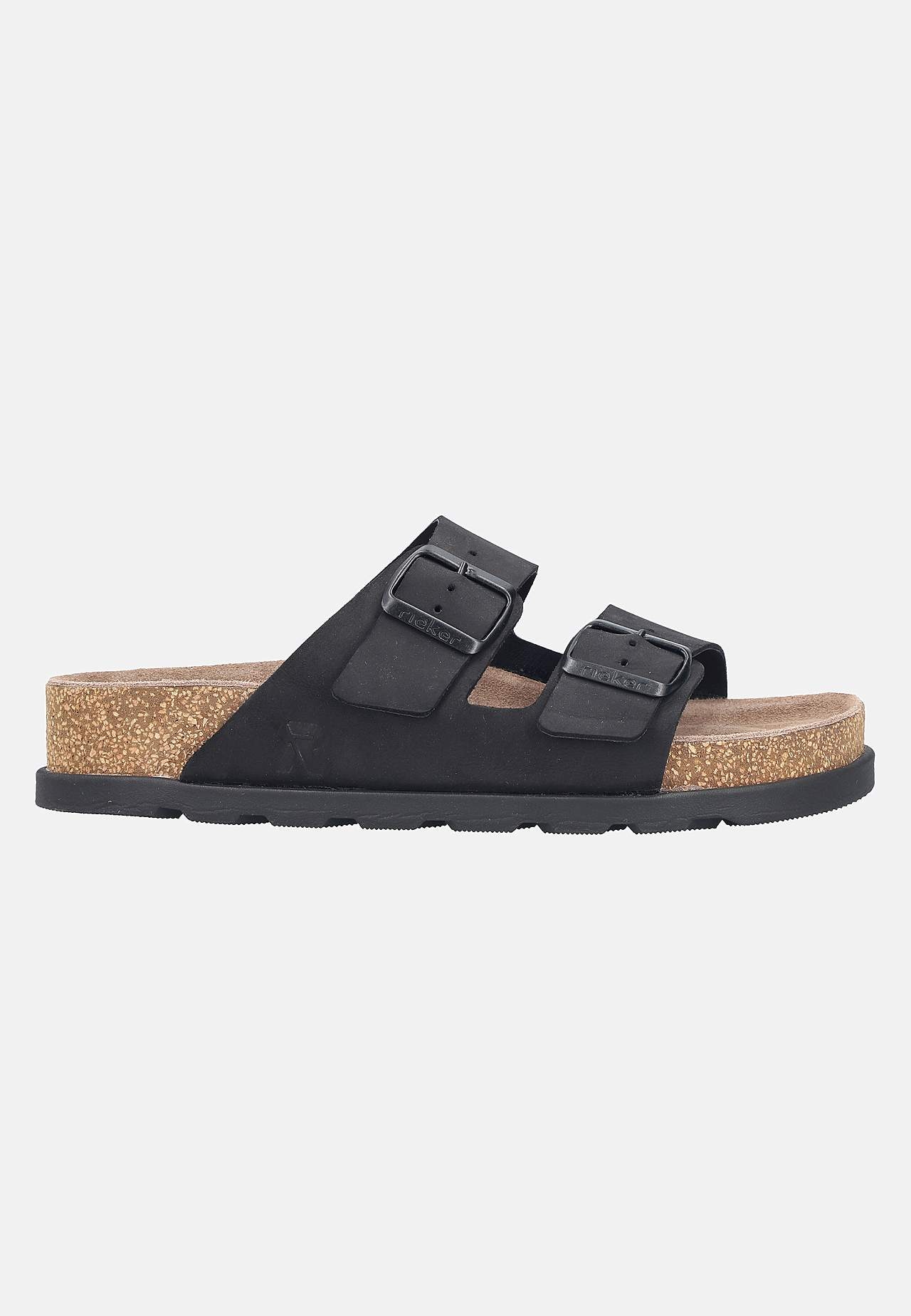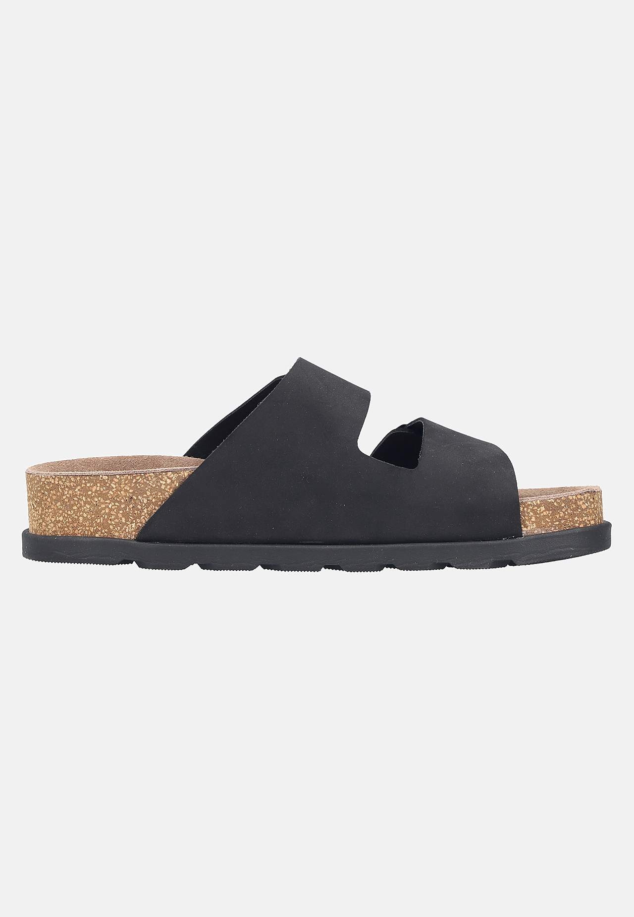 Lædersandal med slippers. Justerbare remme for den bedste pasform. Indersål med støtte for bedste komfort. Korkmønstret sål. Overside i læder. For i læder og kunststof. Indersål i læder. Ydersål i kunststof.