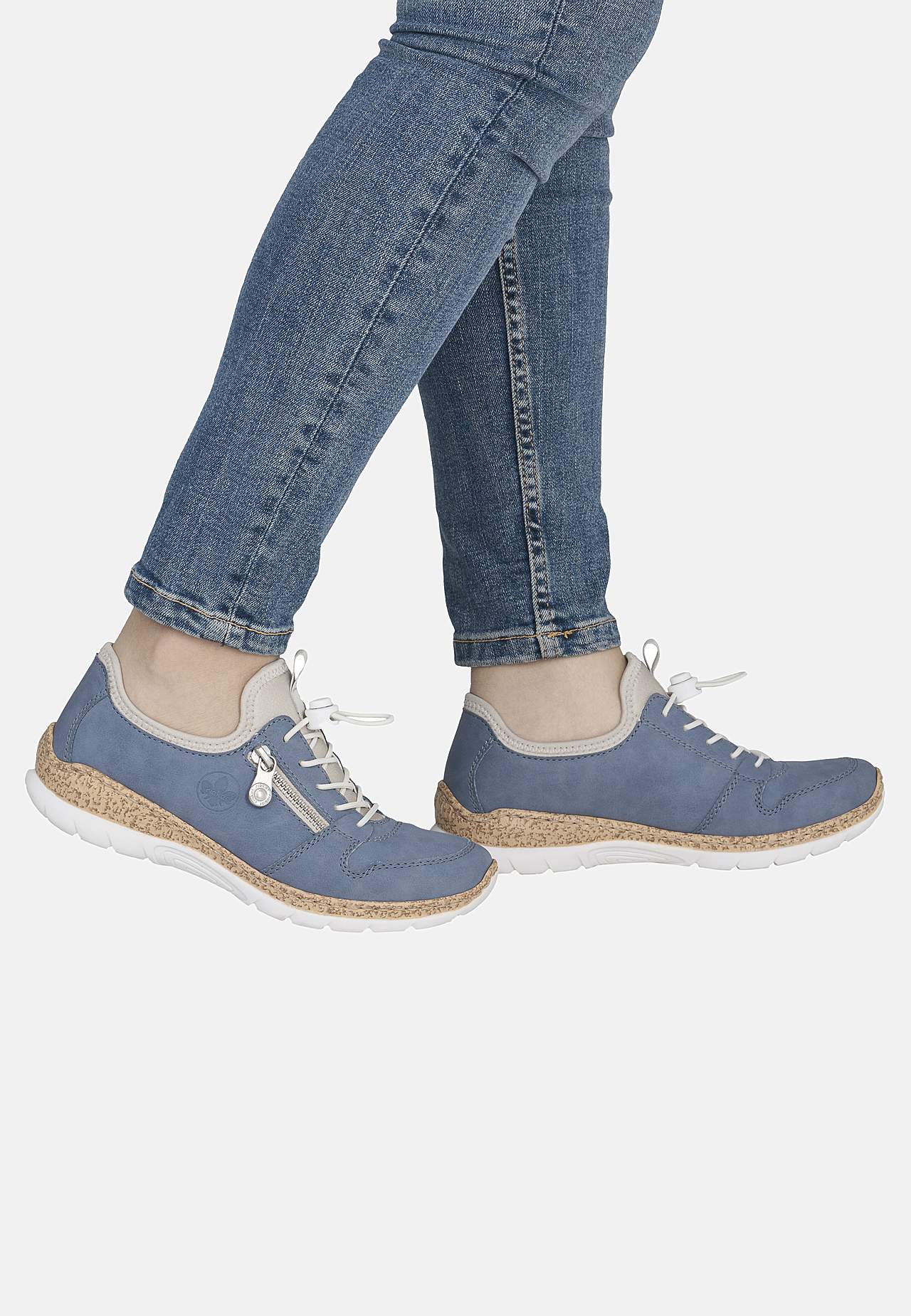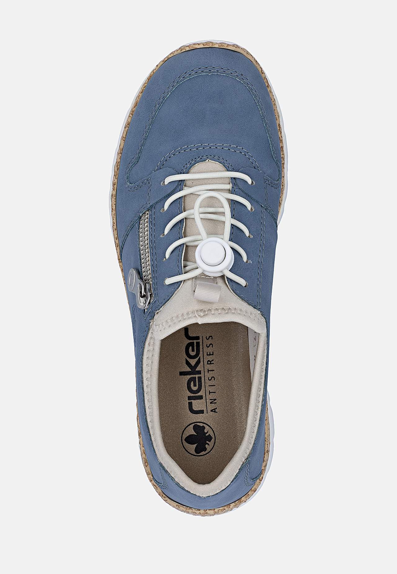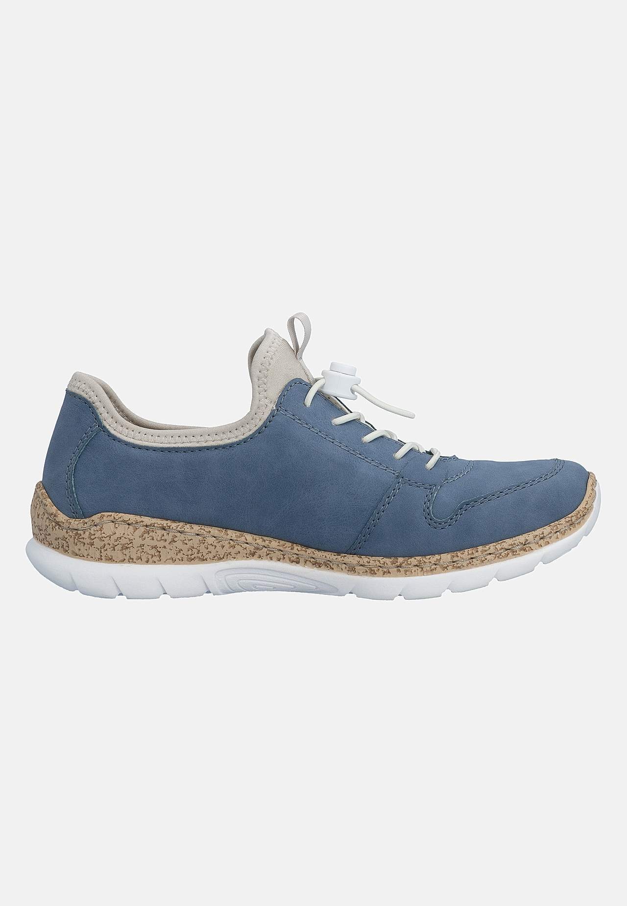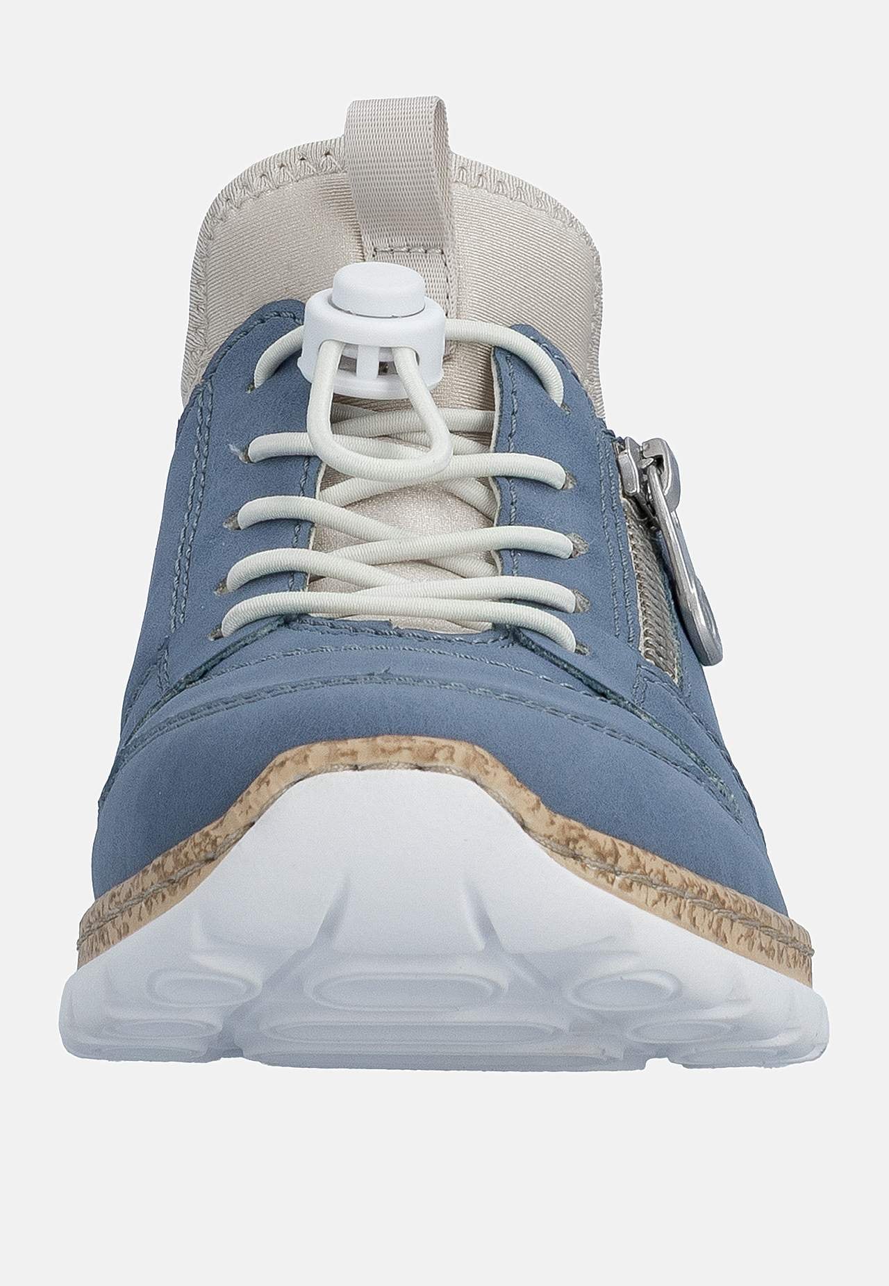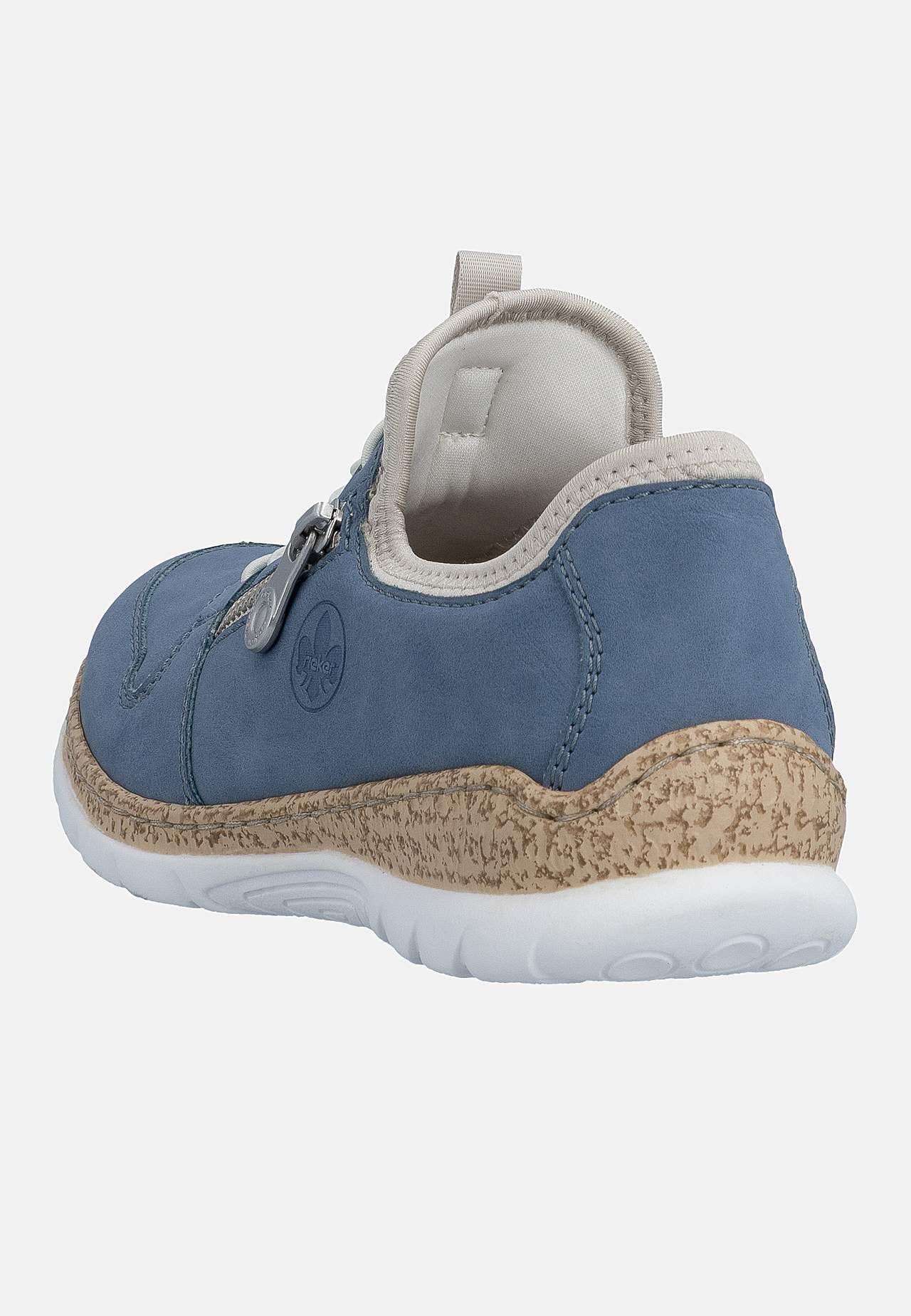 Komfortabel træk-på model. Elastisk snøring med snoretræk og kunstig lynlås på fodens yderside. Foret for. Fast, foret pløs. Blød indersål. Korkmønstret ydersål. Rieker Antistress Se nedenfor. Overside i kunststof og tekstil. For i tekstil. Indersål i tekstil. Ydersål i kunststof. Antistress