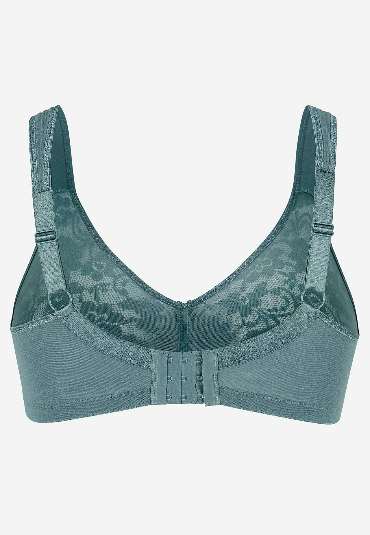 Bøjleløs bh med formsyede, uforede skåle. Overskål i elastisk blonde. Justerbare skulderstropper. Dobbeltradet knapning bagpå, treradet knapning på de større størrelser. Sælges også i 1-pakke: 620005.