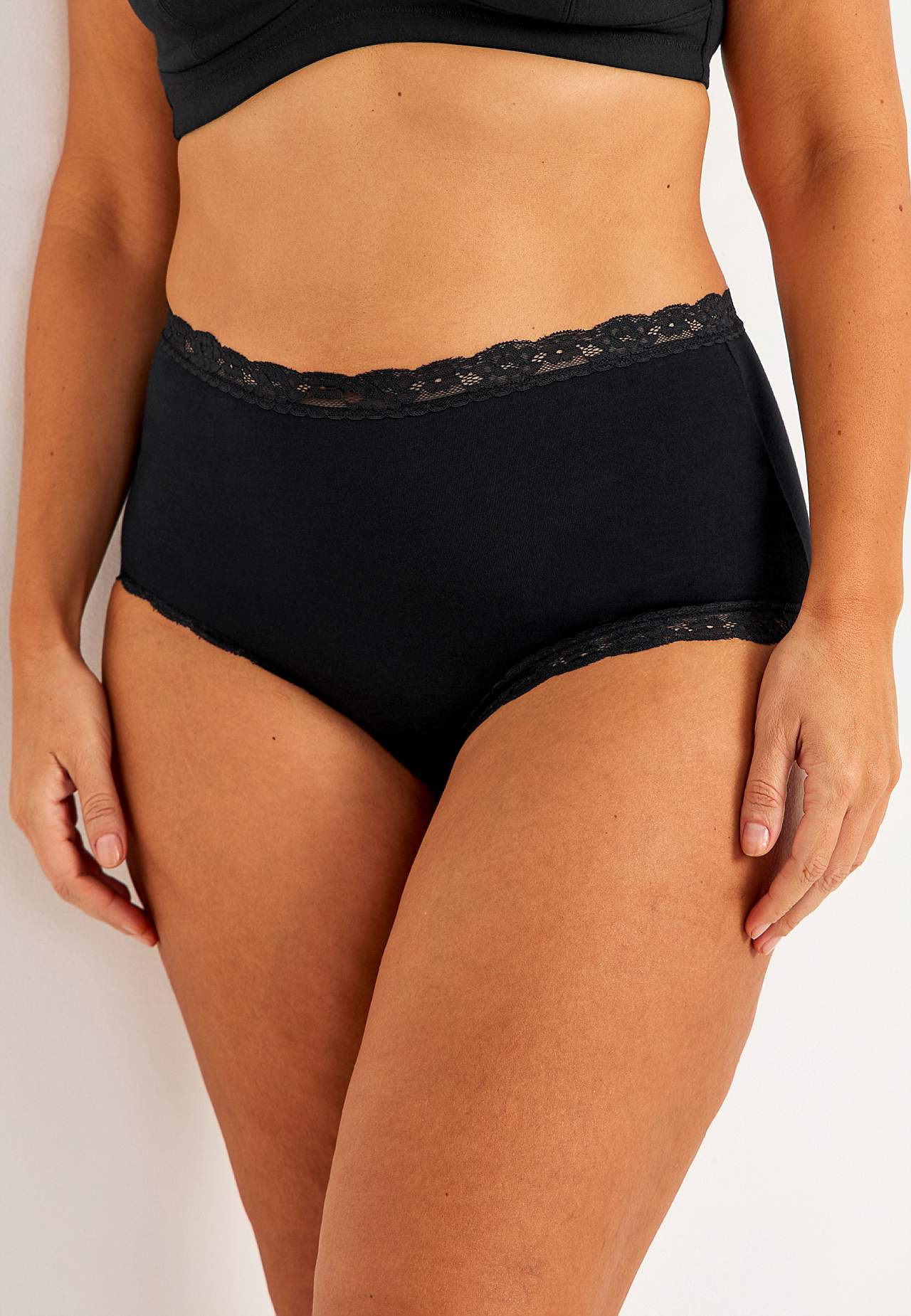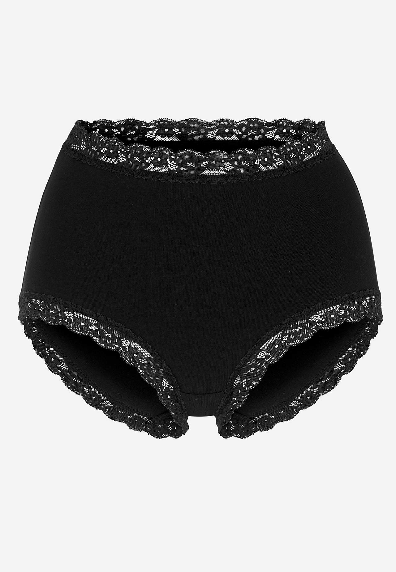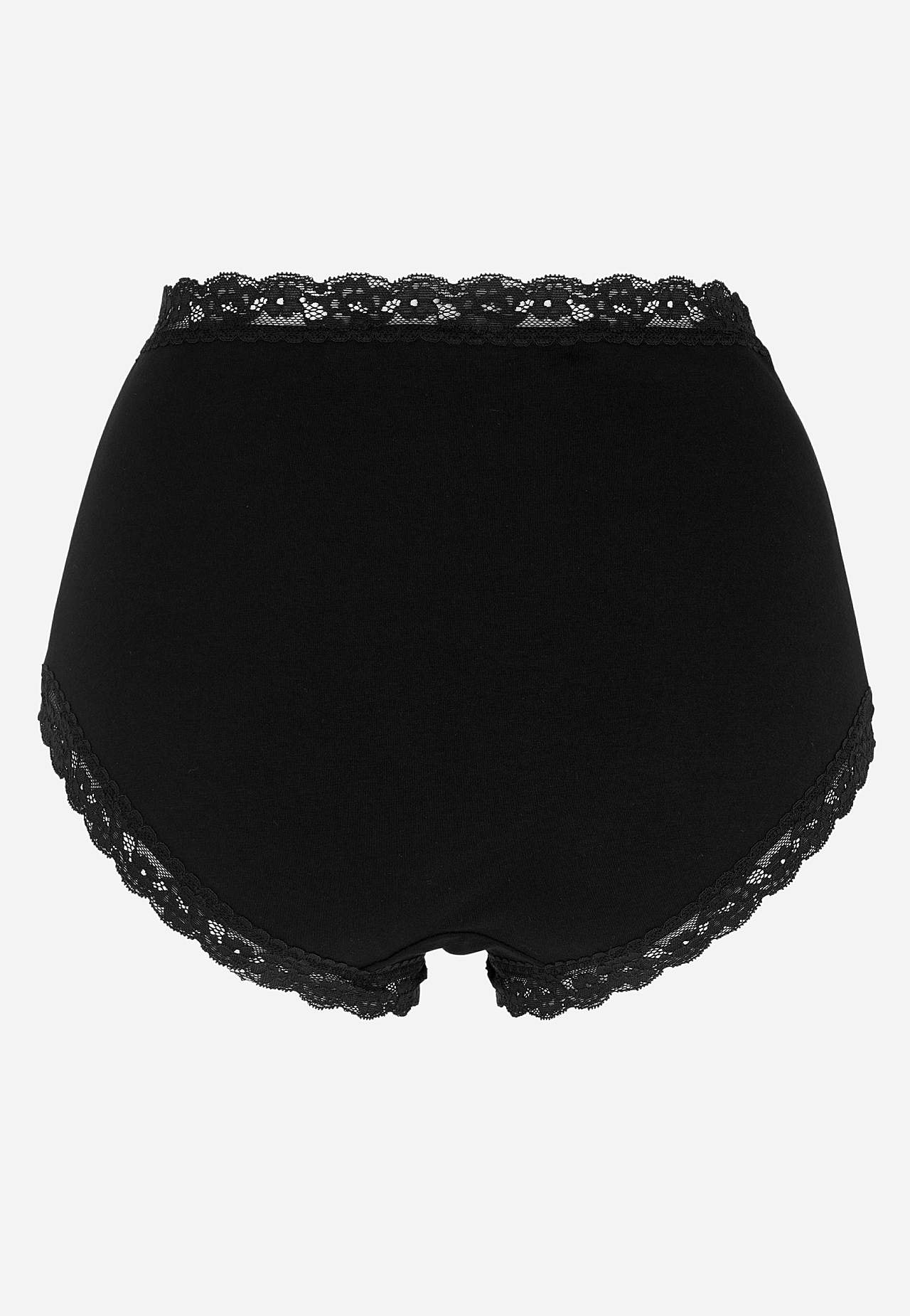 sælges i pakker med tre styk. Blød trusse med høj talje. Bomuldsforet skridt.