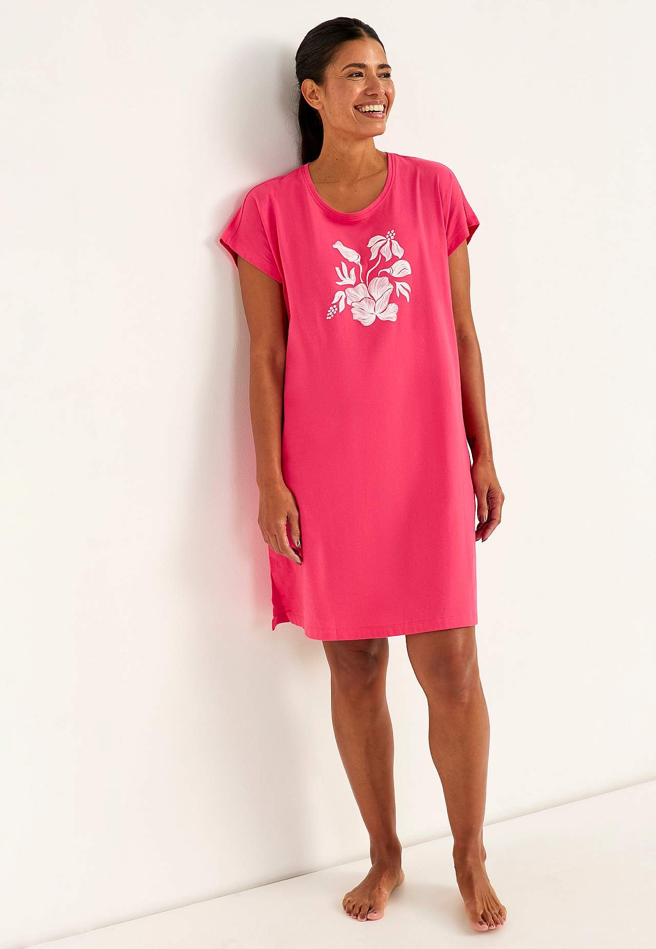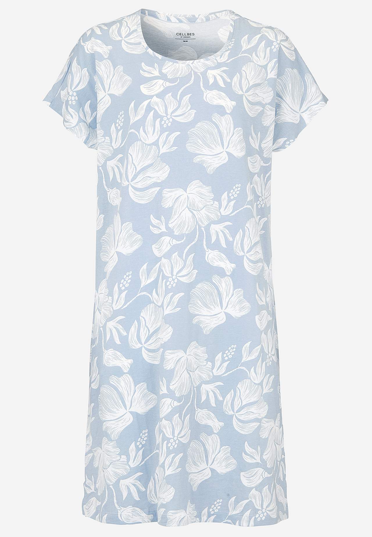 Kort natkjole i blød økologisk bomuld. Uformel, lige pasform. Rund halsudskæring. Korte vingeærmer. Lige søm med slids i siderne. Længden følger størrelsen, ca. 95-105 cm fra skulderen bagpå.